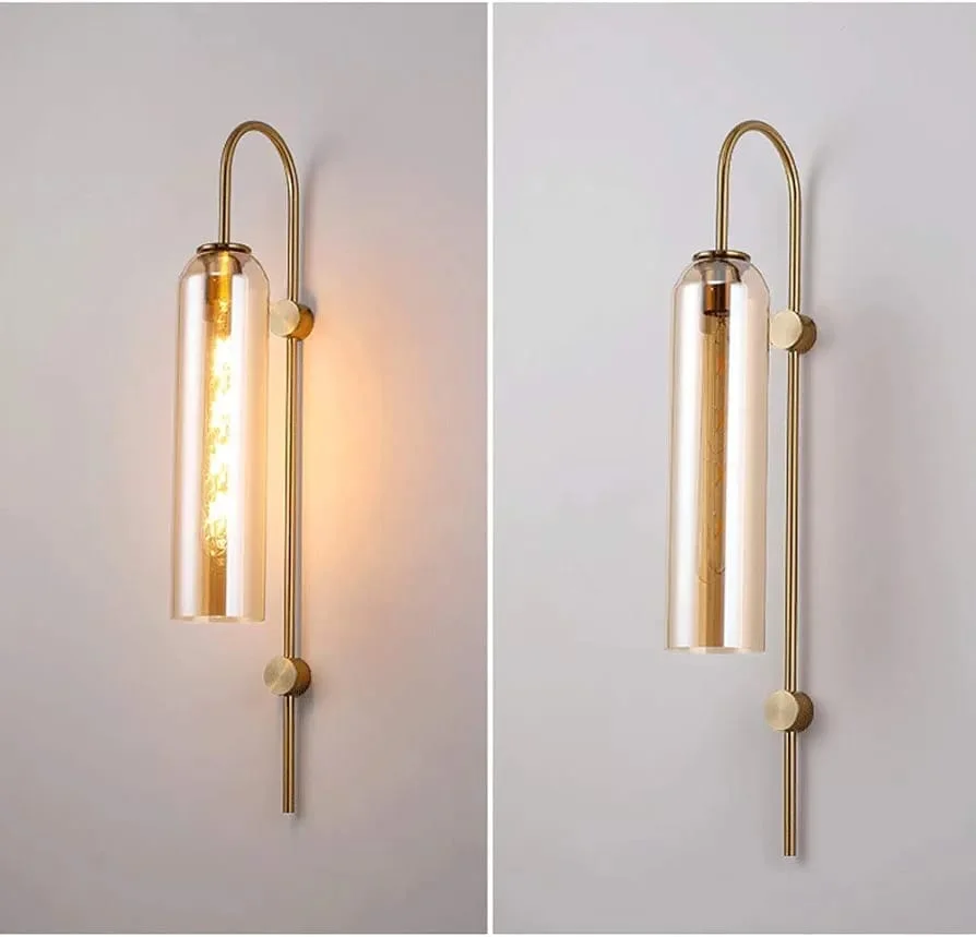 Elevate your living space with the Modern Down Glass Amber Finish LED Wall Lamp. This elegant lighting fixture, perfect for your living room, bedroom, or bedside, features a sleek golden finish and contemporary glass balls design. It provides a warm white glow that creates a cozy ambiance.