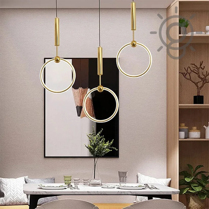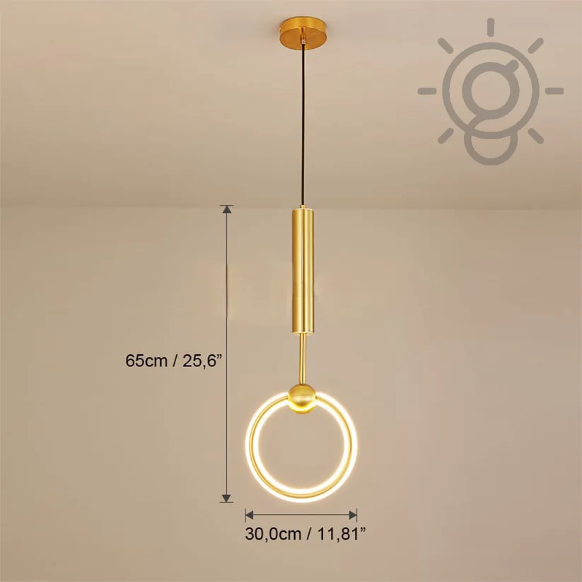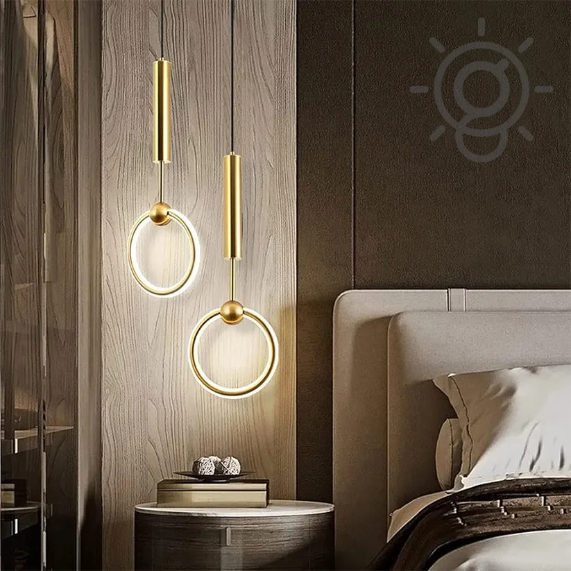 Creative Golden LED Round Ring Bedside 1 Pendant Hanging Light - Tricolour Light