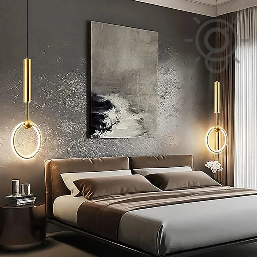 "These round hanging lights introduce a touch of elegance and sophistication to any bedroom, casting a warm, inviting glow that enhances the room's ambiance."