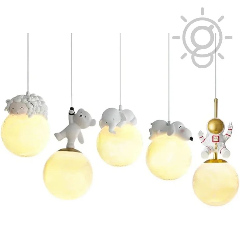 Illuminate your child's room with charm and style with our Cute Animal Round Glass Bedside Pendant Hanging Light Ceiling Lamp. This adorable lighting fixture features a warm white glow, creating a cozy and inviting atmosphere perfect for bedtime stories and peaceful nights. Crafted with a delightful different animal design, it adds a playful touch to any kids' room decor. Please note, the bulb is not included. Ideal for enhancing your child's bedroom with both functionality and fun, this pendant light combines whimsical aesthetics with practical lighting solutions.