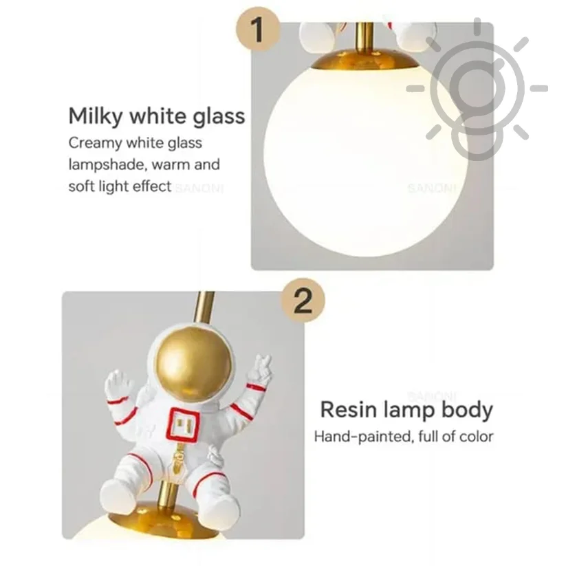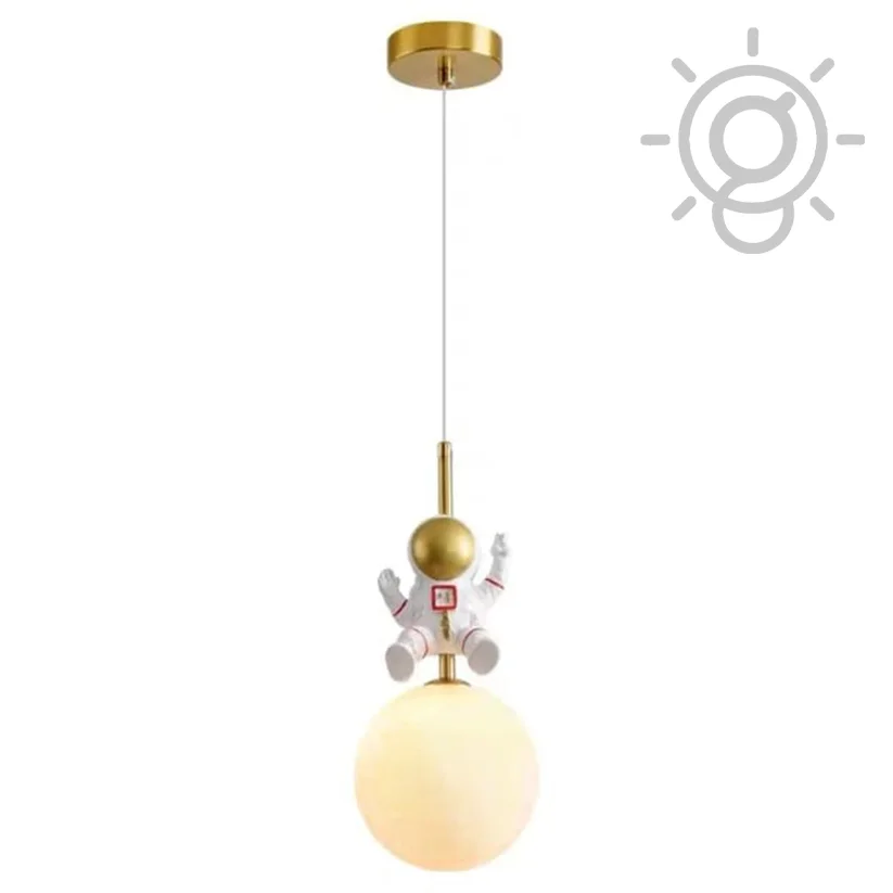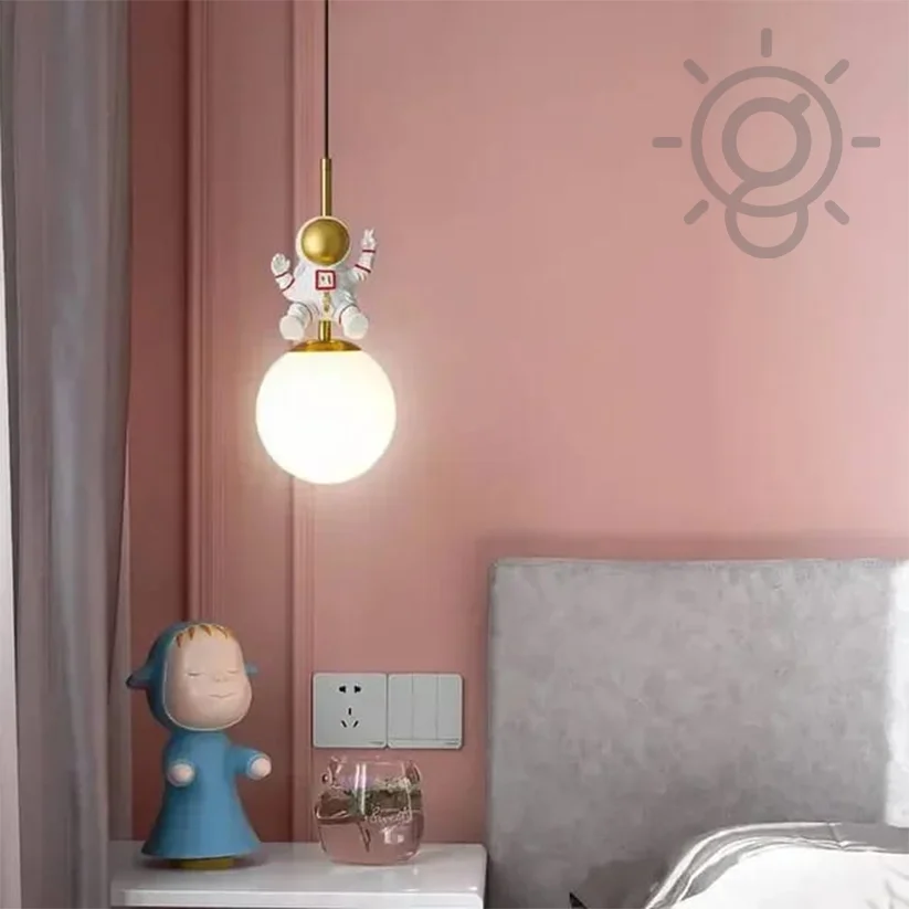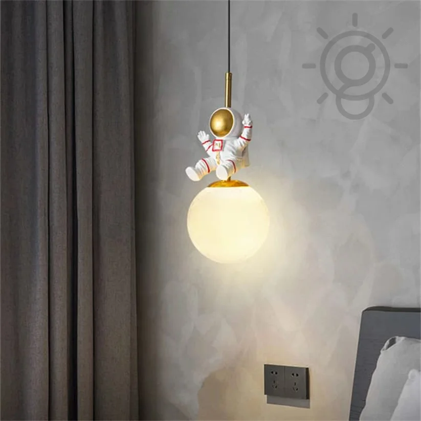 Cute Astronaut Glass Sphere Bedside Pendant Hanging Light for Kids' Room - Warm White
