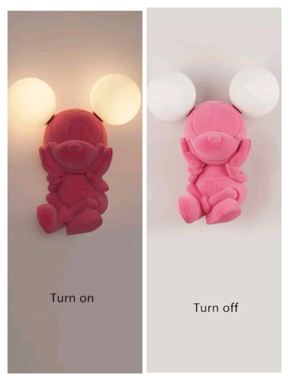 Illuminate your child's room with charm and style with our Cute Pink Micky Mouse Bedside Wall Lamp. This adorable lighting fixture features a warm white glow, creating a cozy and inviting atmosphere perfect for bedtime stories and peaceful nights. Crafted with a delightful different animal design, it adds a playful touch to any kids' room decor. Ideal for enhancing your child's bedroom with both functionality and fun, this wall light combines whimsical aesthetics with practical lighting solutions.