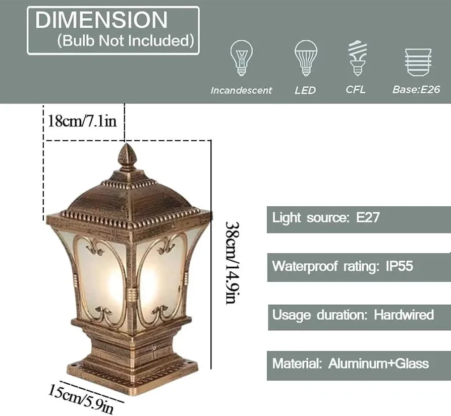 - Bronze Square Design: Features a sophisticated bronze finish with a square lantern design, adding a touch of timeless elegance to your outdoor space.