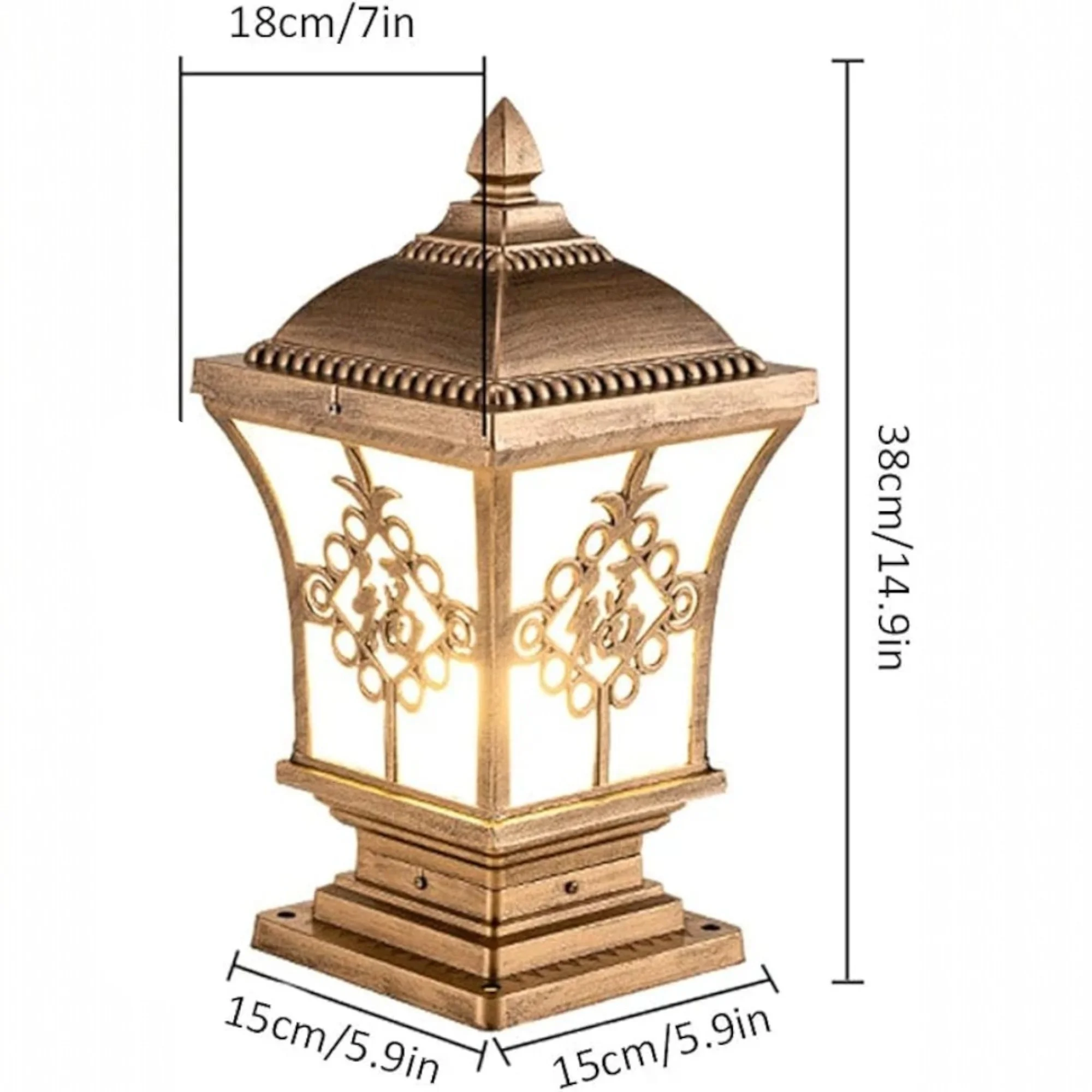The Glowave Decorative Outdoor Bronze Square Post Light is a beautifully designed pillar lamp that adds elegance and functionality to your outdoor spaces. Crafted with a durable bronze finish, this lantern-style post light offers a classic, vintage look while enhancing the ambiance of your patio, fence deck, doorway, or porch. With a waterproof design, it is built to withstand the elements, ensuring long-lasting performance and reliable illumination year-round. The warm white light creates a soft, welcoming glow, ideal for lighting pathways, entrances, or outdoor gatherings. This column light is a perfect blend of style and practicality, offering both decorative appeal and dependable outdoor lighting.
