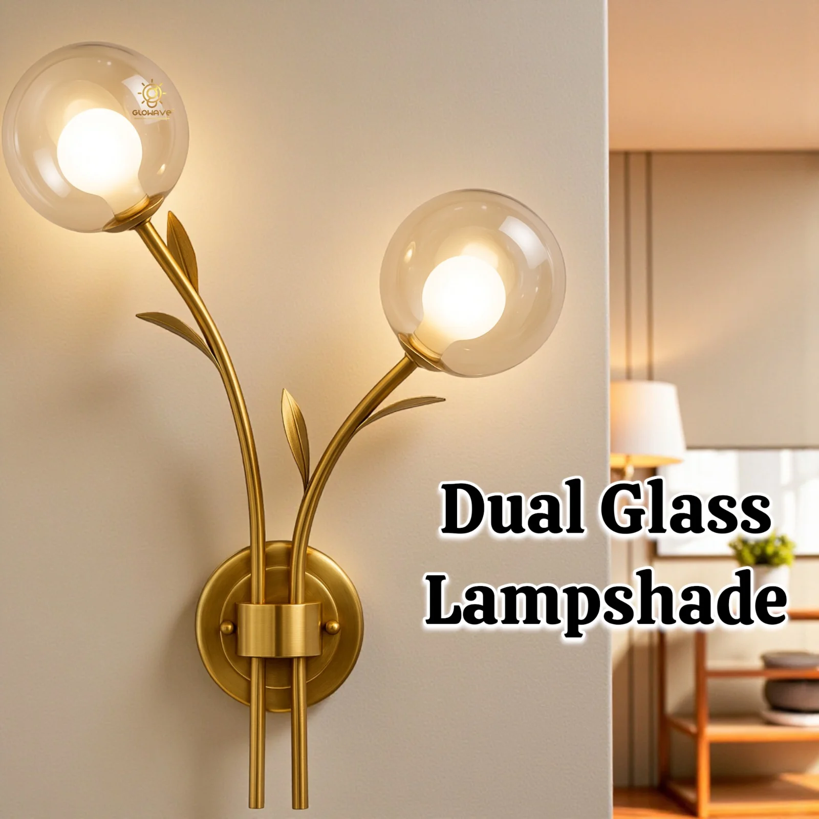 - Stylish Design: Golden finish with a modern double Amber glass circular shape balls.