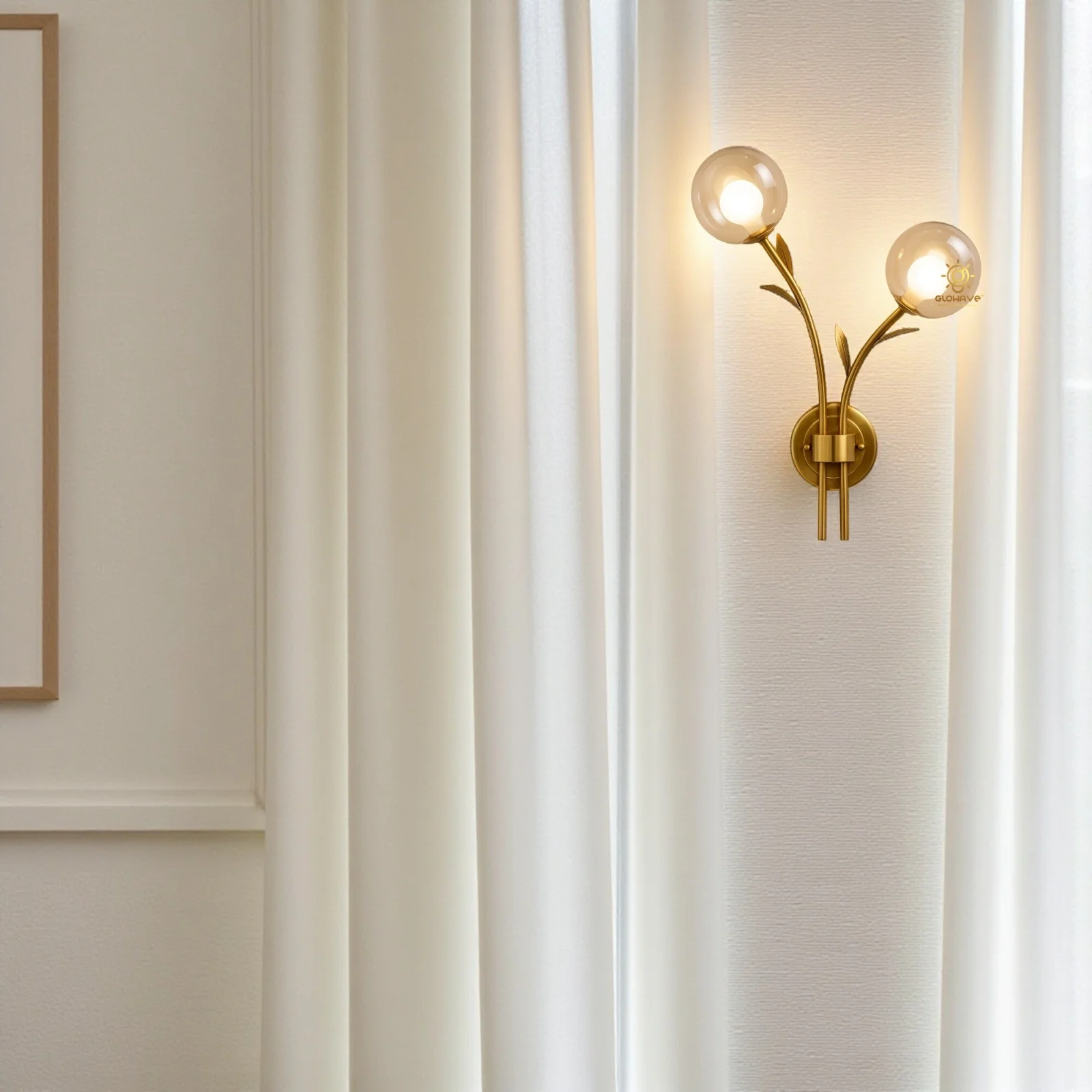 Elevate your living space with the Modern Double Amber Glass Circular Shape Balls Golden Finish LED Wall Lamp. This elegant lighting fixture, perfect for your living room, bedroom, or bedside, features a sleek golden finish and contemporary glass balls design.