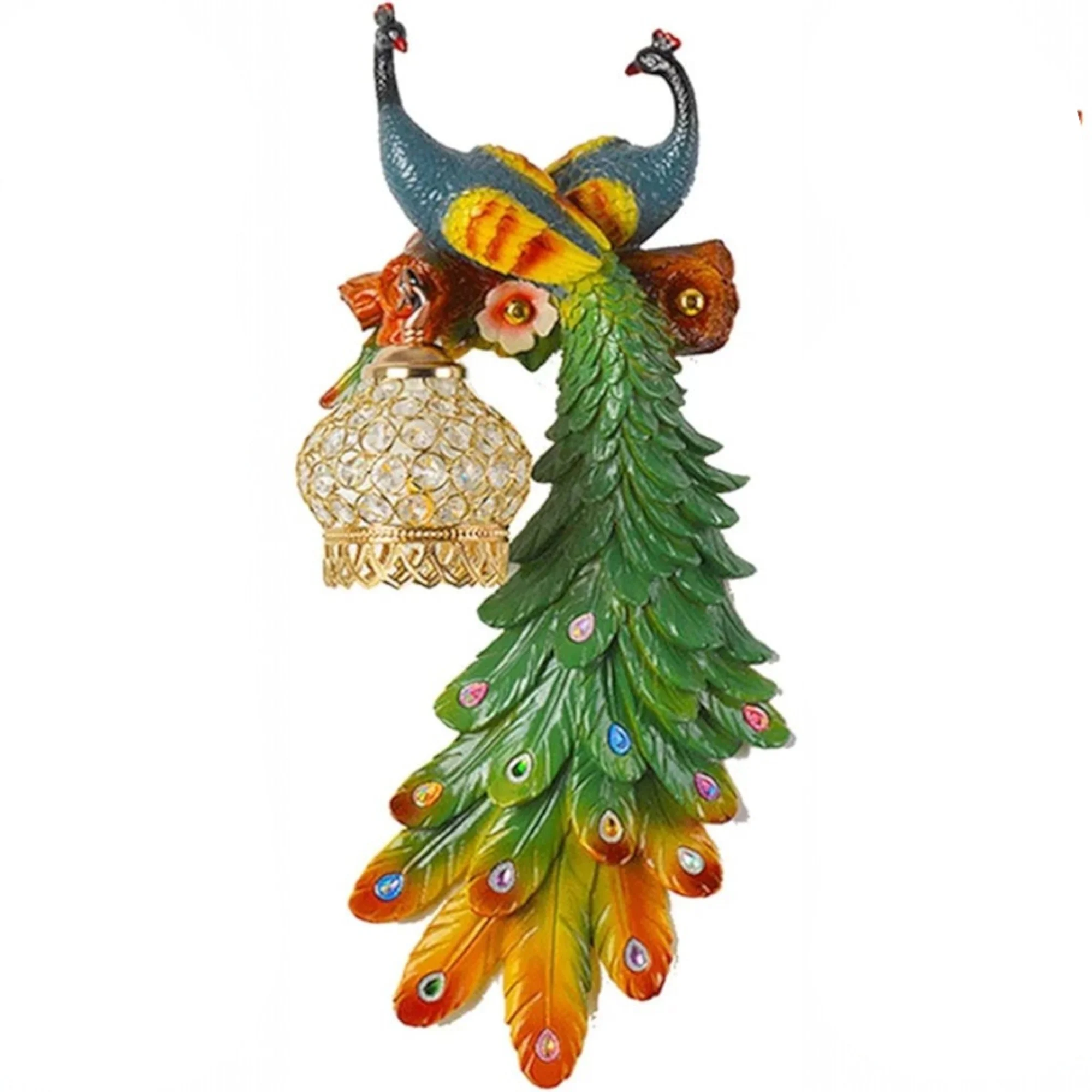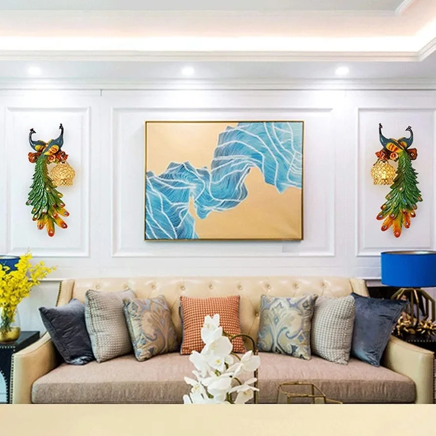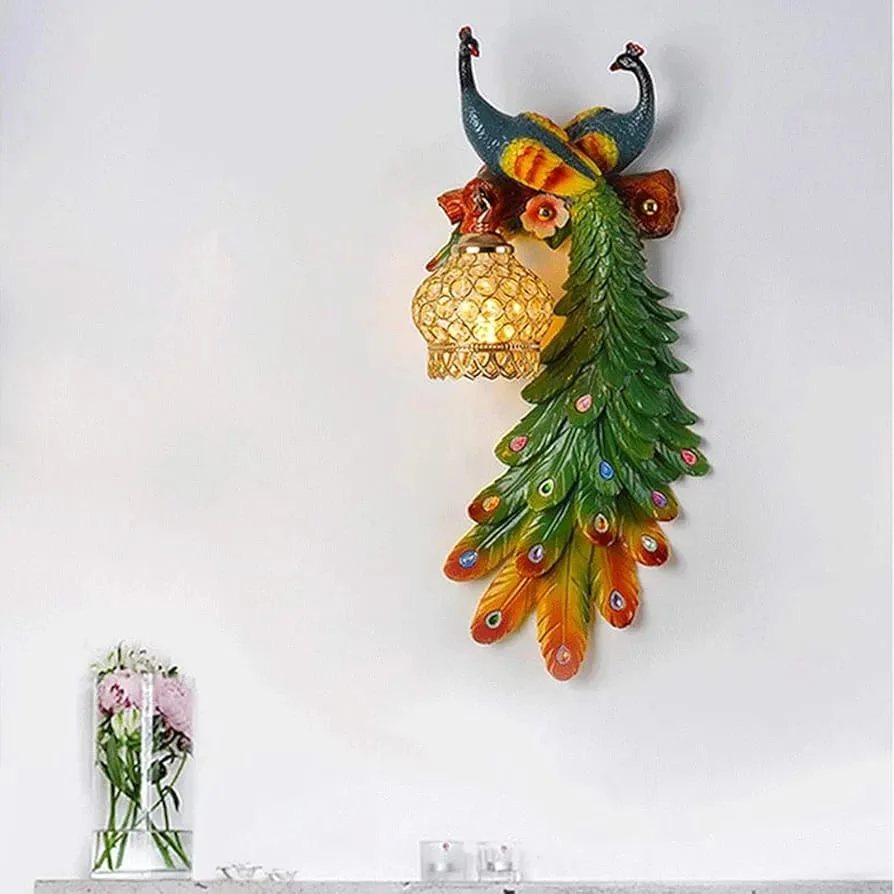 Double Head Peacock Wall Multicolour Wall Art Lamp - Warm White