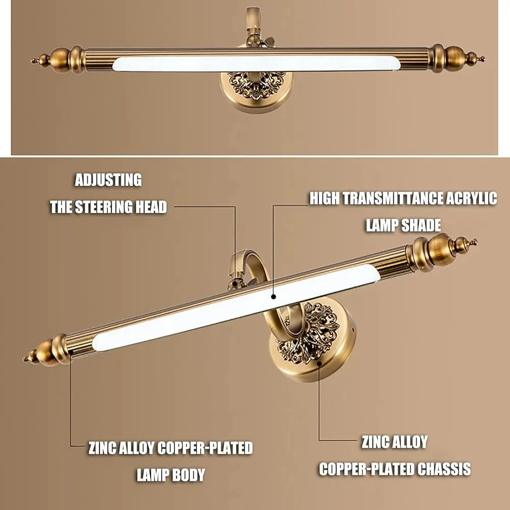 Classic Golden LED Light with Adjustabe Head Mirror Light - Warm White