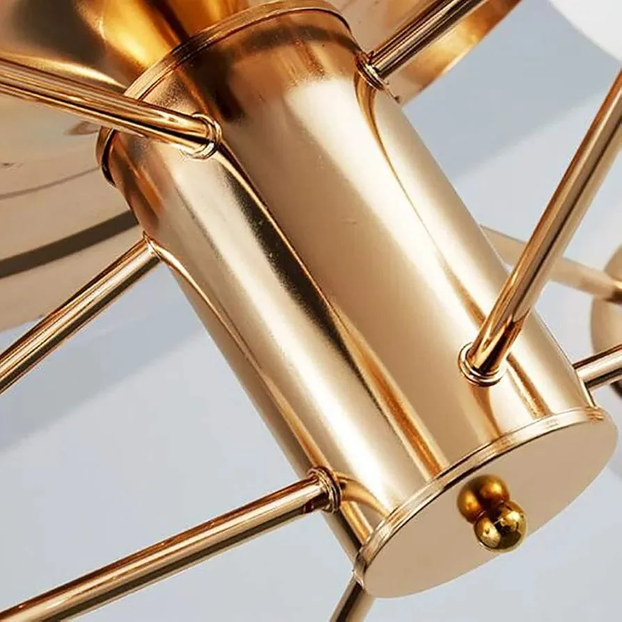 - Metal body with 12 Frosted glass light attached , Glass Bottom and ABS fan blades with copper binding motor chandelier fan