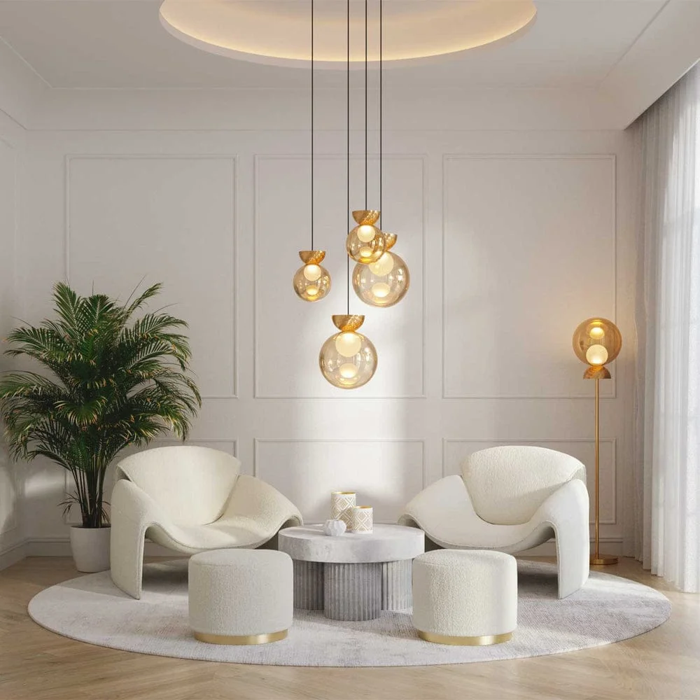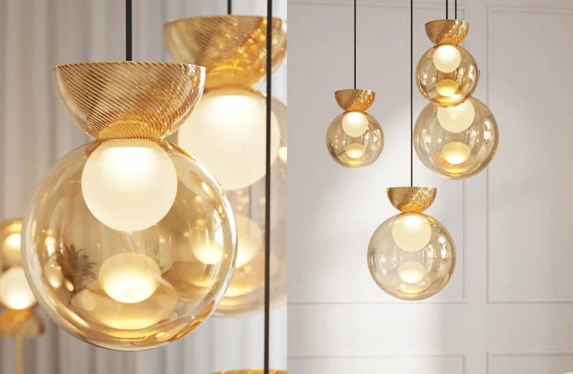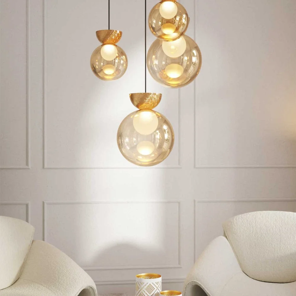 - Elegant Design: Modern Amber glass sphere light with a luxurious gold finish.