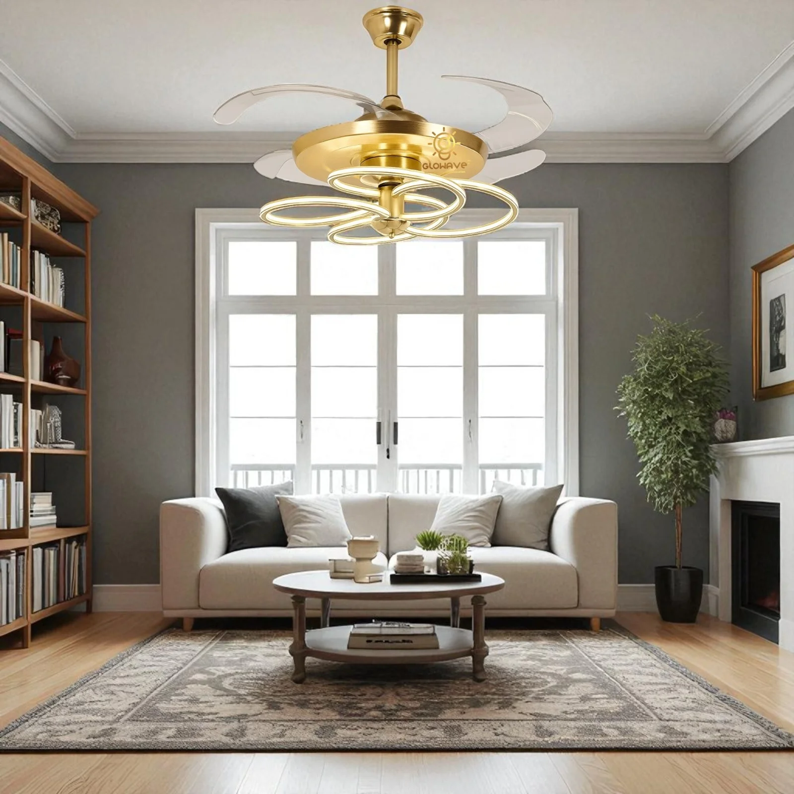 Elevate your living space with the Luxury French Golden Ceiling Fan Chandelier. This stunning retractable fan lighting fixture features a sophisticated design with sparkling accents, adding a touch of luxury to any room. With three adjustable color lights, it seamlessly adapts to your desired ambiance. Ideal for living rooms, bedrooms, dining areas, entrances, showrooms, and cafés, this versatile chandelier combines style and functionality. The retractable blades provide efficient air circulation when extended and a sleek, unobtrusive look when retracted. Enjoy a blend of elegance and practicality with this exquisite ceiling fan chandelier.