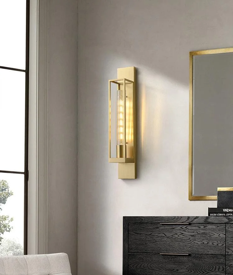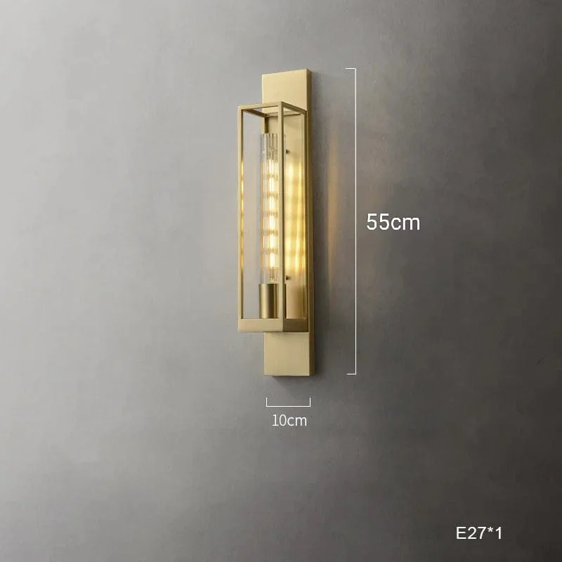 Gilded Wall Lamp Copper Finish Transparent Glass Shade Long Light - Warm White