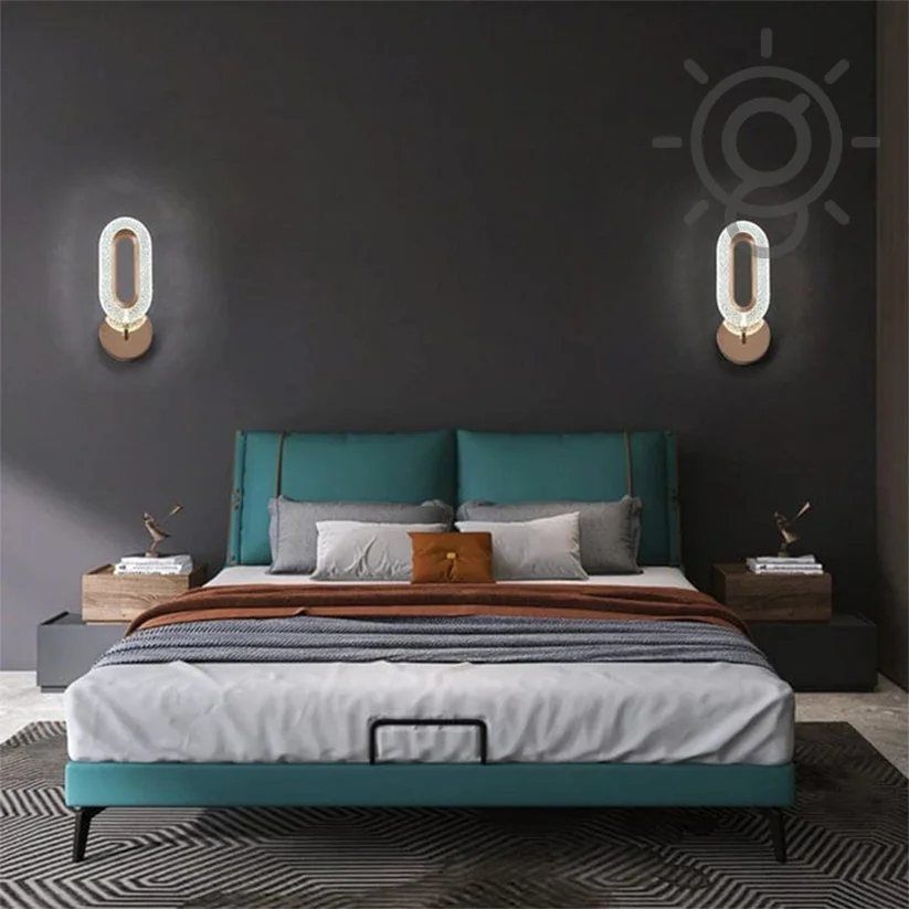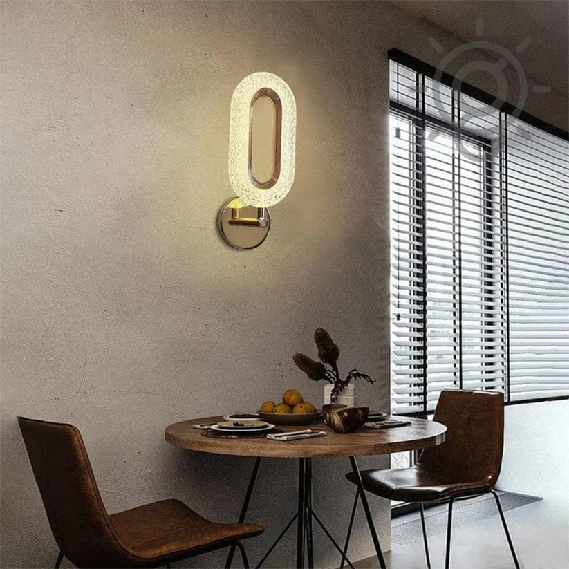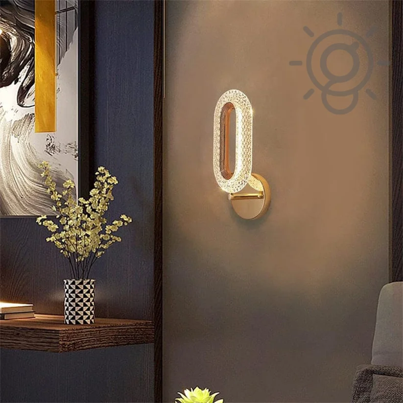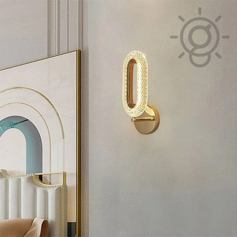 - Illuminate your space with elegance: LED Glass Crystal Oval Golden Metal Wall Light.