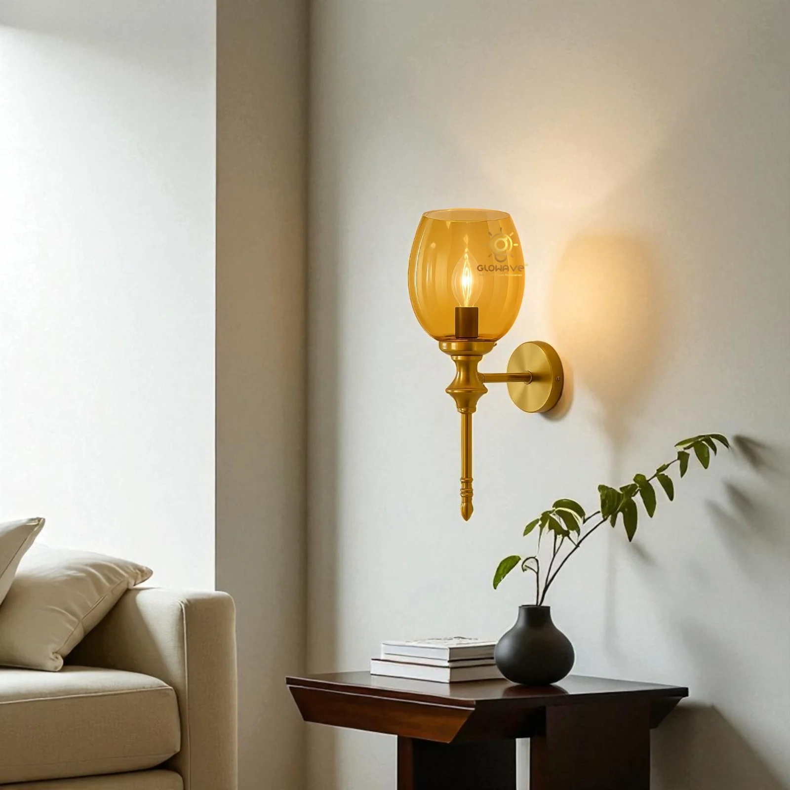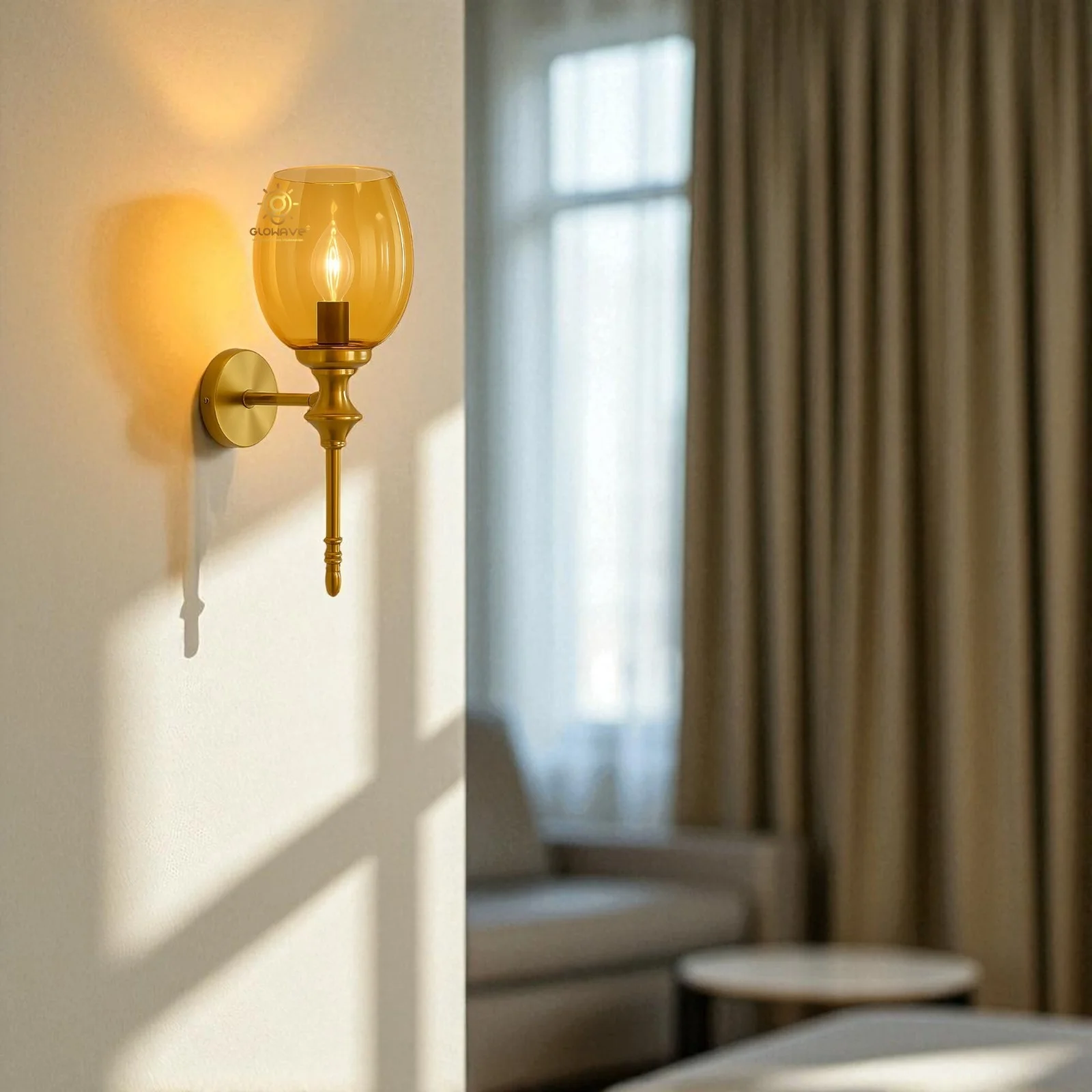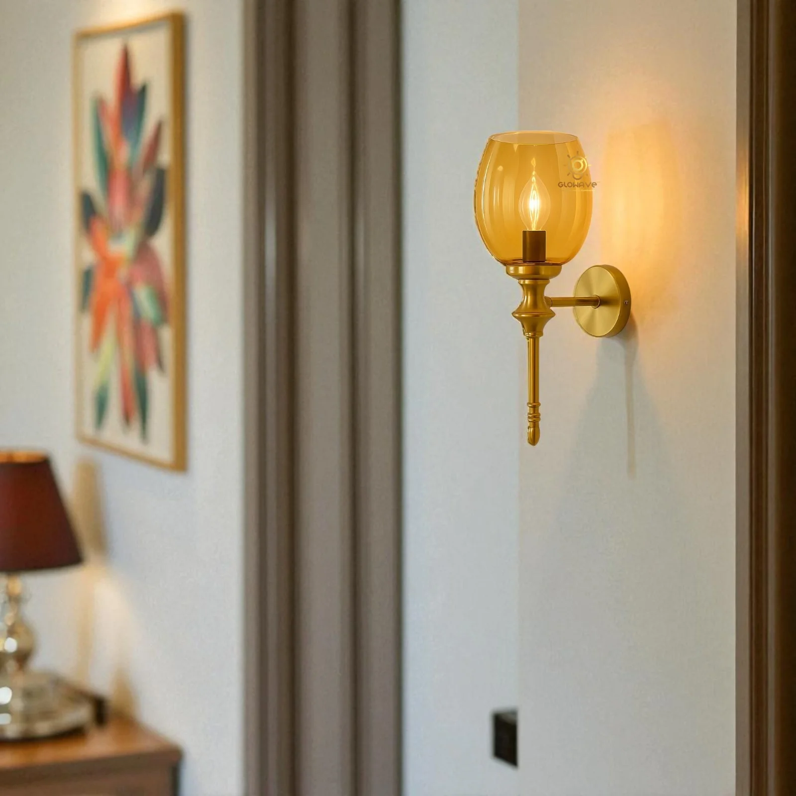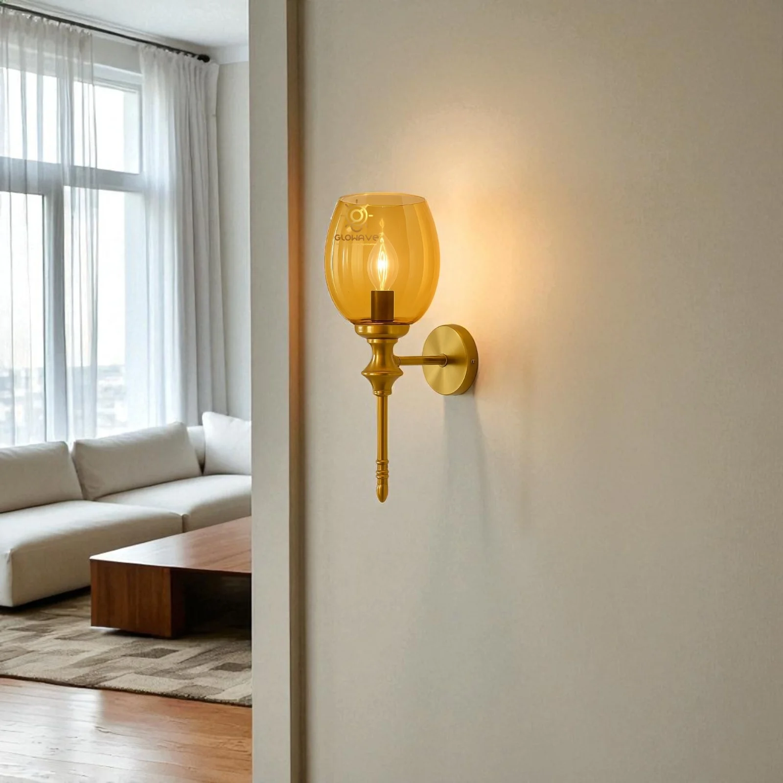 - Stylish Design: Gold Finish Glass Shade Wall Sconce.