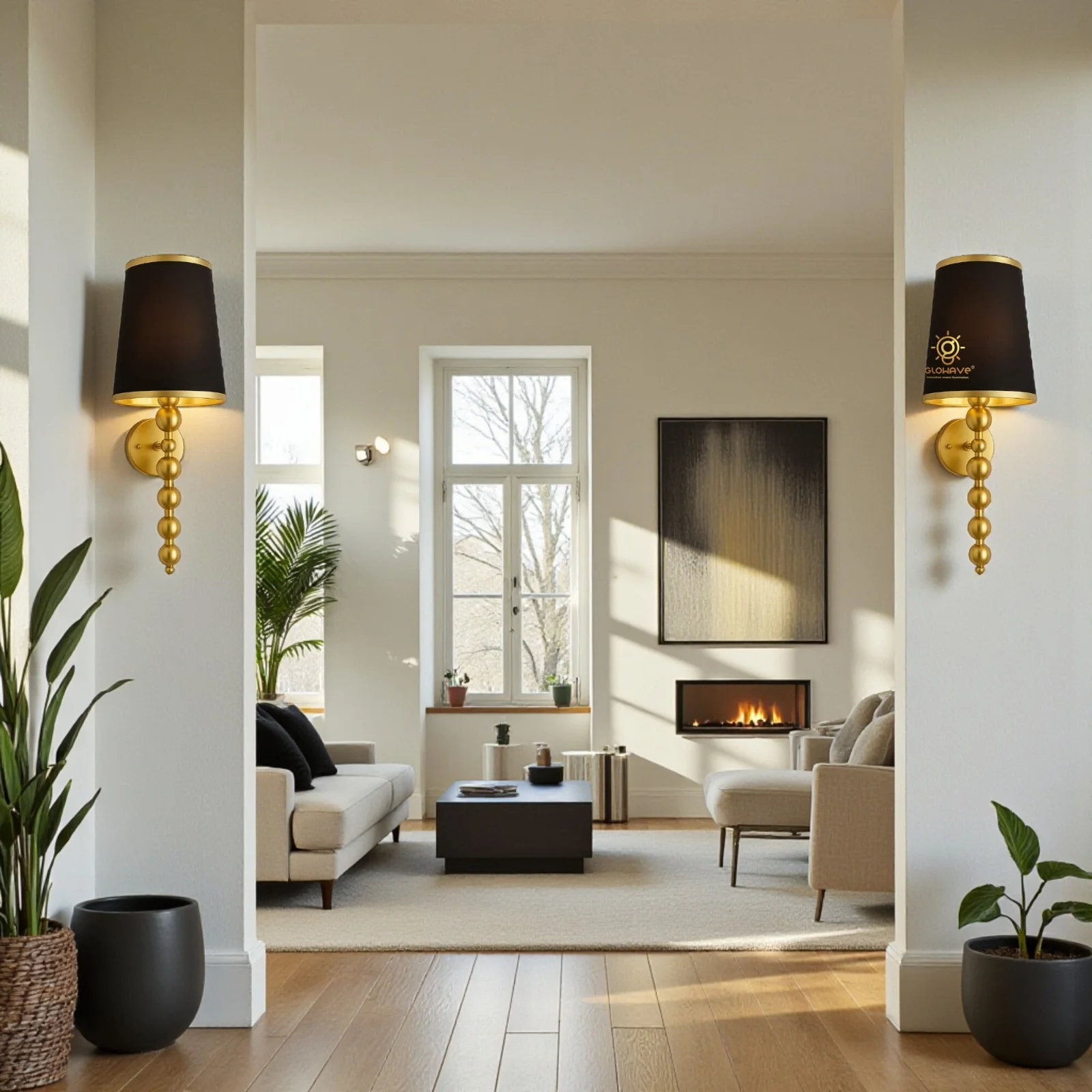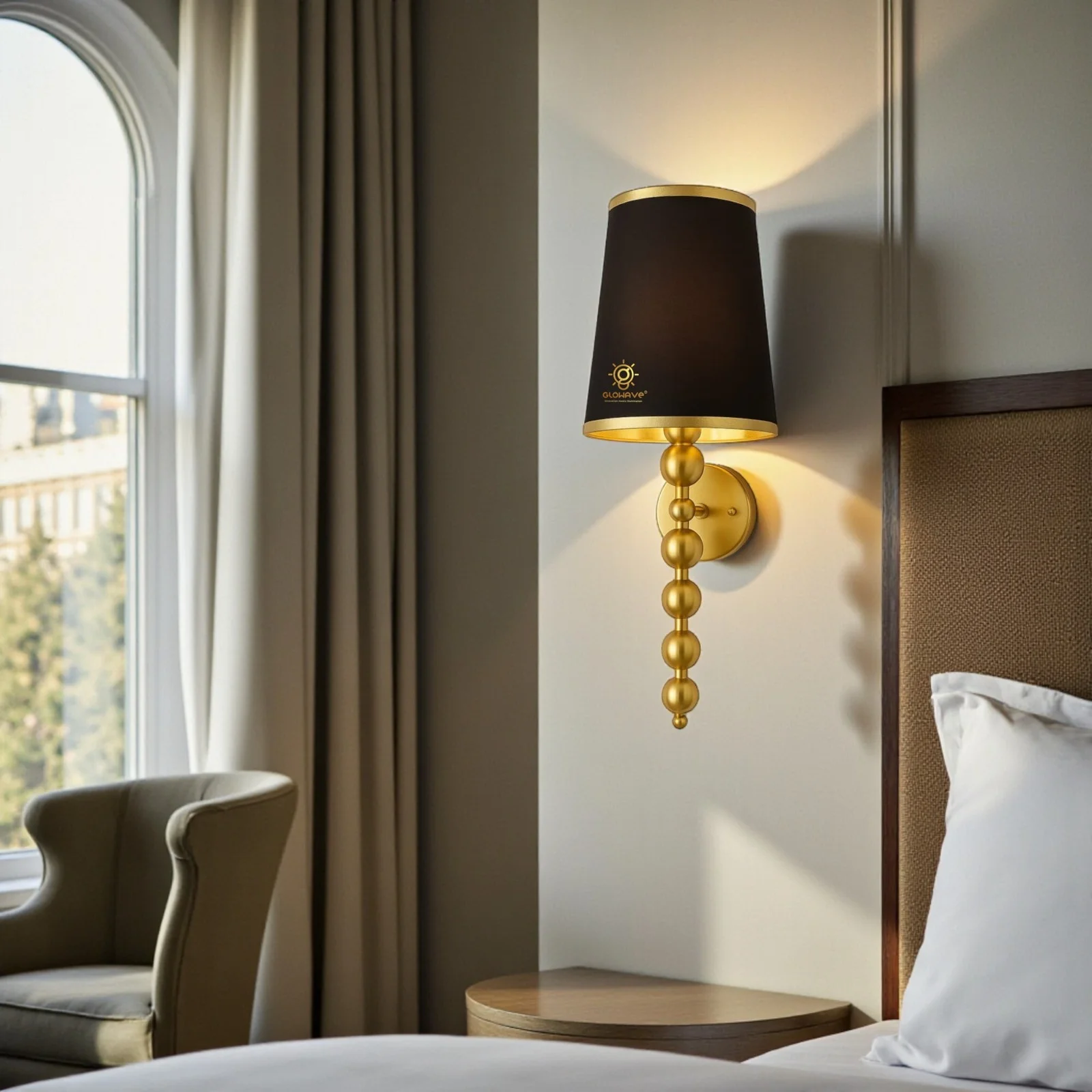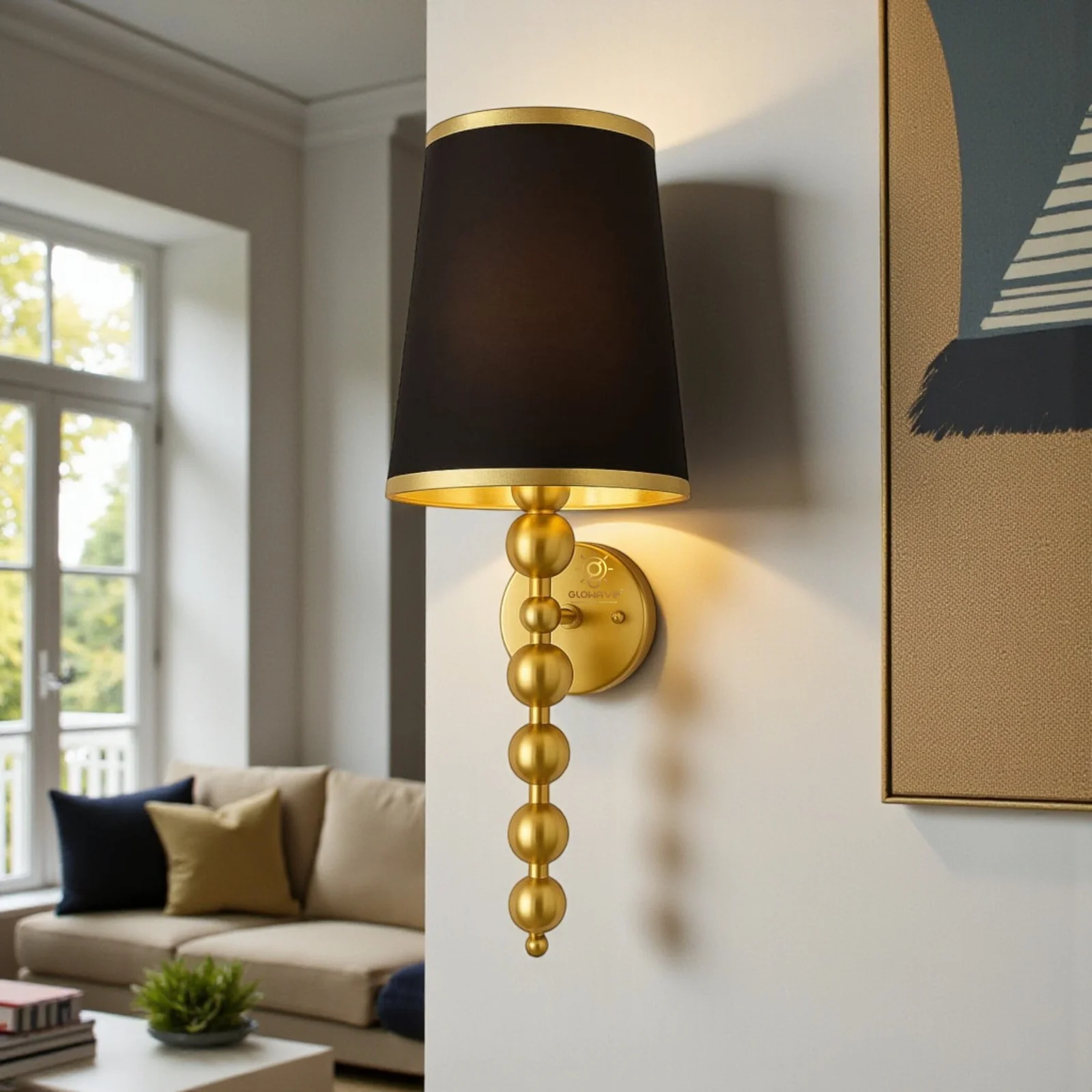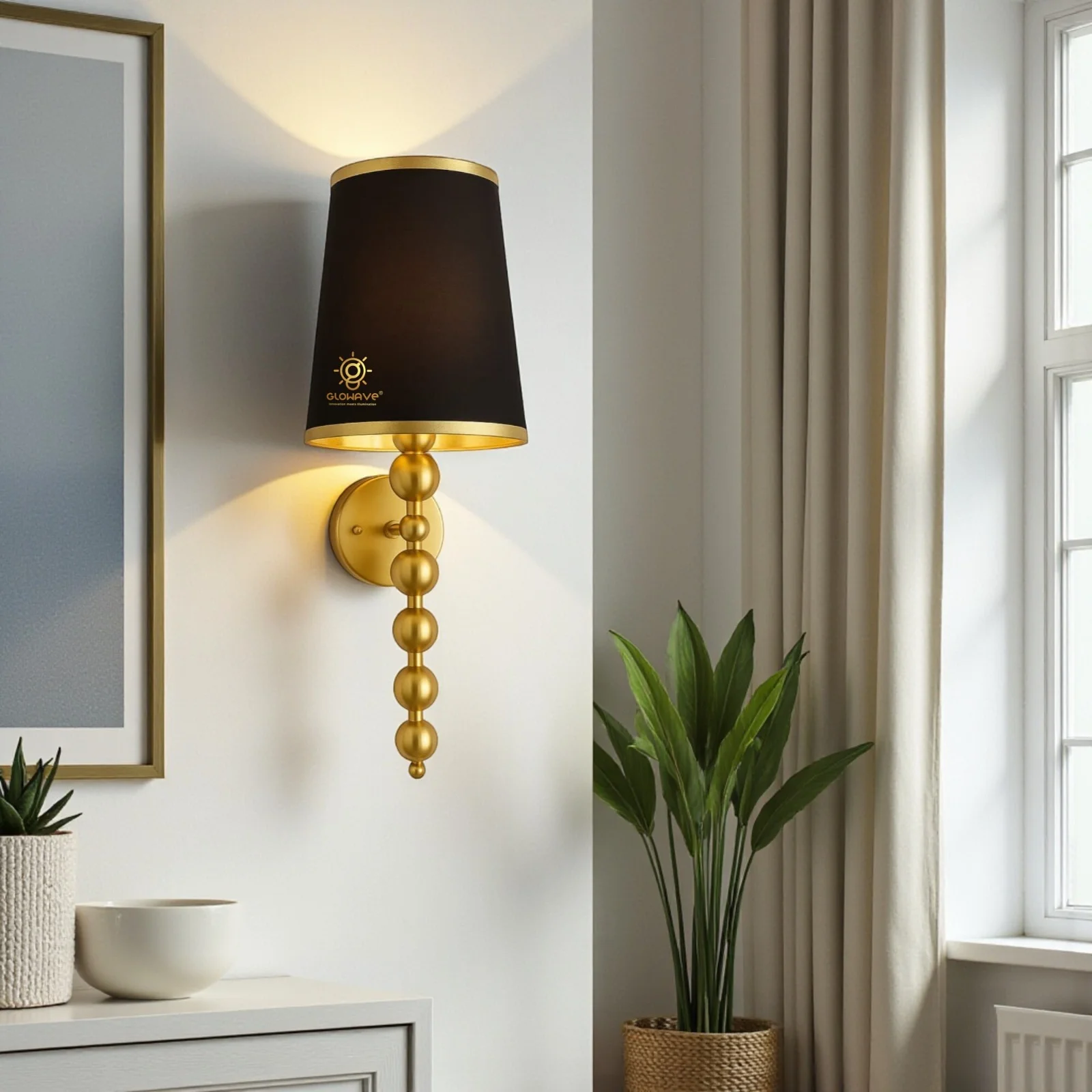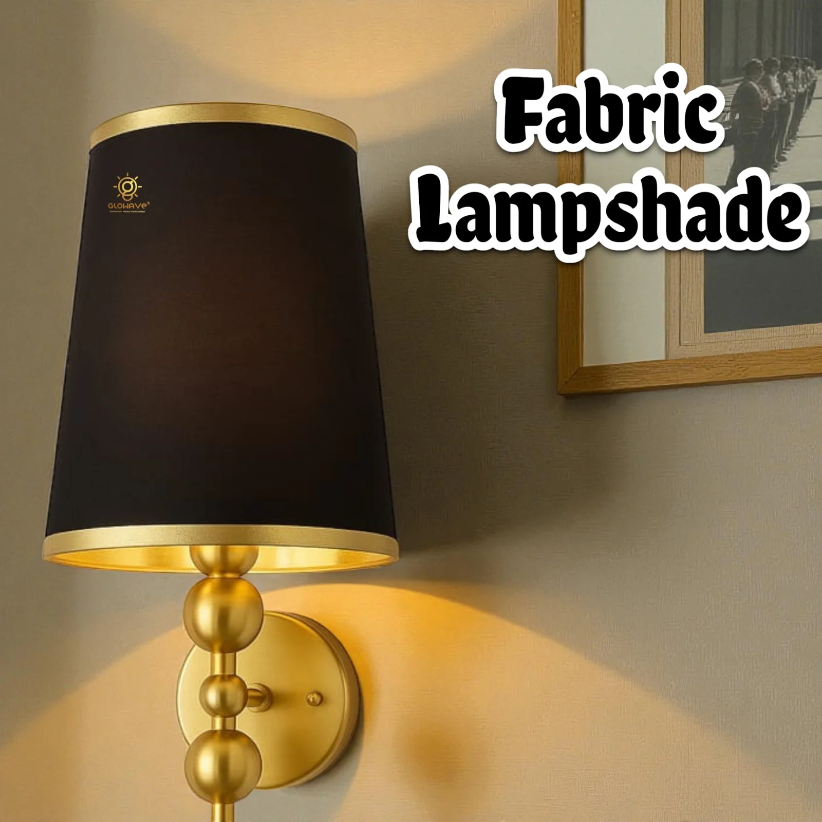 - Stylish Design: Gold Finish Fabric Shade Wall Sconce.