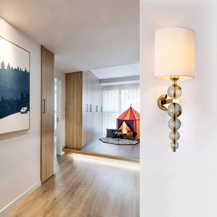 Gold Crystal Glass Wall Light Fabric Shade Wall Lamp - Warm White