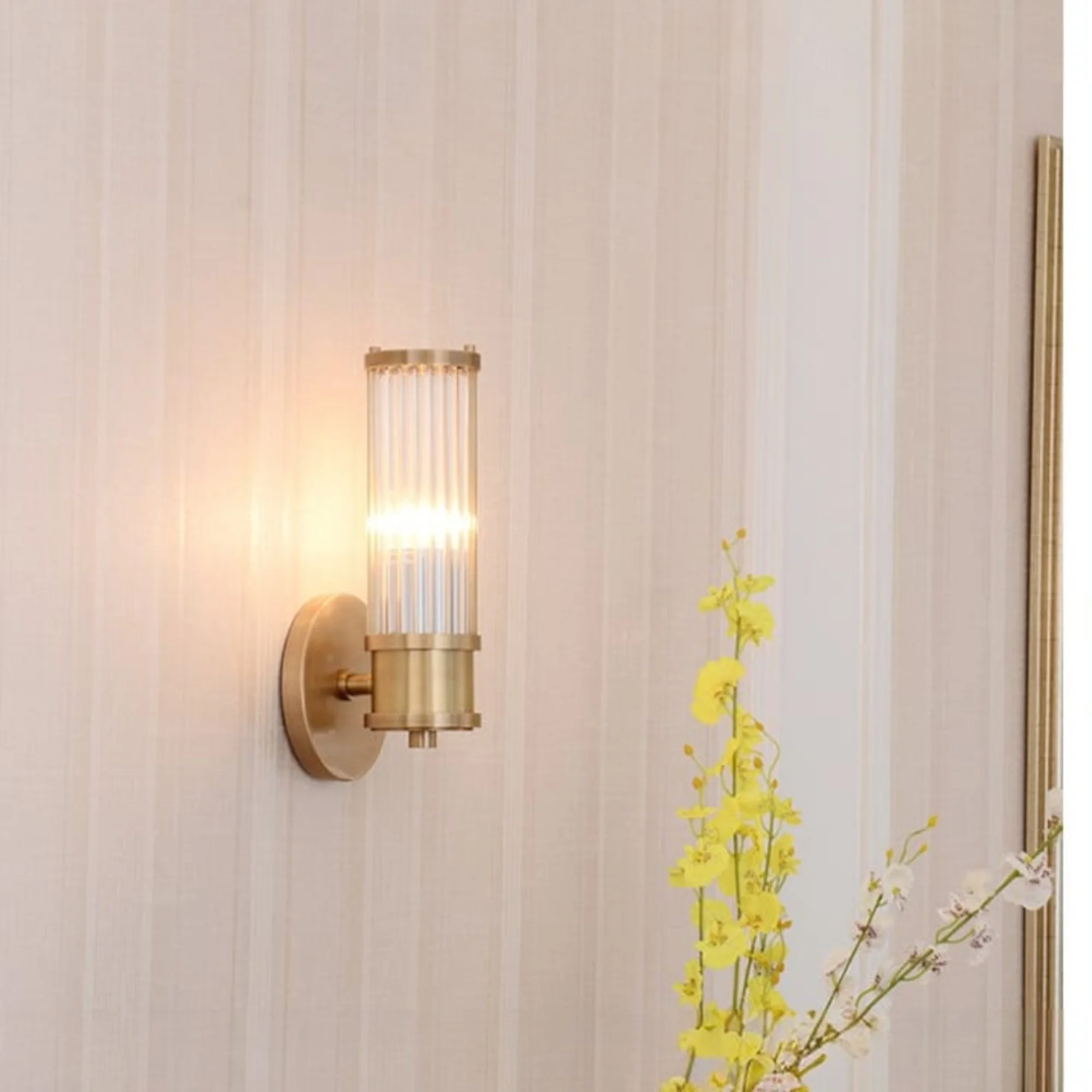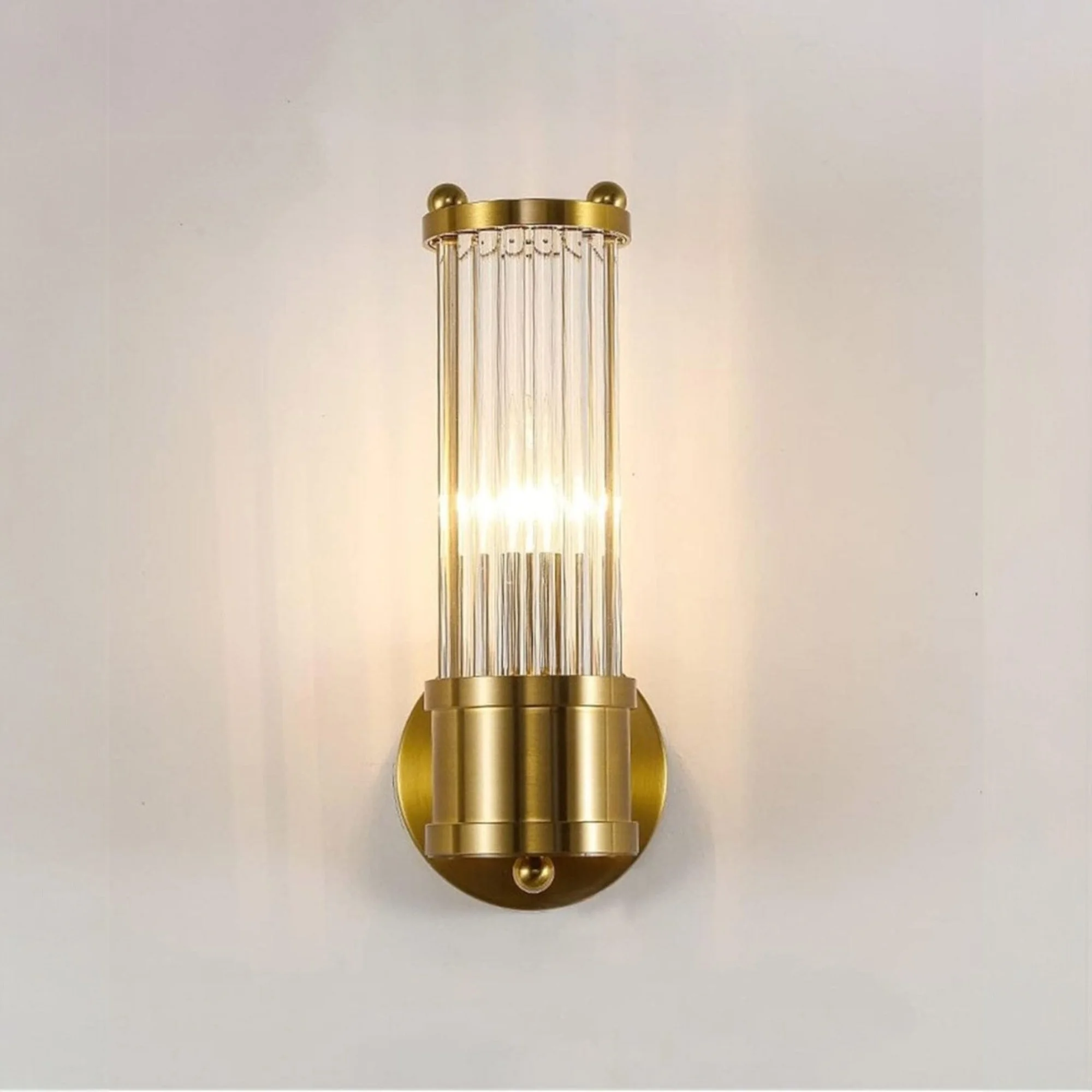 - Stylish Design: Gold Finish Glass Cylindrical Shade Wall Sconce.