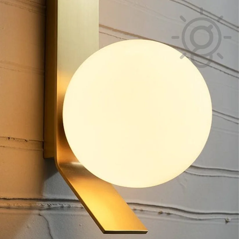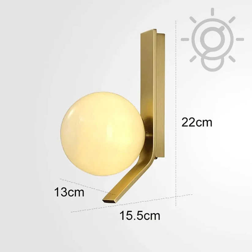 Gold Finish 1 Head Frosted Glass Ball Light Wall Lamp - Warm White