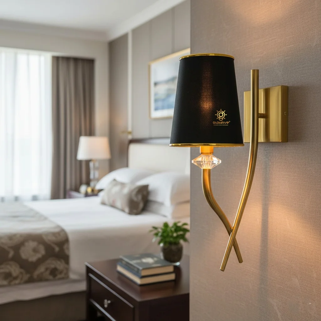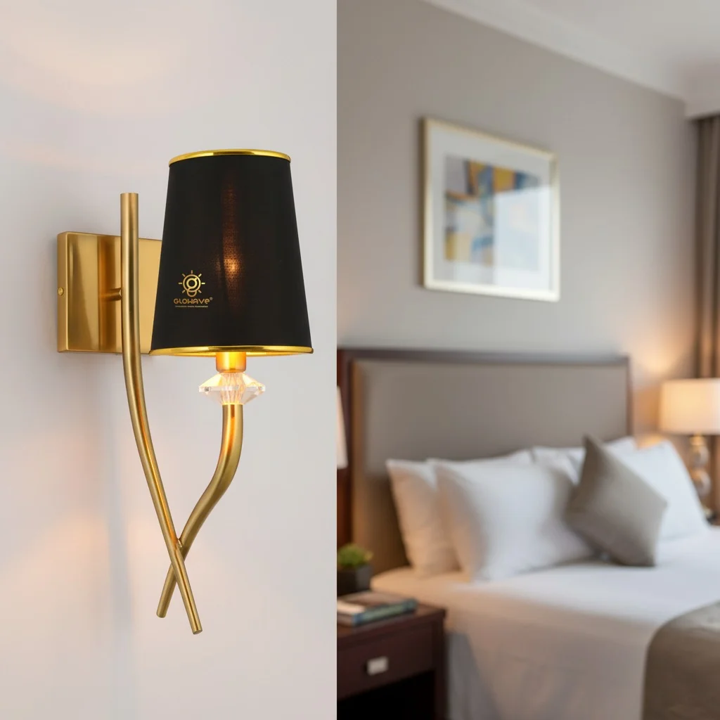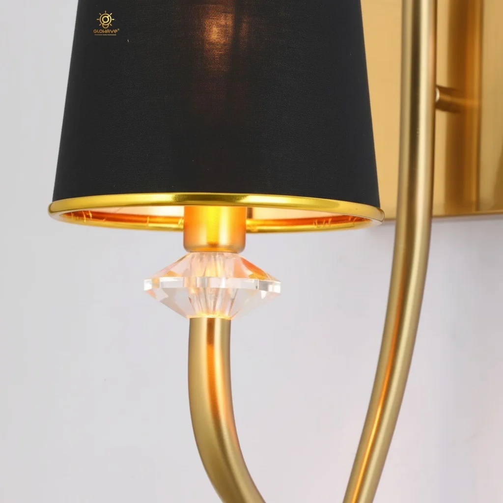 Gold Finish Base Black Fabric Lampshade Wall Lamp - Warm White