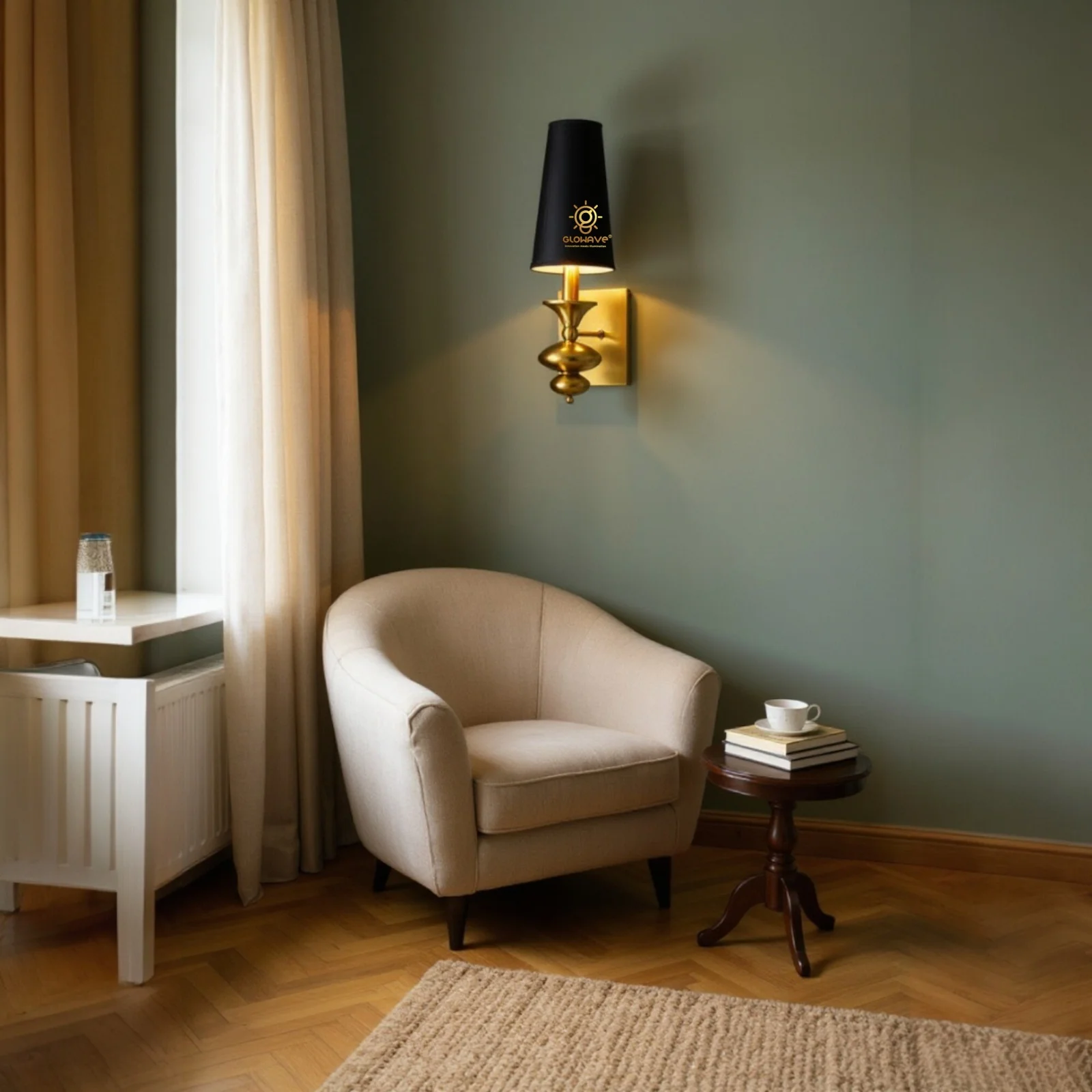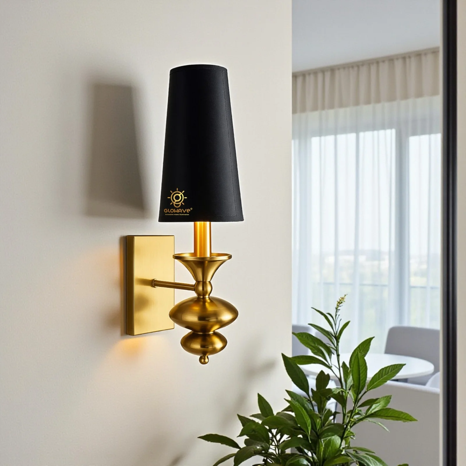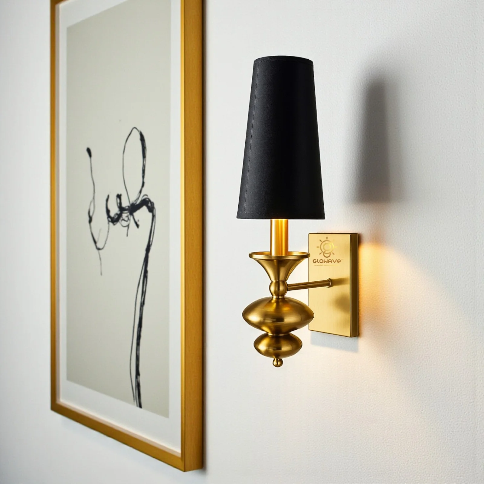 - Stylish Design: Gold Finish Black Fabric Shade Wall Sconce.