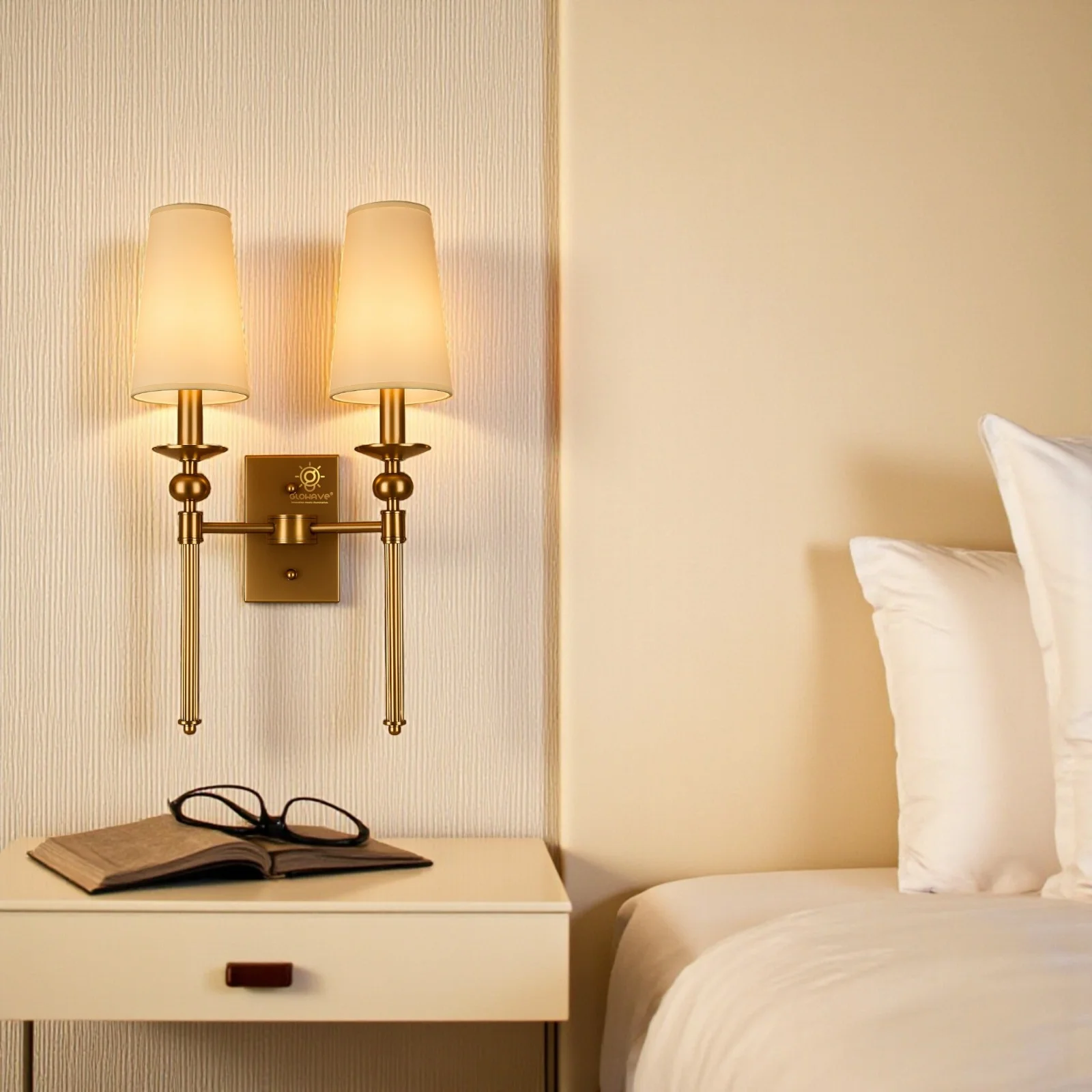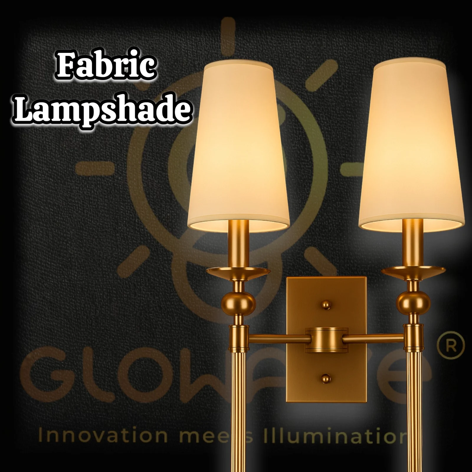 Gold Finish Dual Head Fabric Lampshade Wall Lamp - Warm White