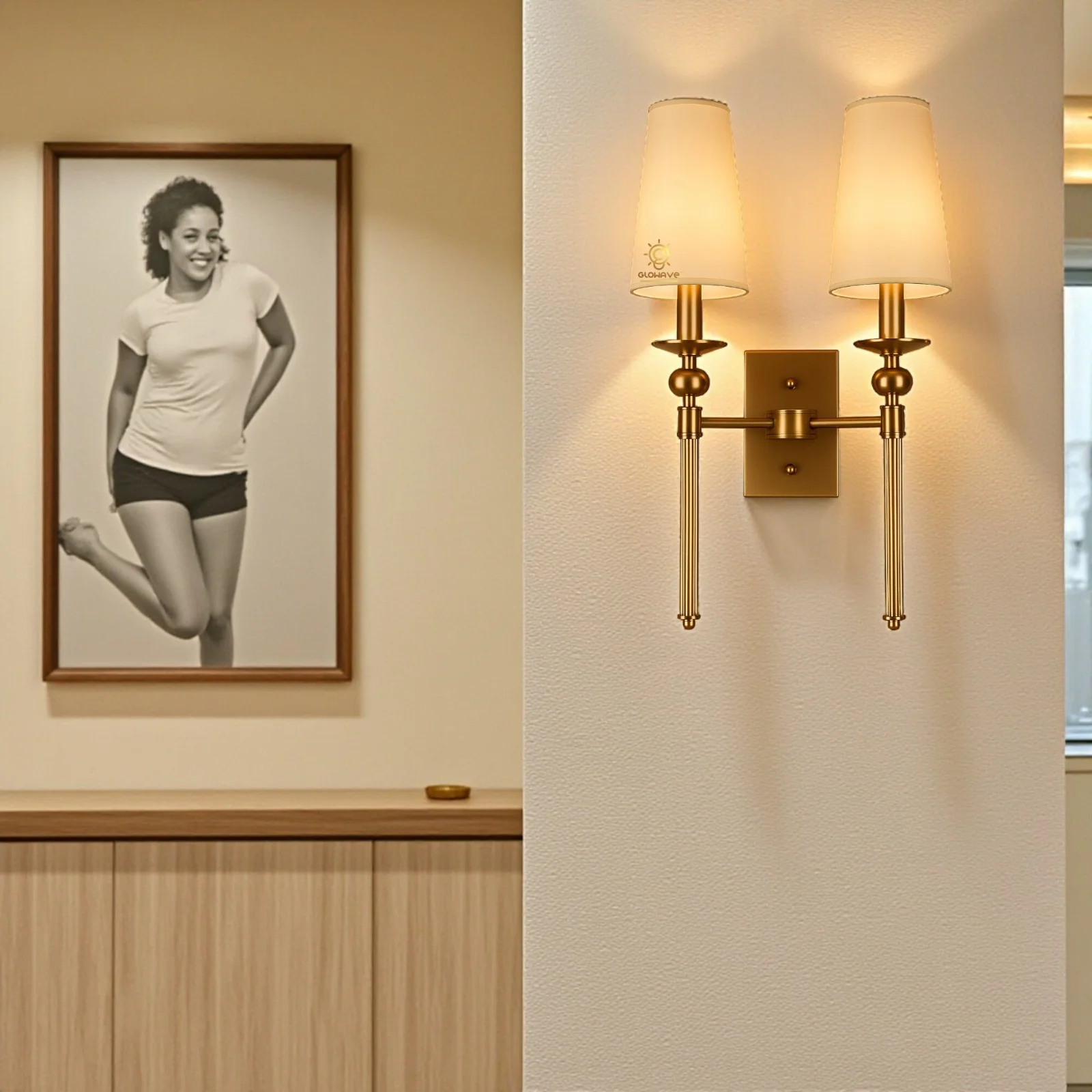 - Stylish Design: Gold Finish Glass Shade Wall Sconce.