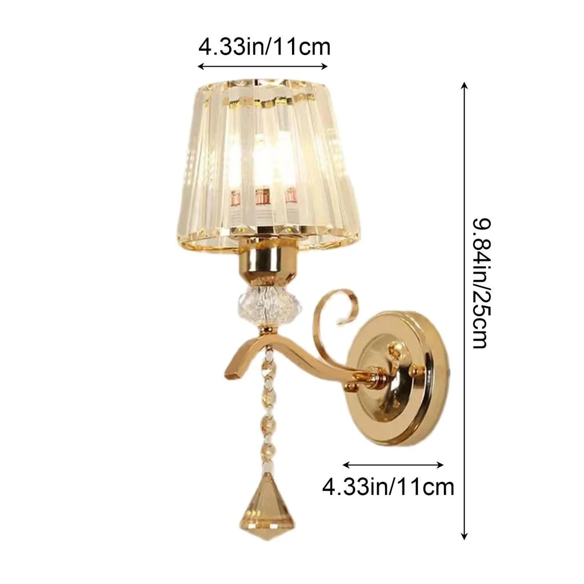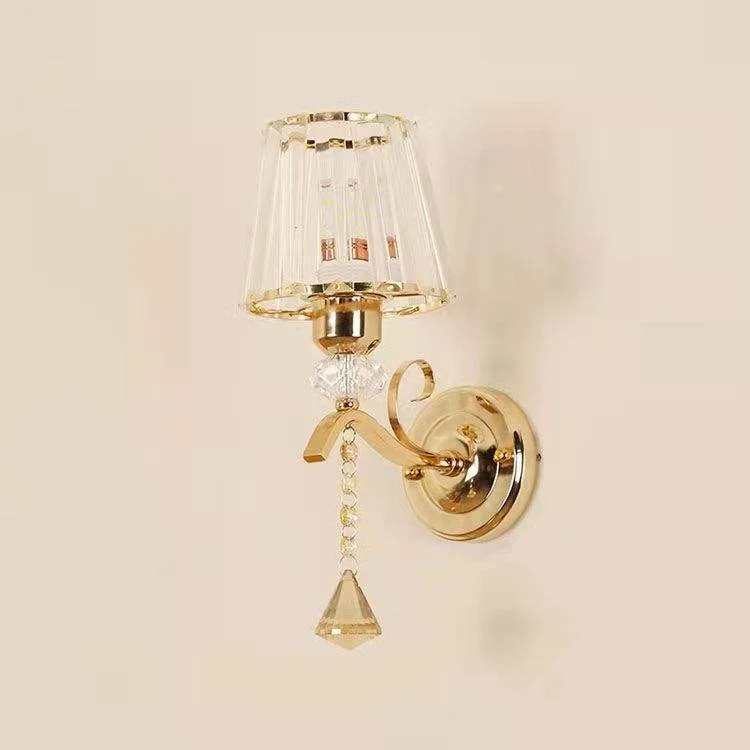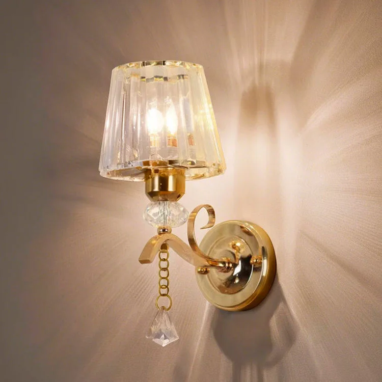 Gold Finish Light Crystal Glass Shade Wall Lamp - Warm White