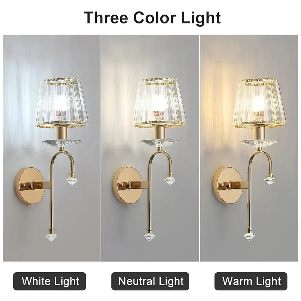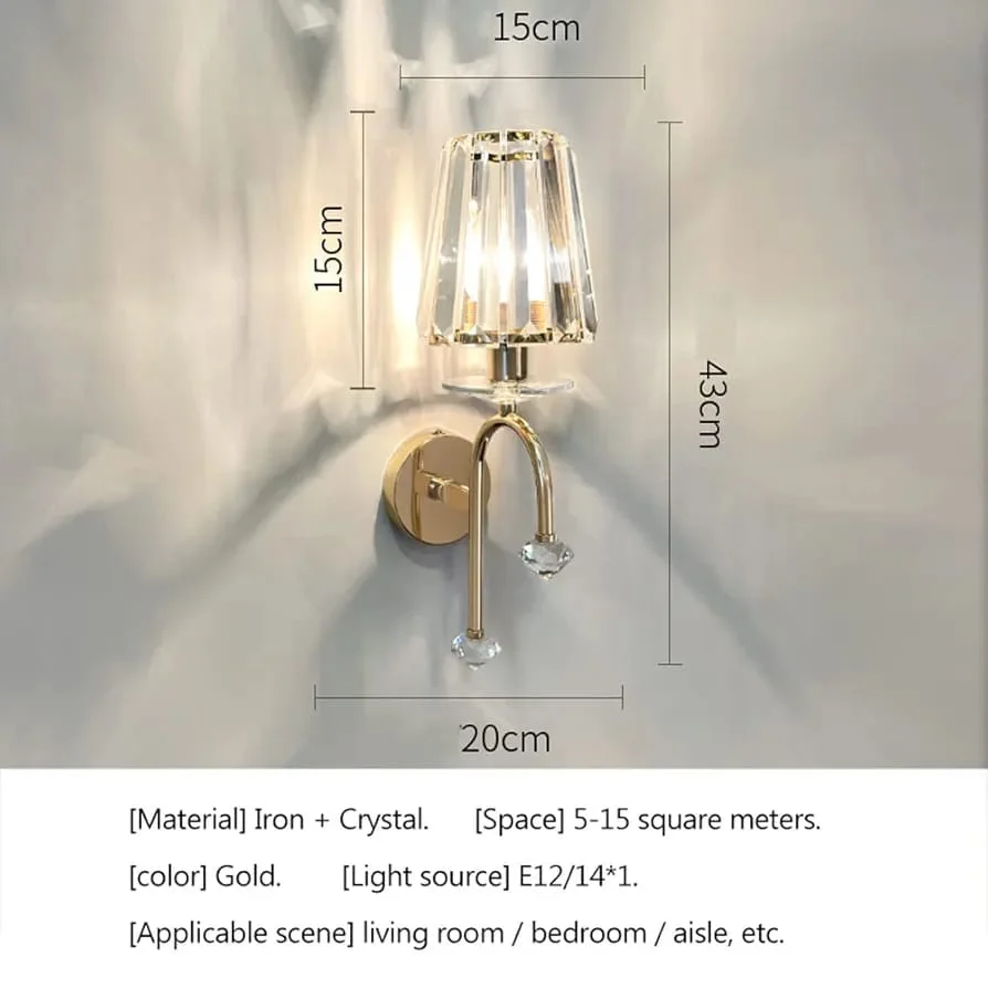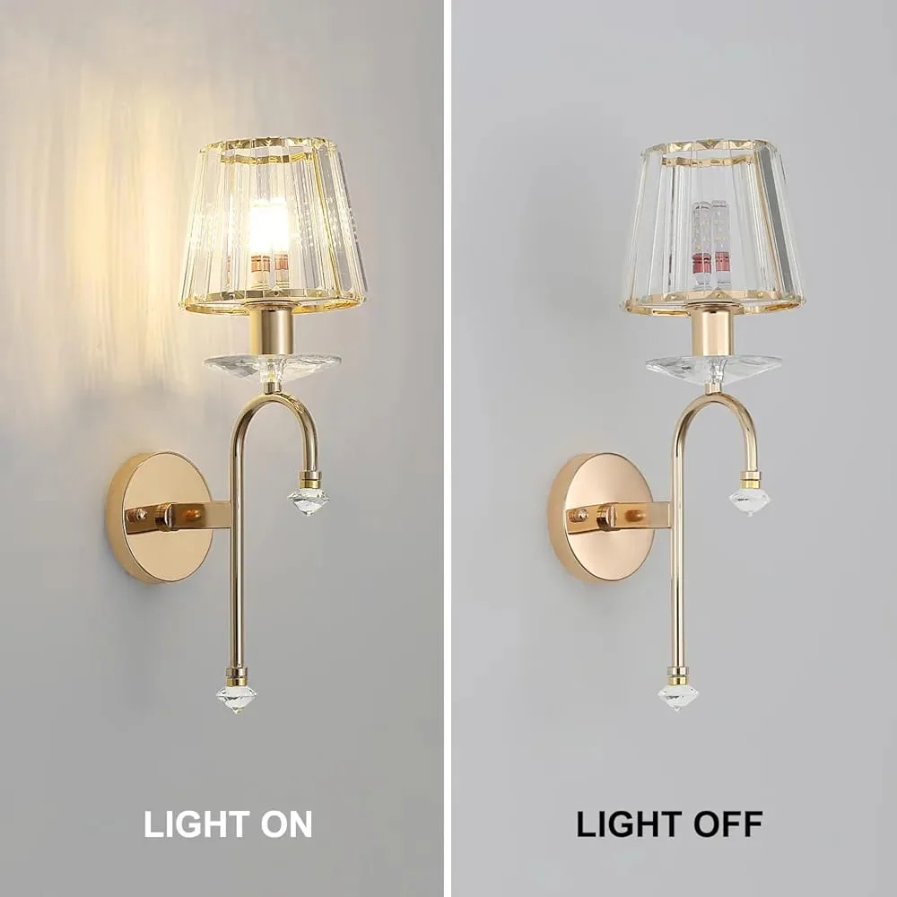 Gold Finish Light Crystal Lampshade Wall Lamp - Warm White