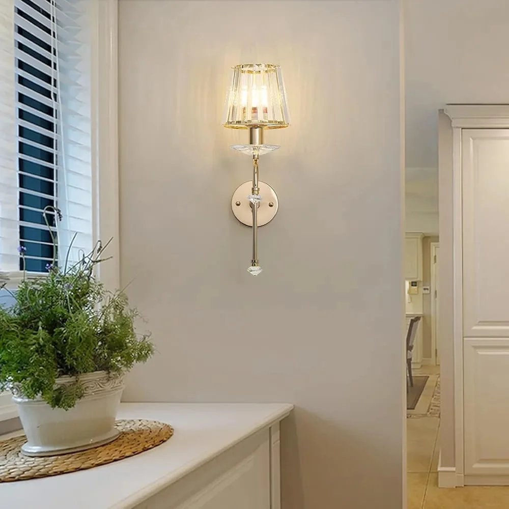 - Stylish Design: Gold Finish Glass Cylindrical Shade Wall Sconce.