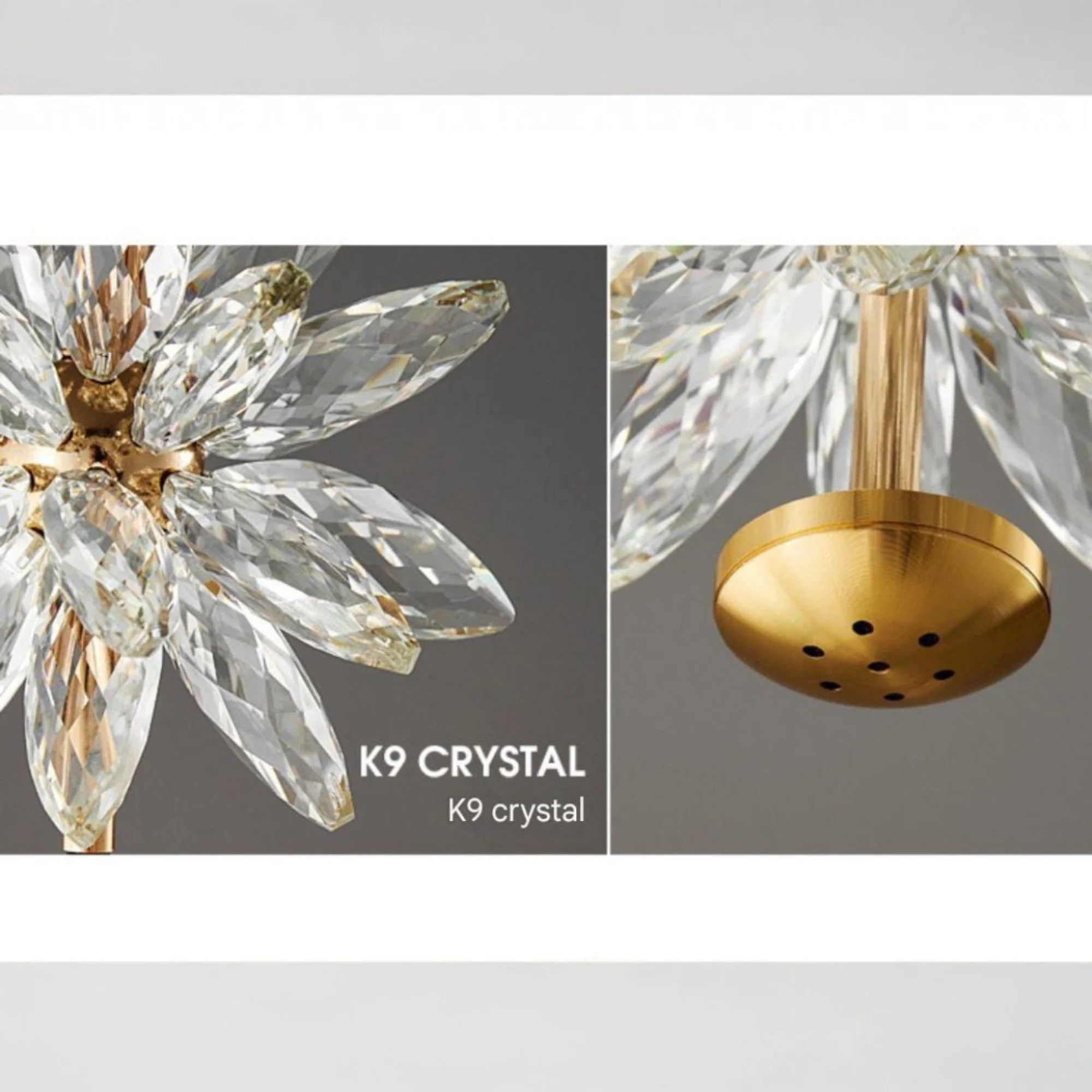 Gold Finish Luxury Crystal Flower LED Pendant Hanging Light