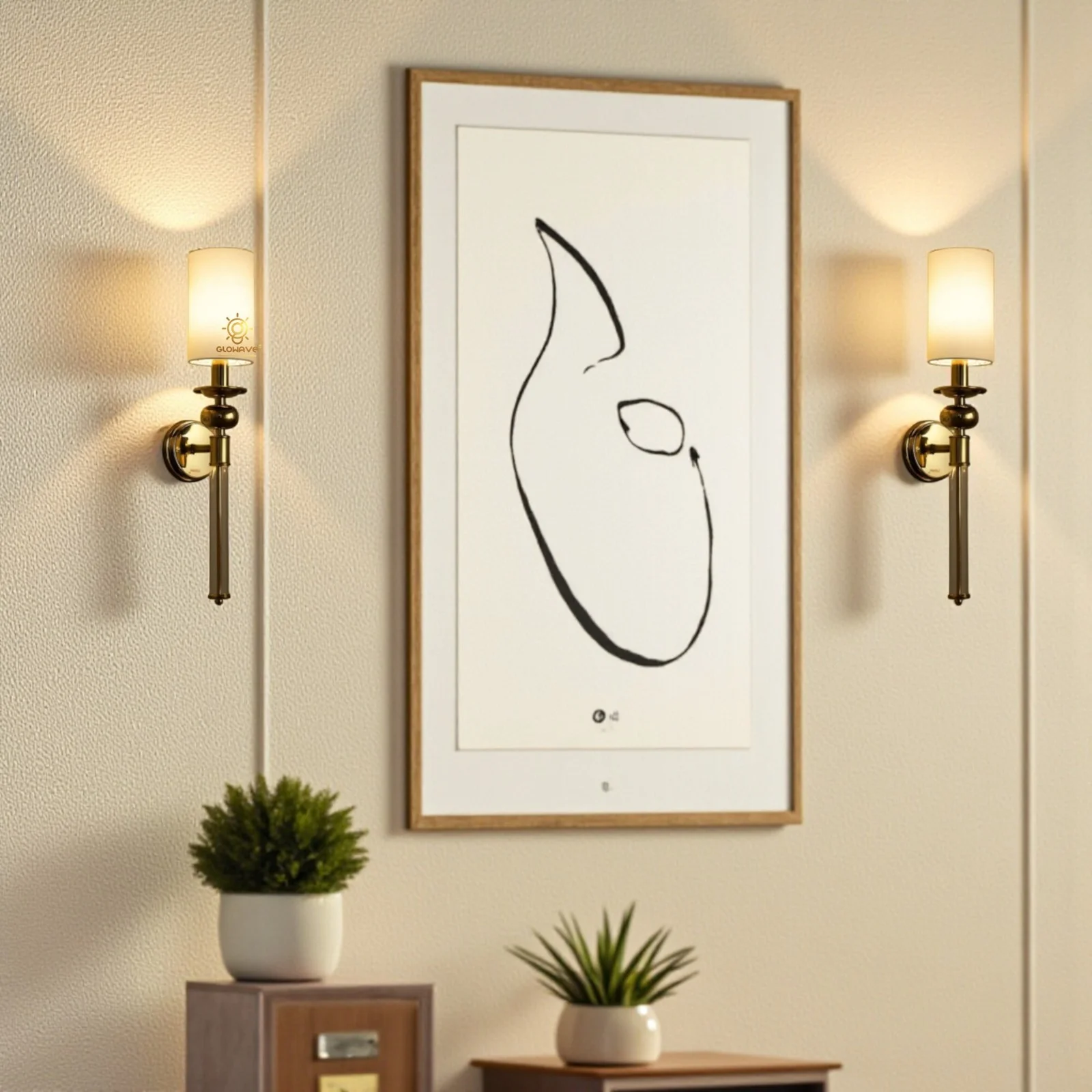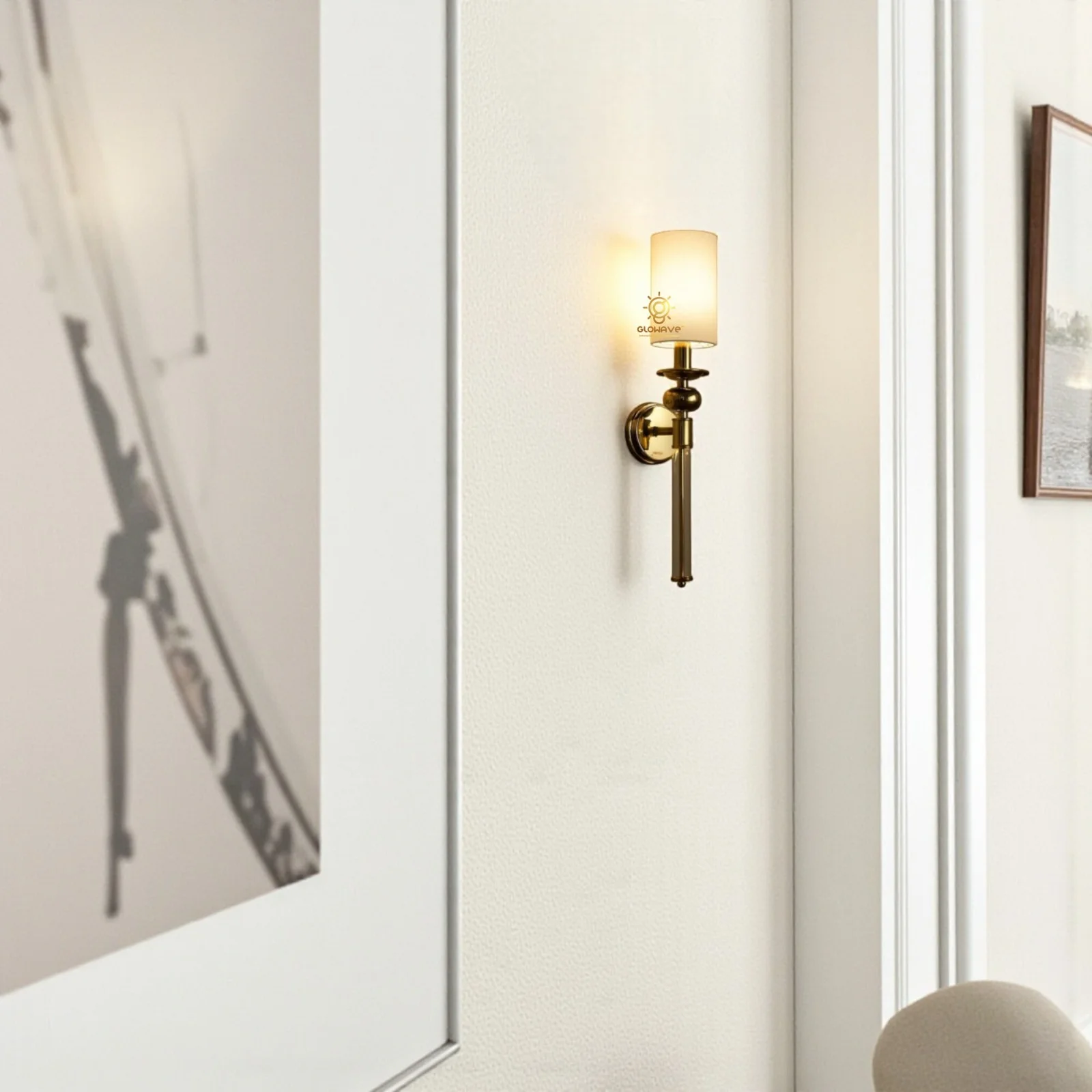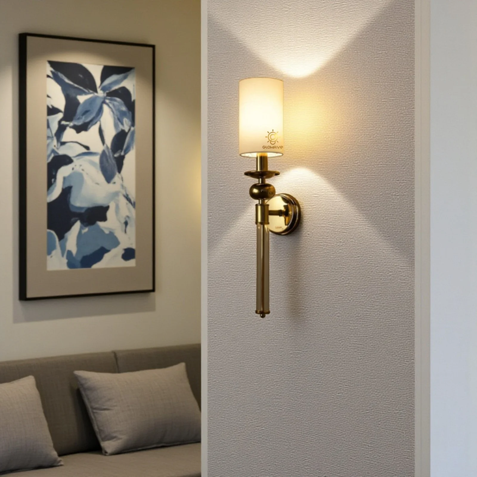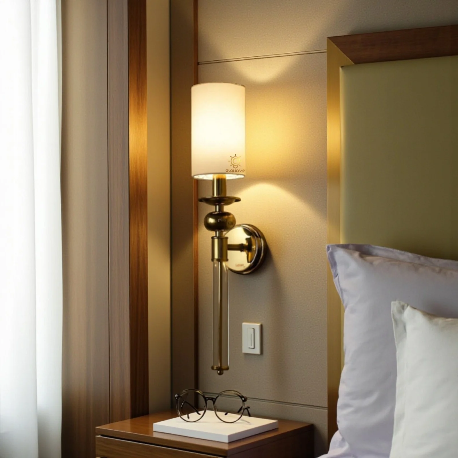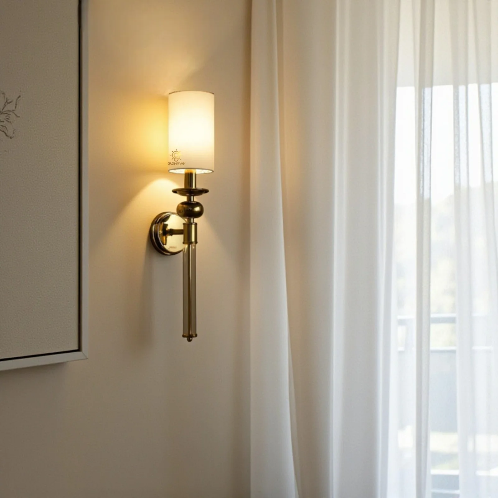 - Stylish Design: Gold Finish Fabric Shade Wall Sconce.