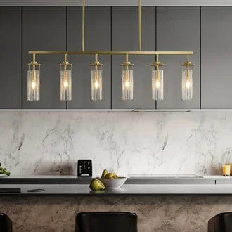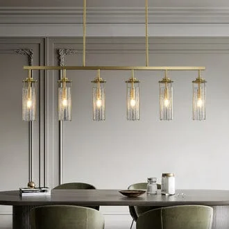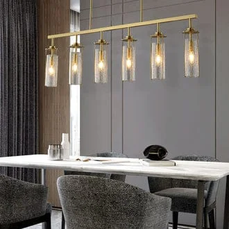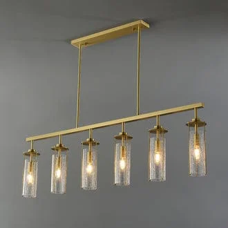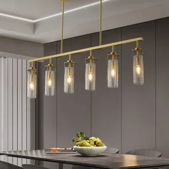 Gold Glass Linear Pendant 6 Crackle Glass Hanging Light Chandelier - Warm White (5770-6L)