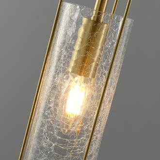 Golden Cylindrical Crackle Glass Shade 6 Lights Pendant Hanging Light - Warm White
