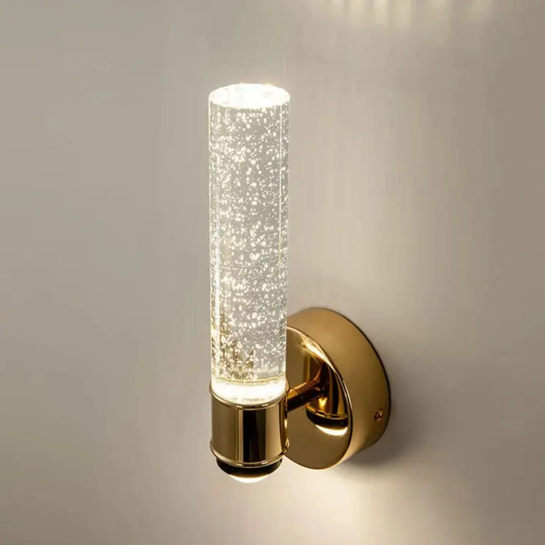 Enhance your home decor with the Gold Finish Half Crystal Glass Cylindrical Shade Wall Lamp. This exquisite sconce fixture, perfect for living rooms, bedrooms, and bedsides, boasts a timeless antique brass finish and clear glass design. It casts a warm white, white, natural white light, creating a cozy and nostalgic atmosphere accoring to your mood. Ideal for adding vintage charm to any space.