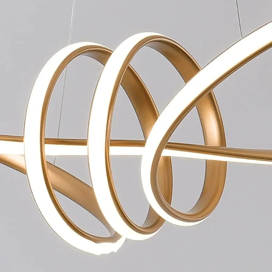 Gold LED Twisted Curl Pendant Chandelier Light -Tricolour
