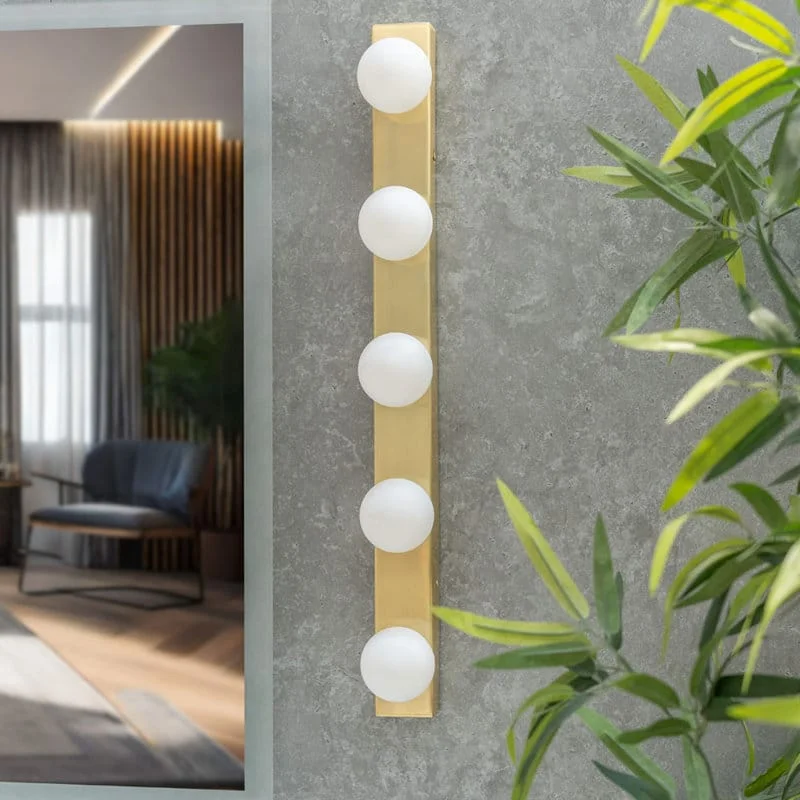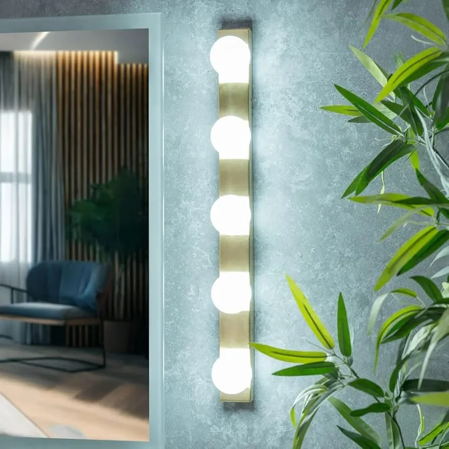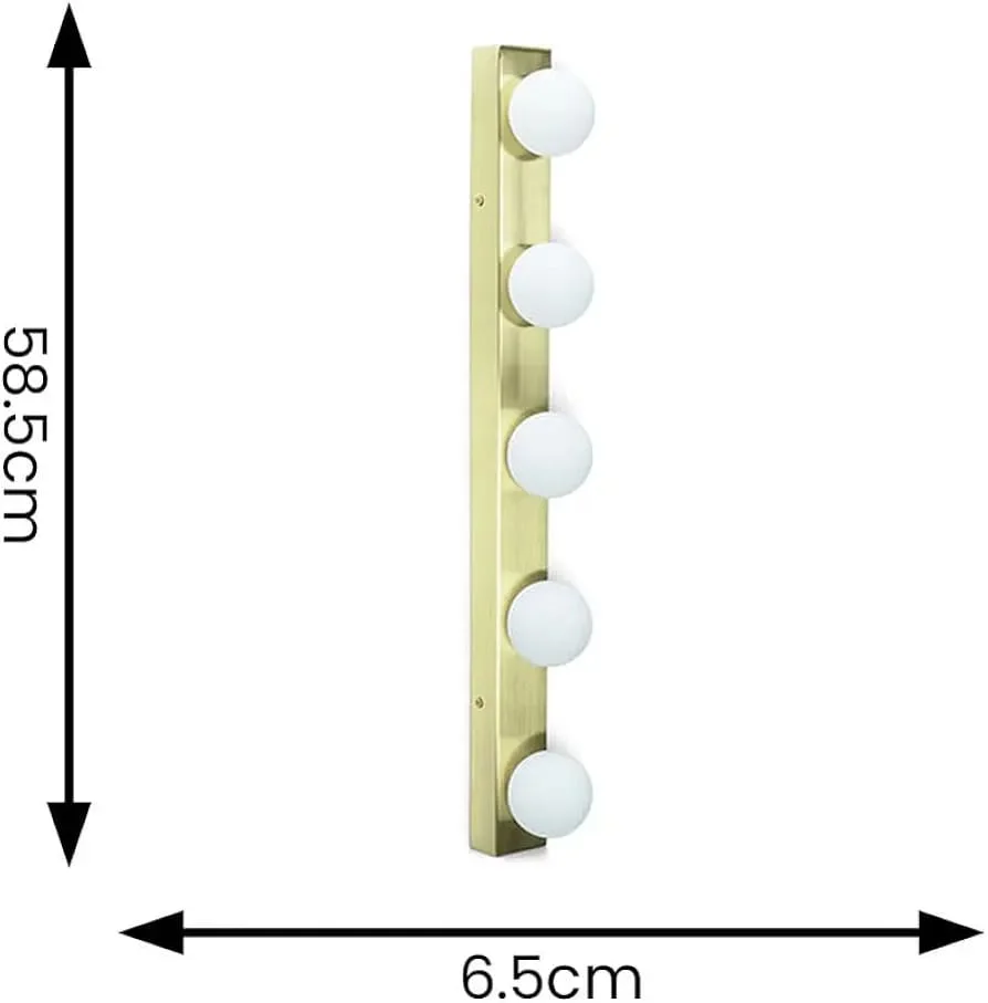 Gold Pisello Picture Light Finish 5 LED Ball Mirror, Vanity, Dressing Light - Tricolour