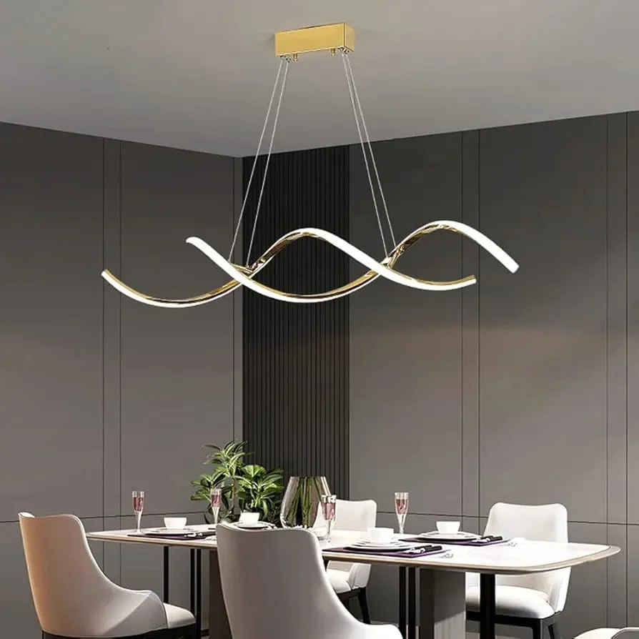 Introducing our Gold Body Twisted Curl Acrylic LED Chandelier Pendant Light, a sleek and elegant lighting solution for modern spaces. The luxurious gold body exudes opulence, while the linear acrylic design adds a contemporary touch. Emitting a warm white glow, this chandelier creates a welcoming ambiance wherever it's placed. Energy-efficient LED technology ensures both cost-effectiveness and eco-friendliness. Whether suspended above a dining area, kitchen island, or living room, this fixture serves as a striking focal point, elevating the aesthetic of any interior. Illuminate your home with style and sophistication with our Gold Body Twisted Cur Acrylic LED Chandelier Pendant Light.