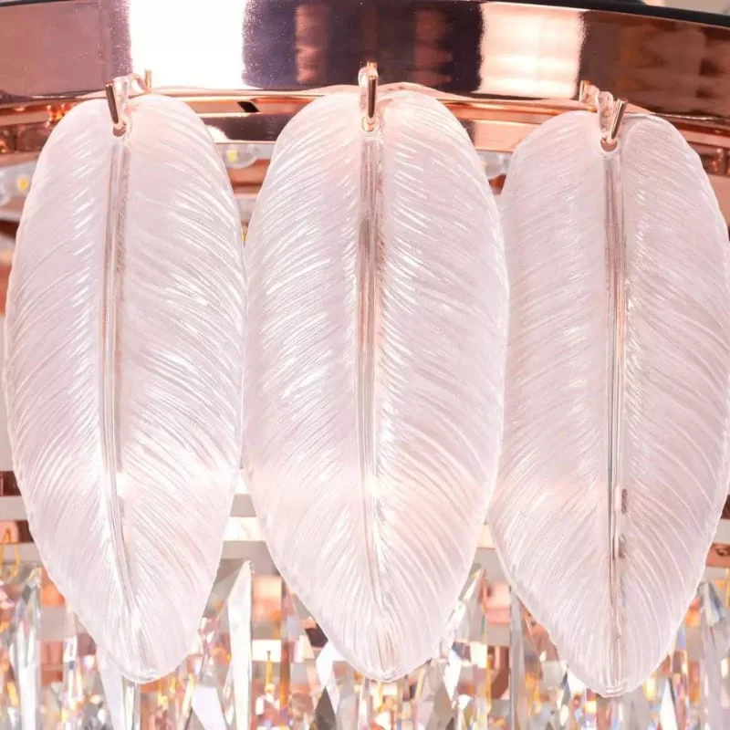 - Metal body with Acrylic Lampshade Crystals all over, and 4 ABS fan blades with copper binding motor chandelier