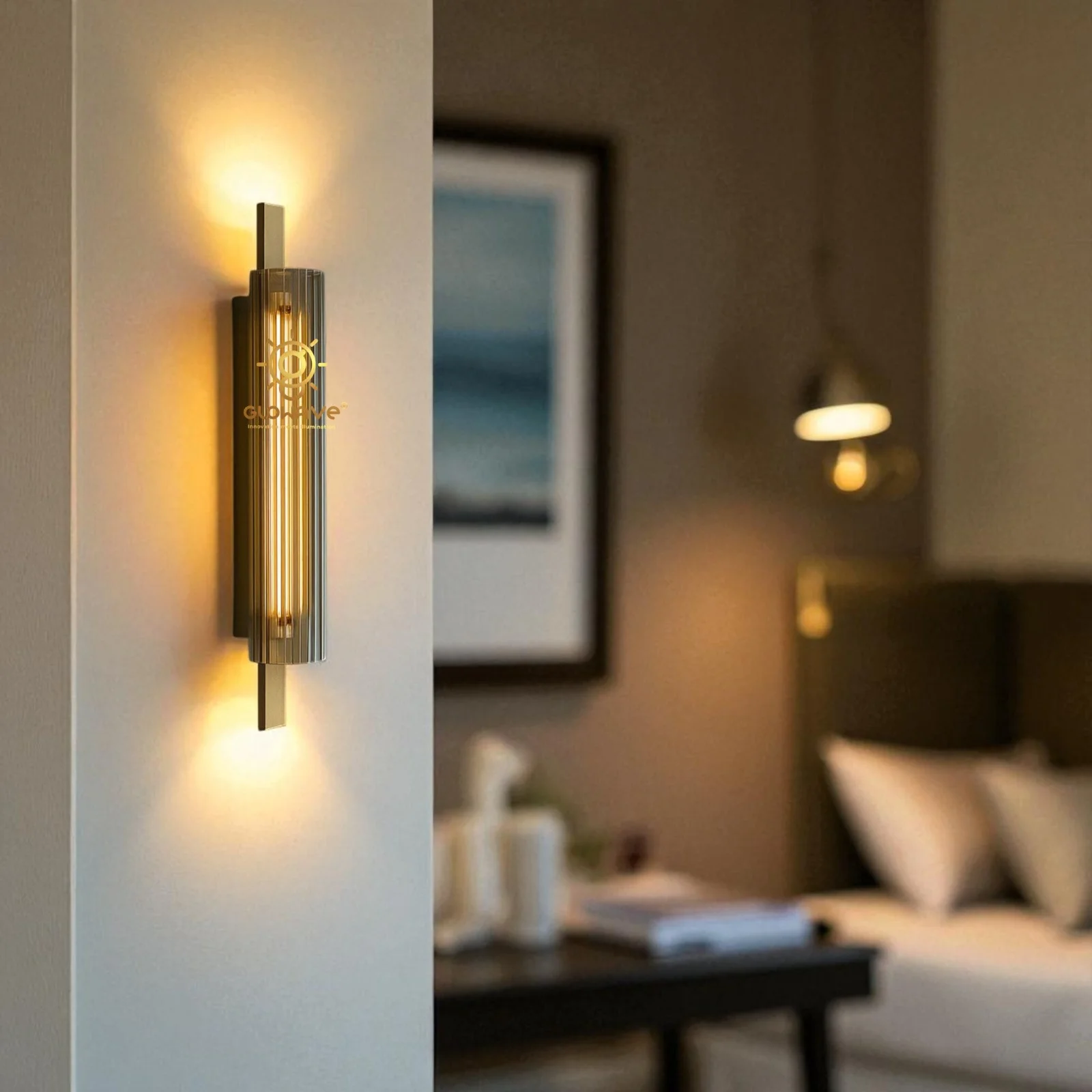 Golden Acrylic Light Cylindrical Design Long Wall Lamp - Tricolour (552-Bk)