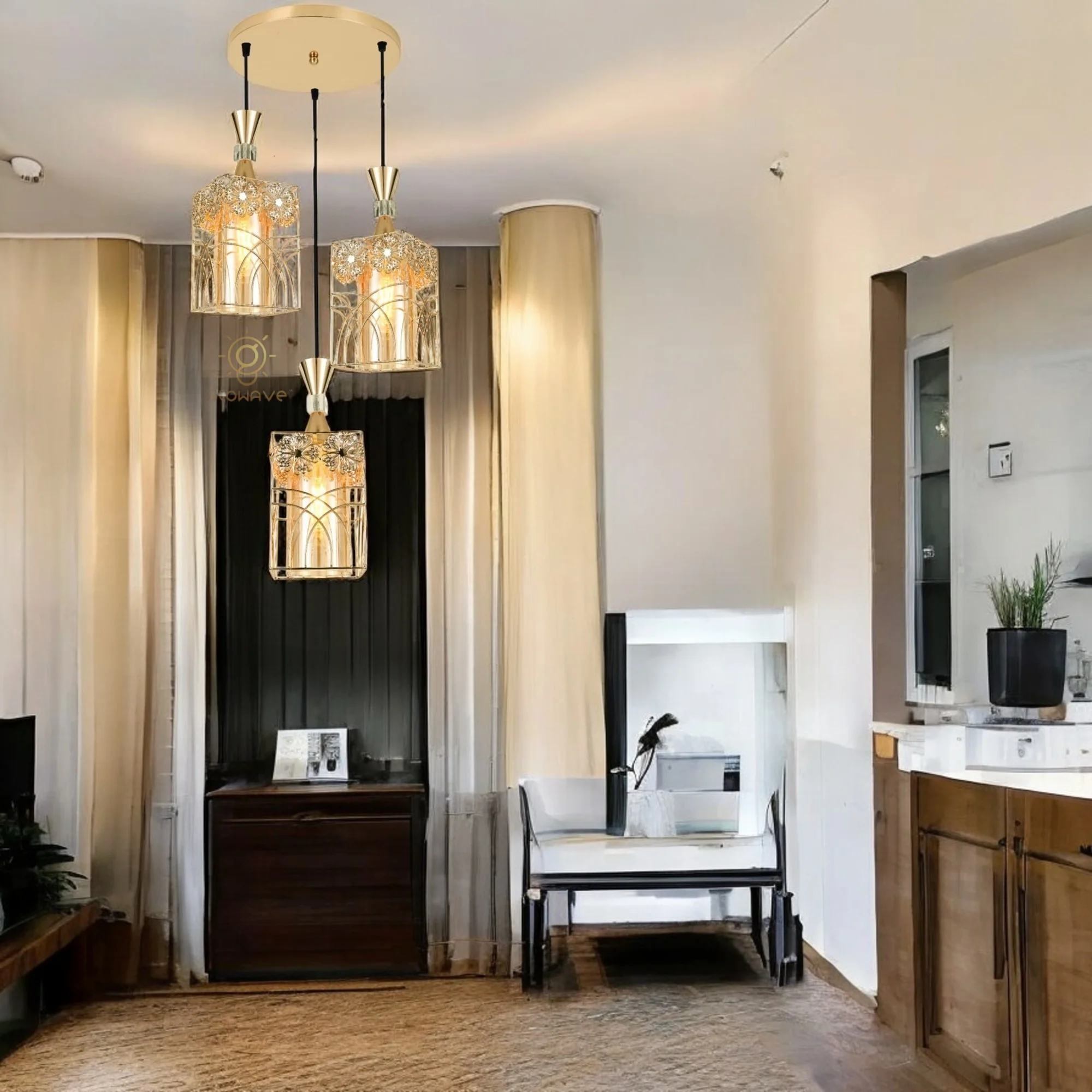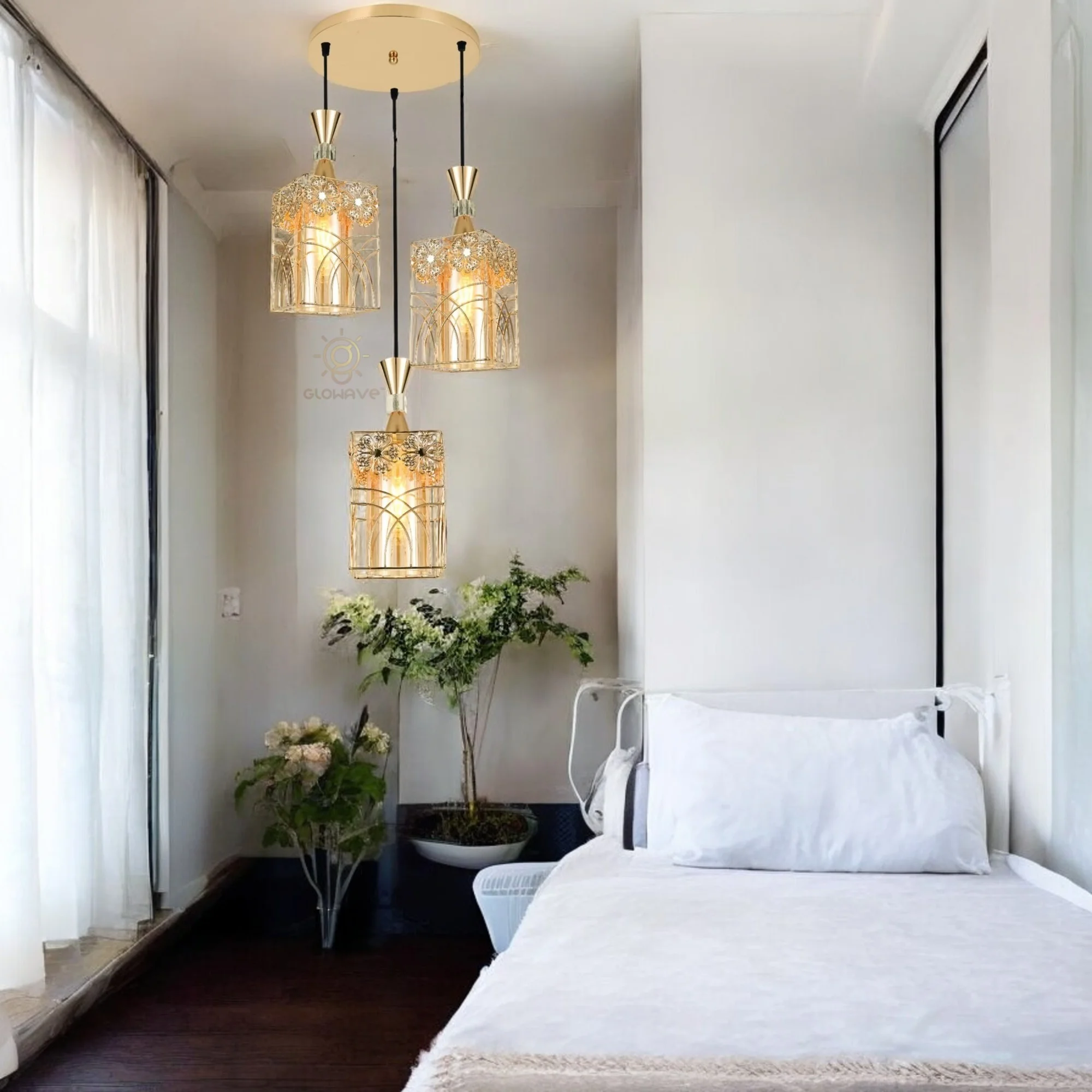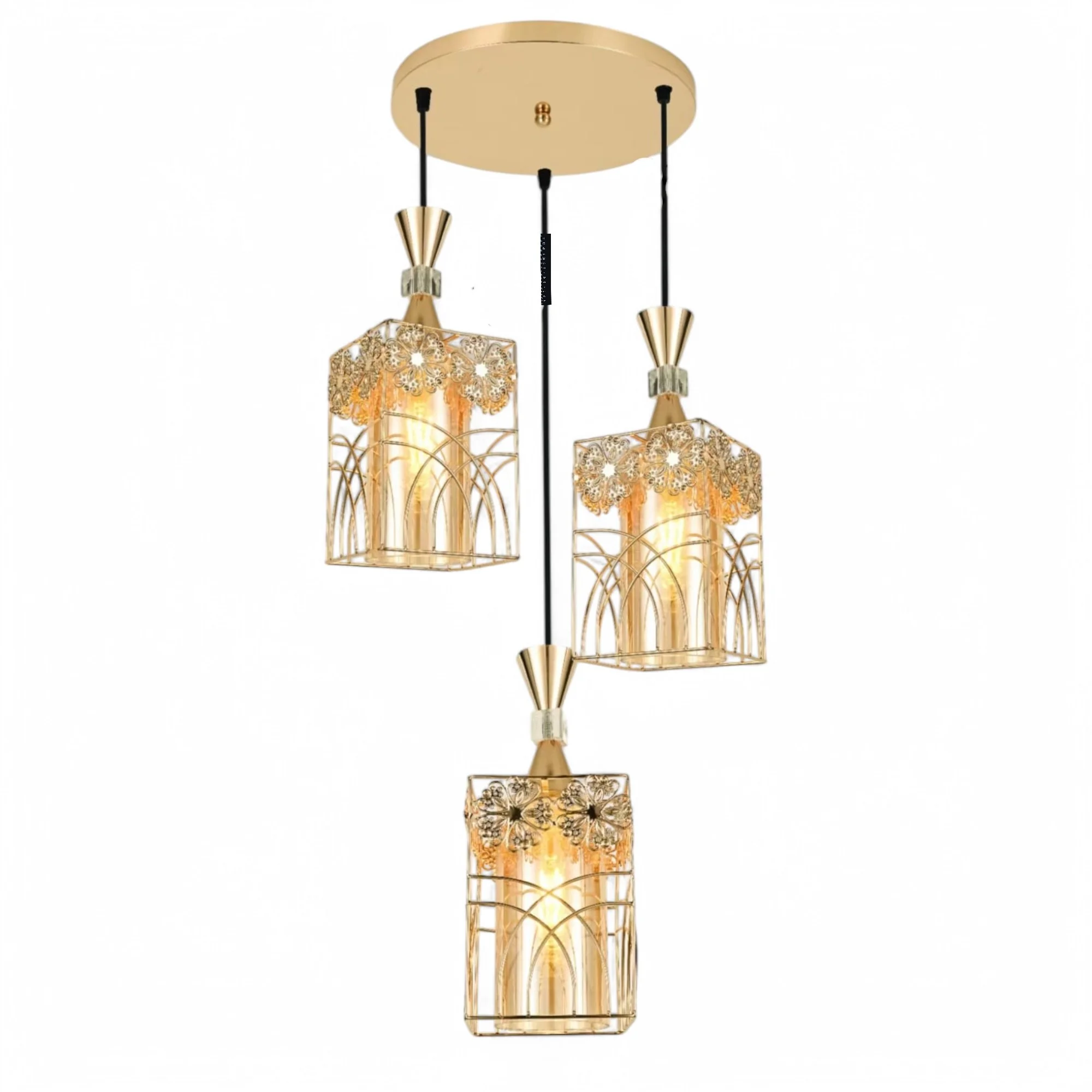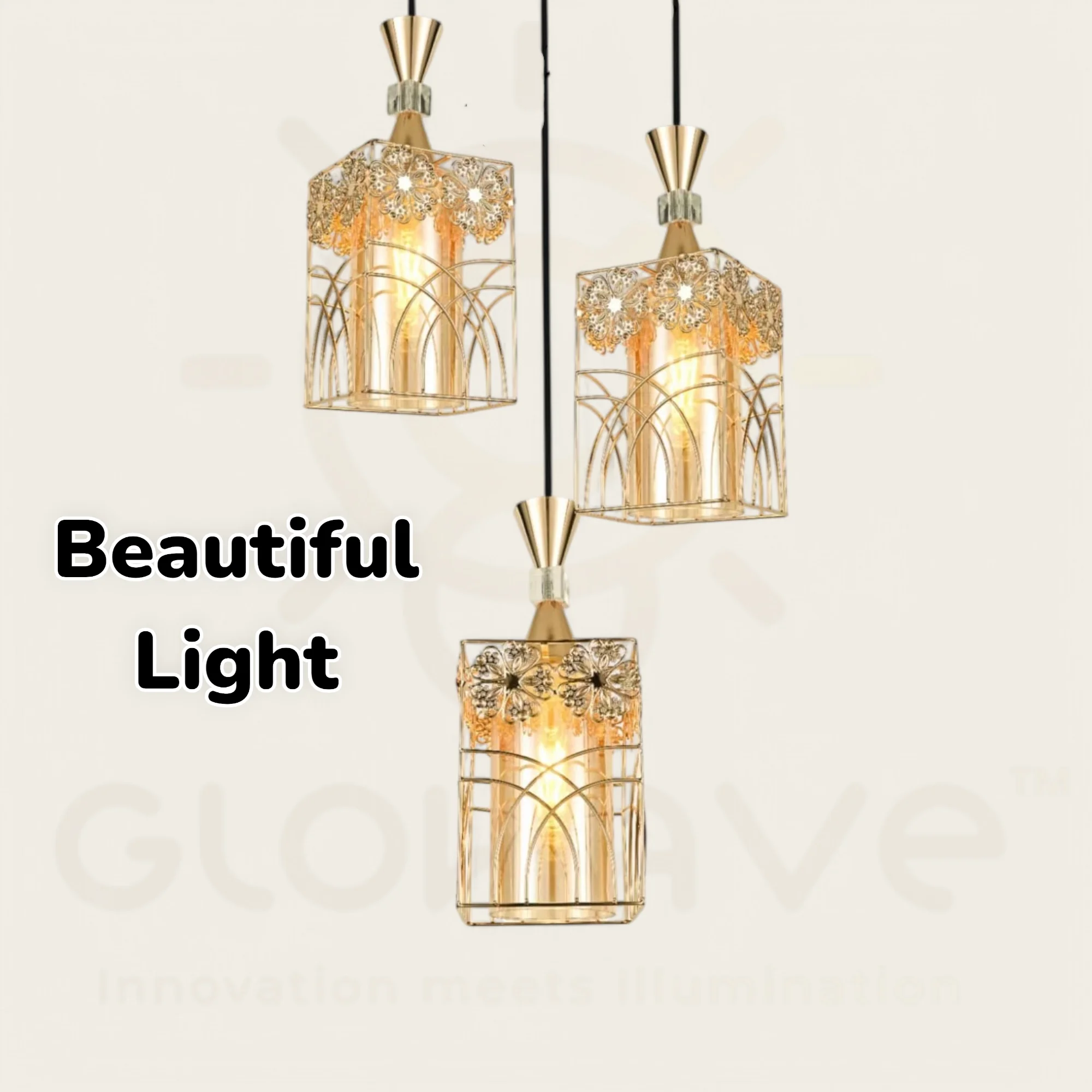 Golden All Metal Glass Set of 3 Pendant Hanging Light - Warm White