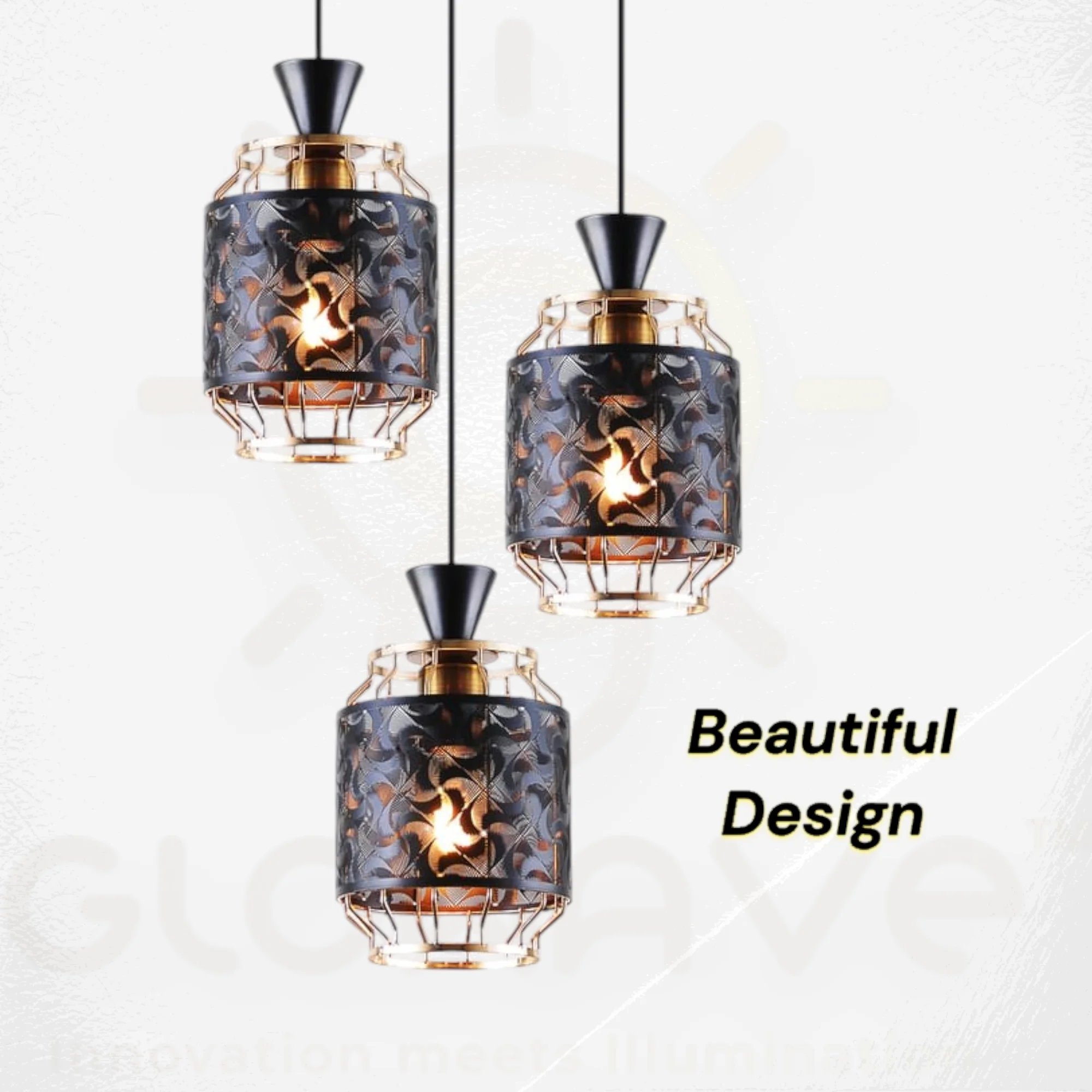 Golden Black All Metal Set of 3 Pendant Hanging Light - Warm White