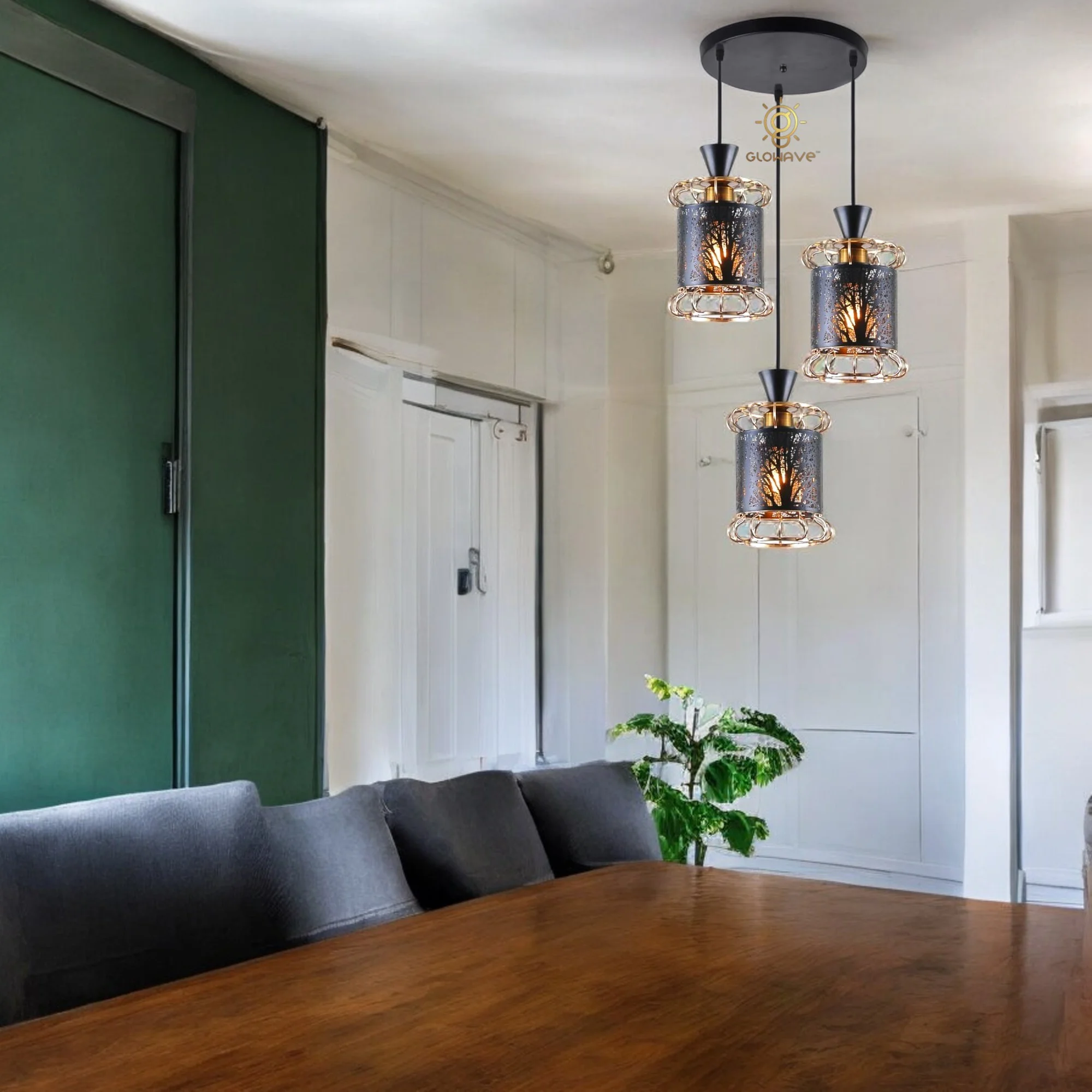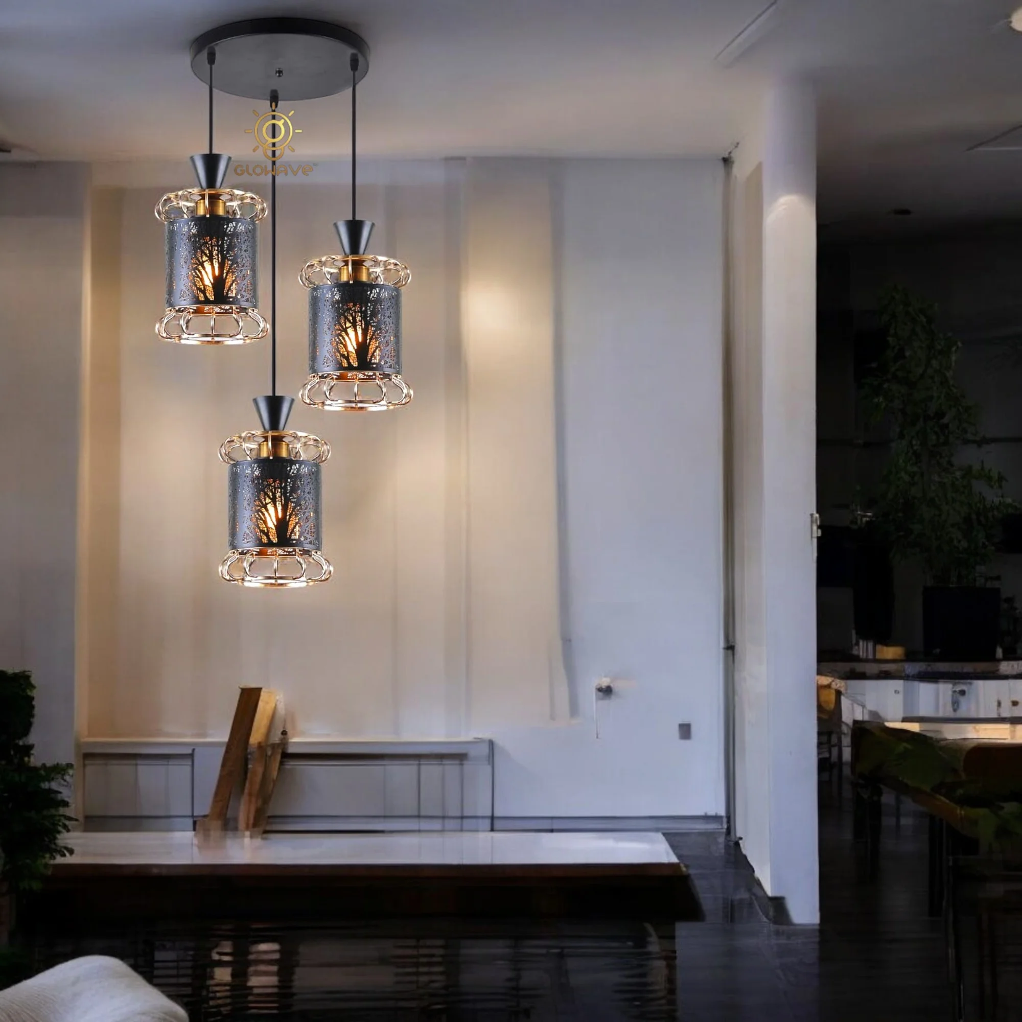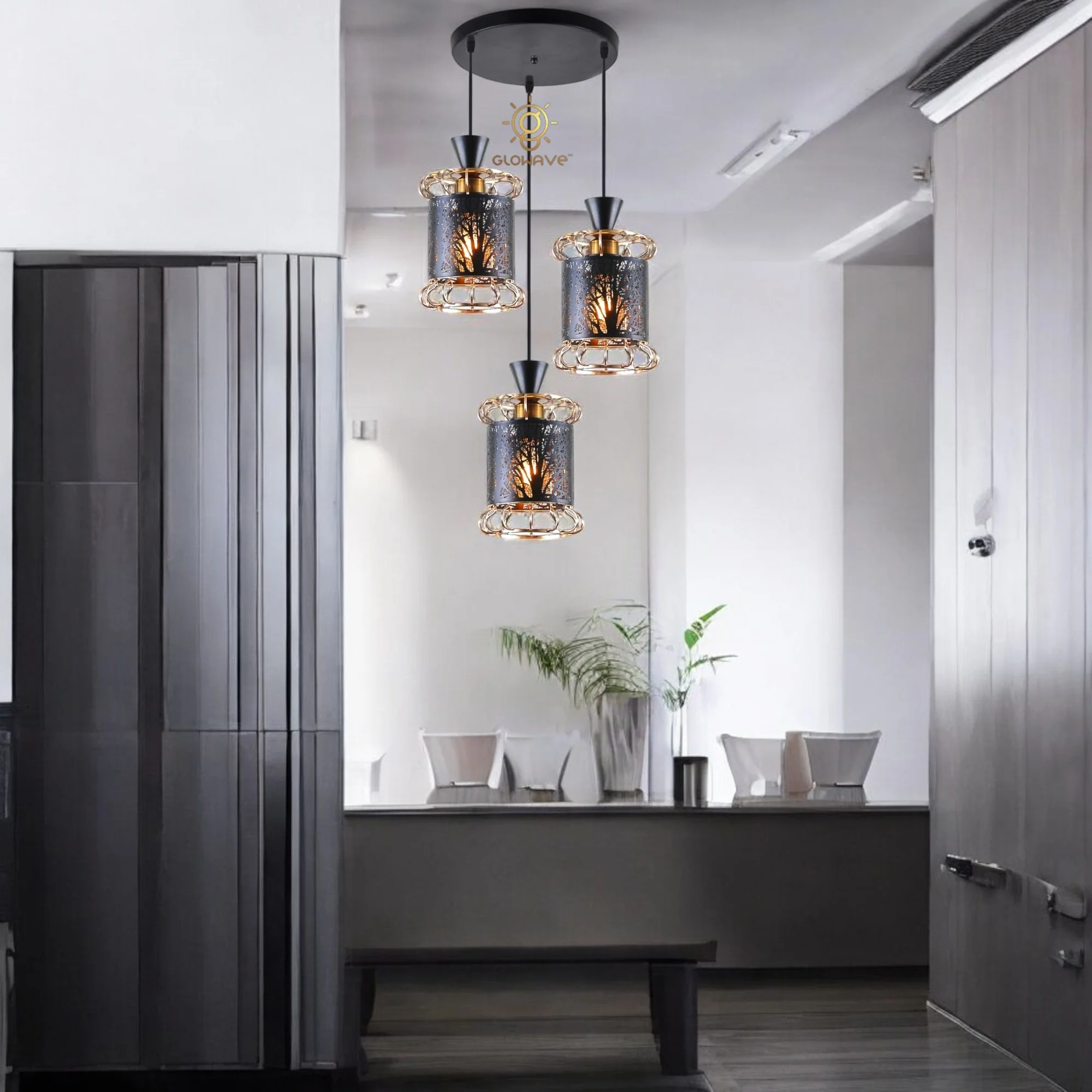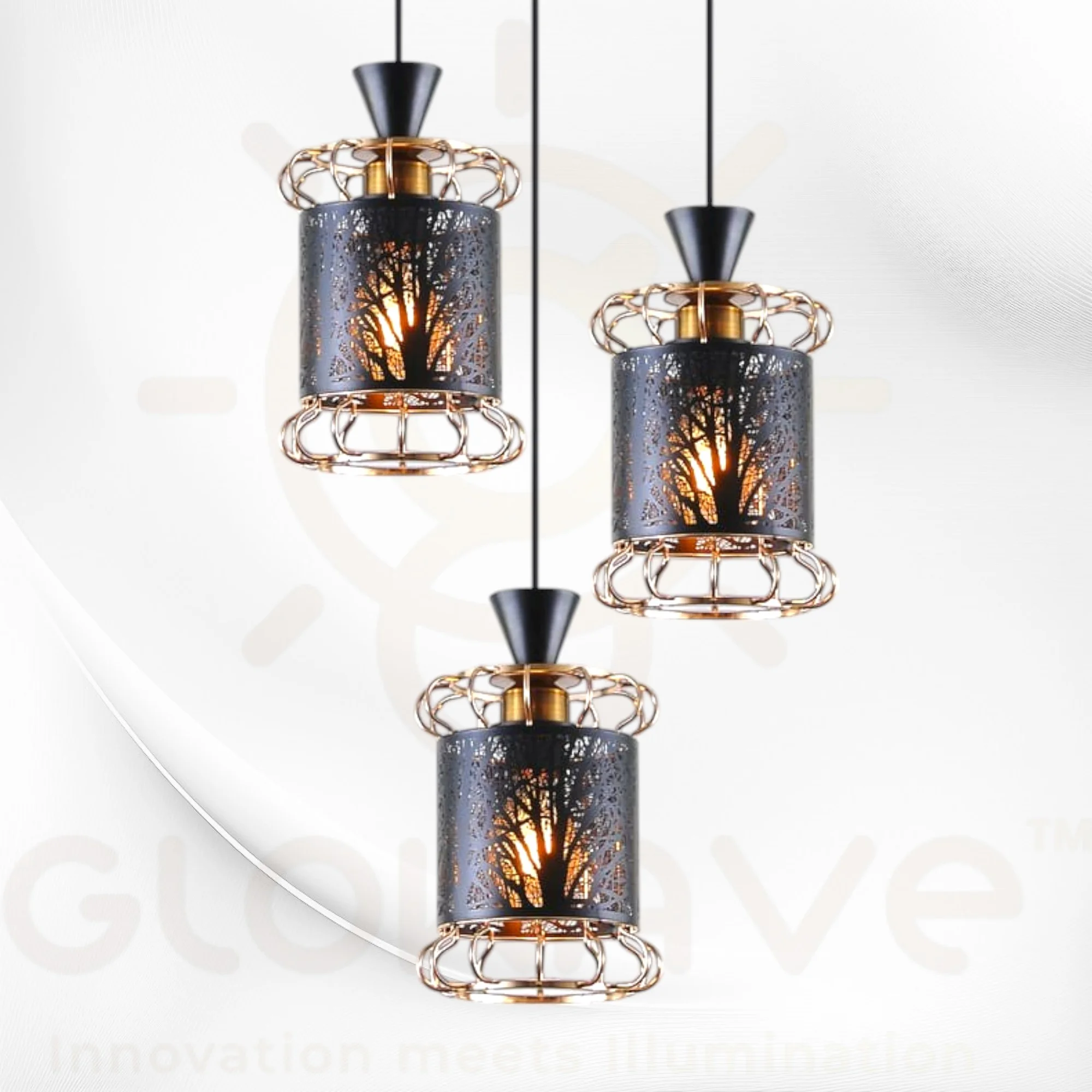 Golden Black All Metal Set of 3 Pendant Hanging Light - Warm White