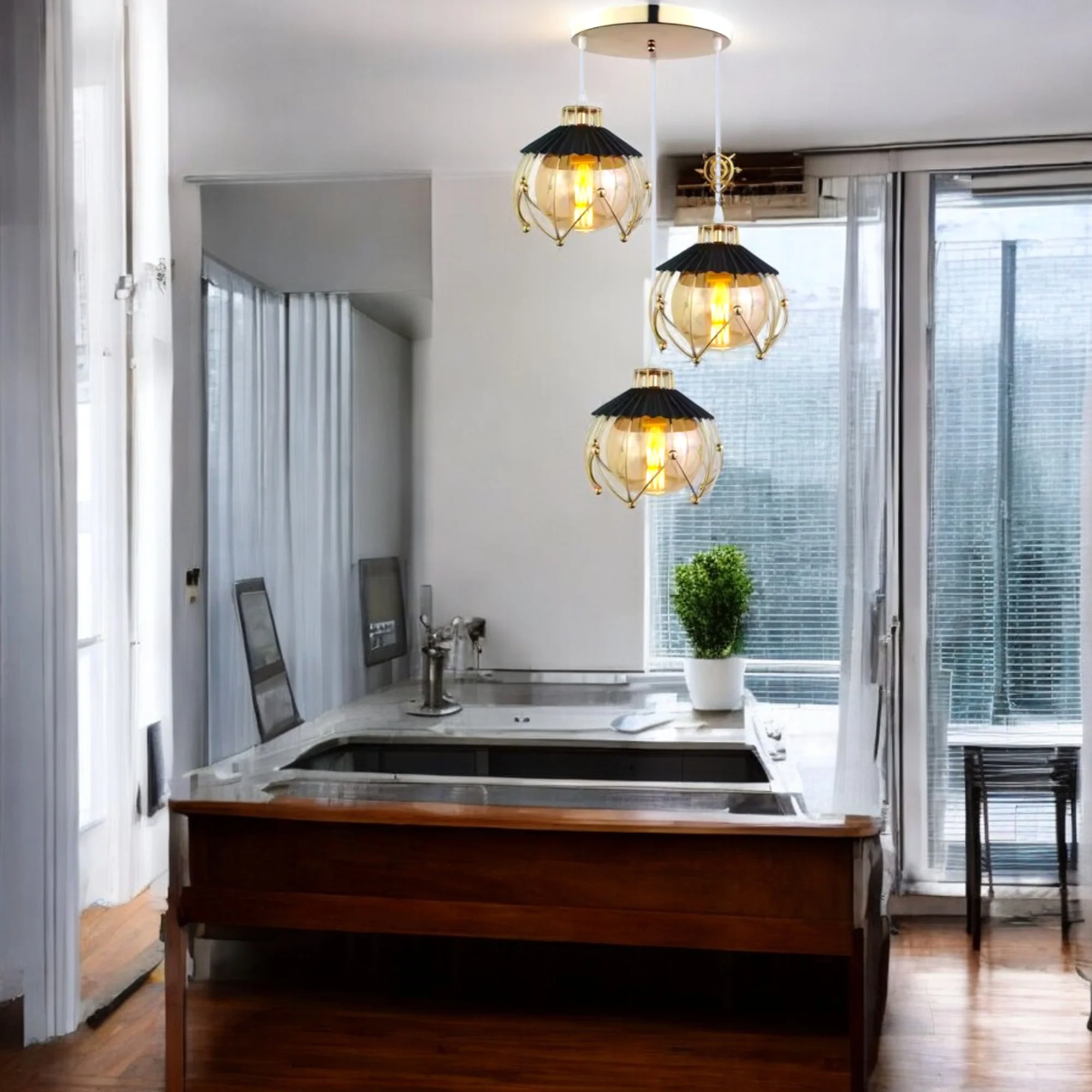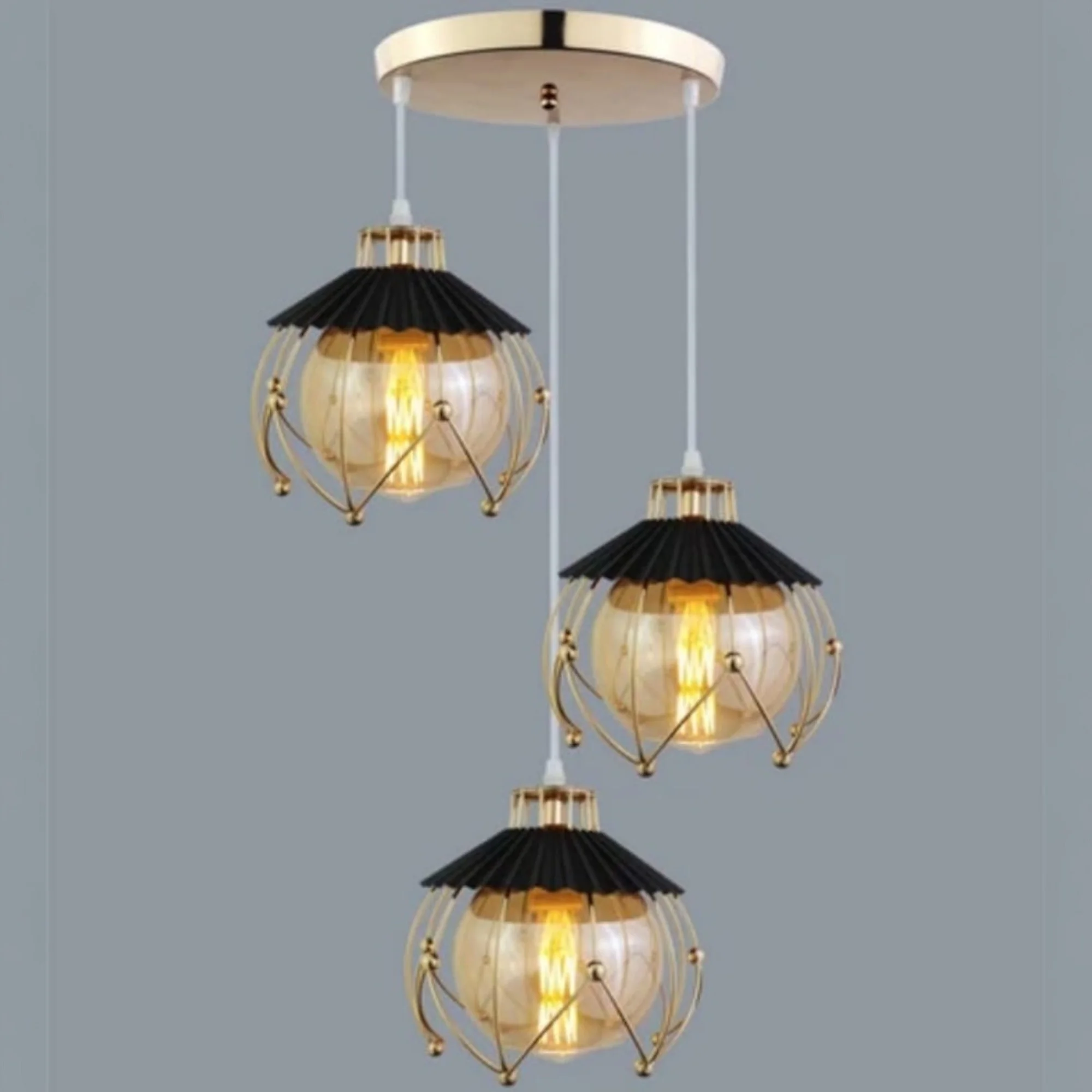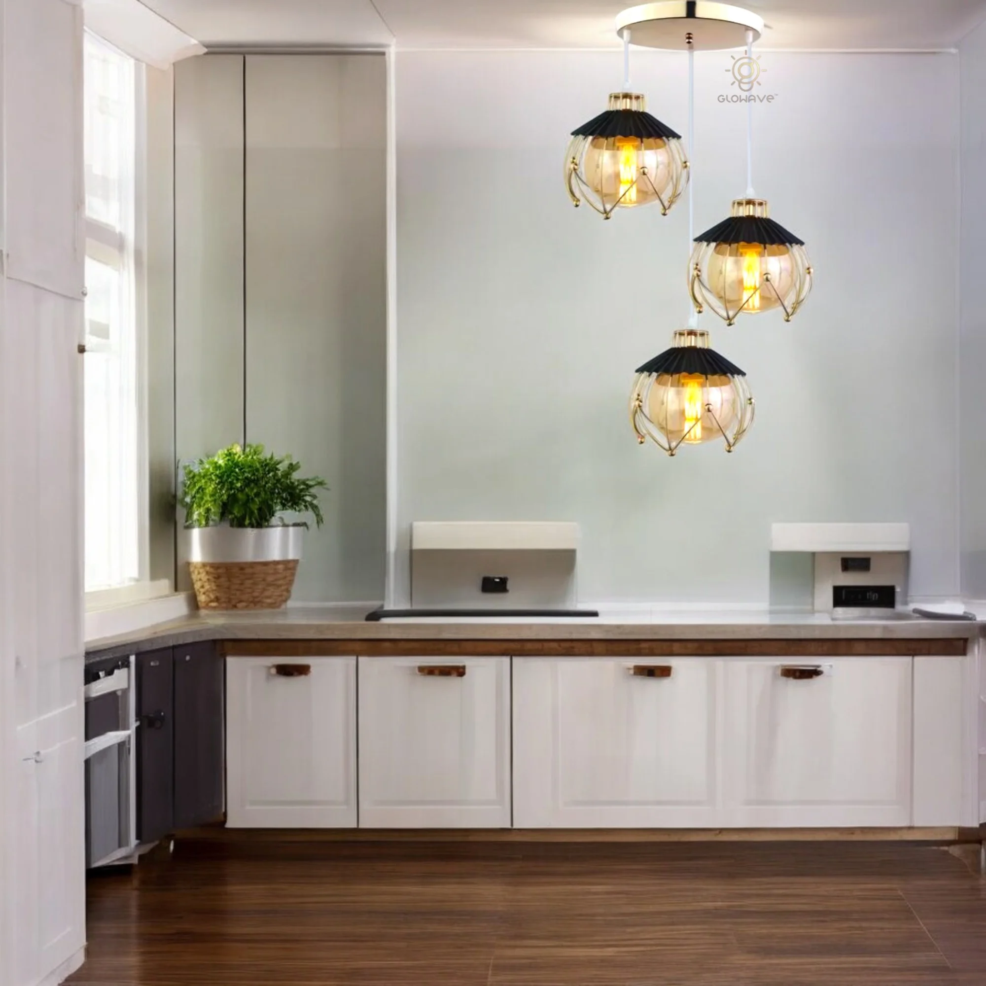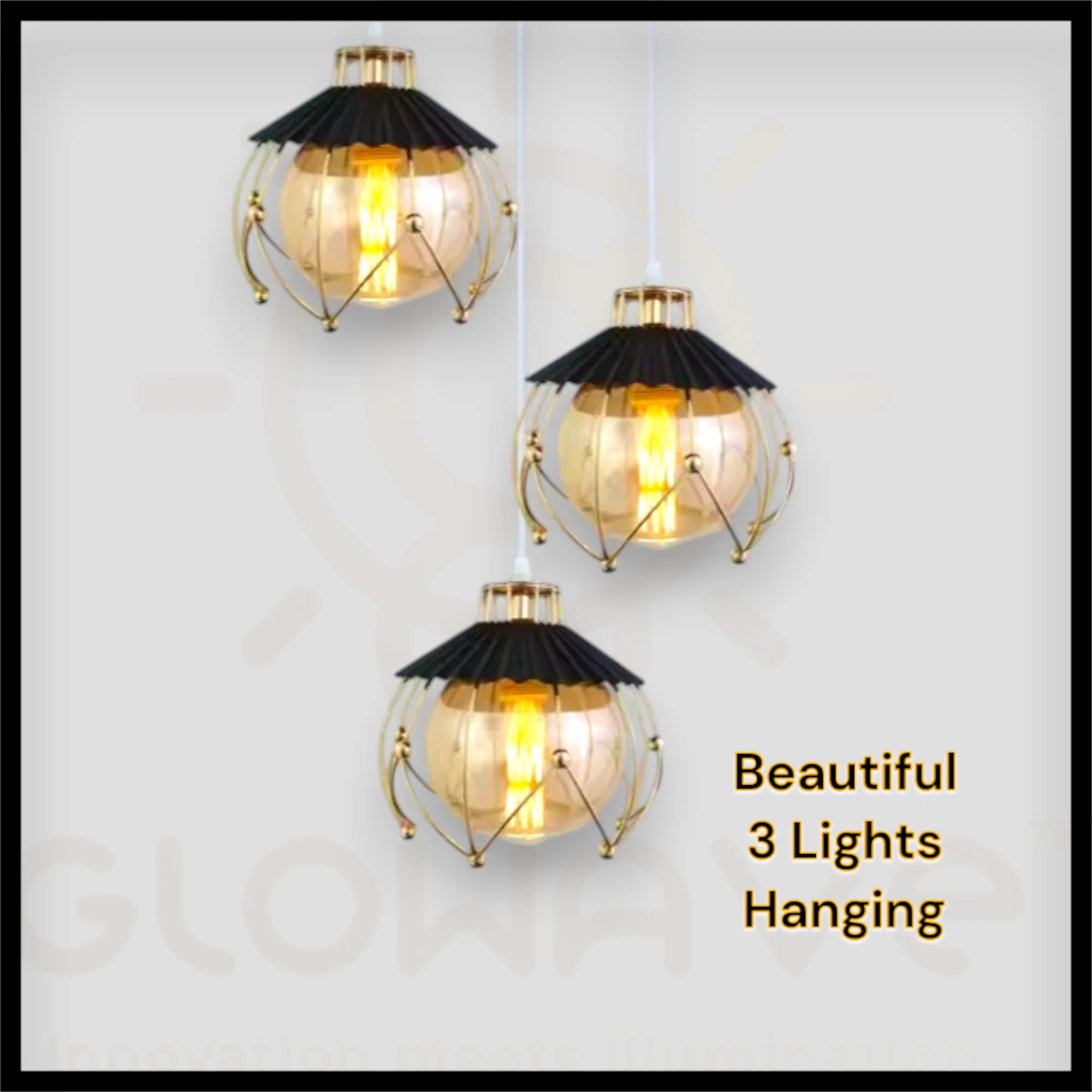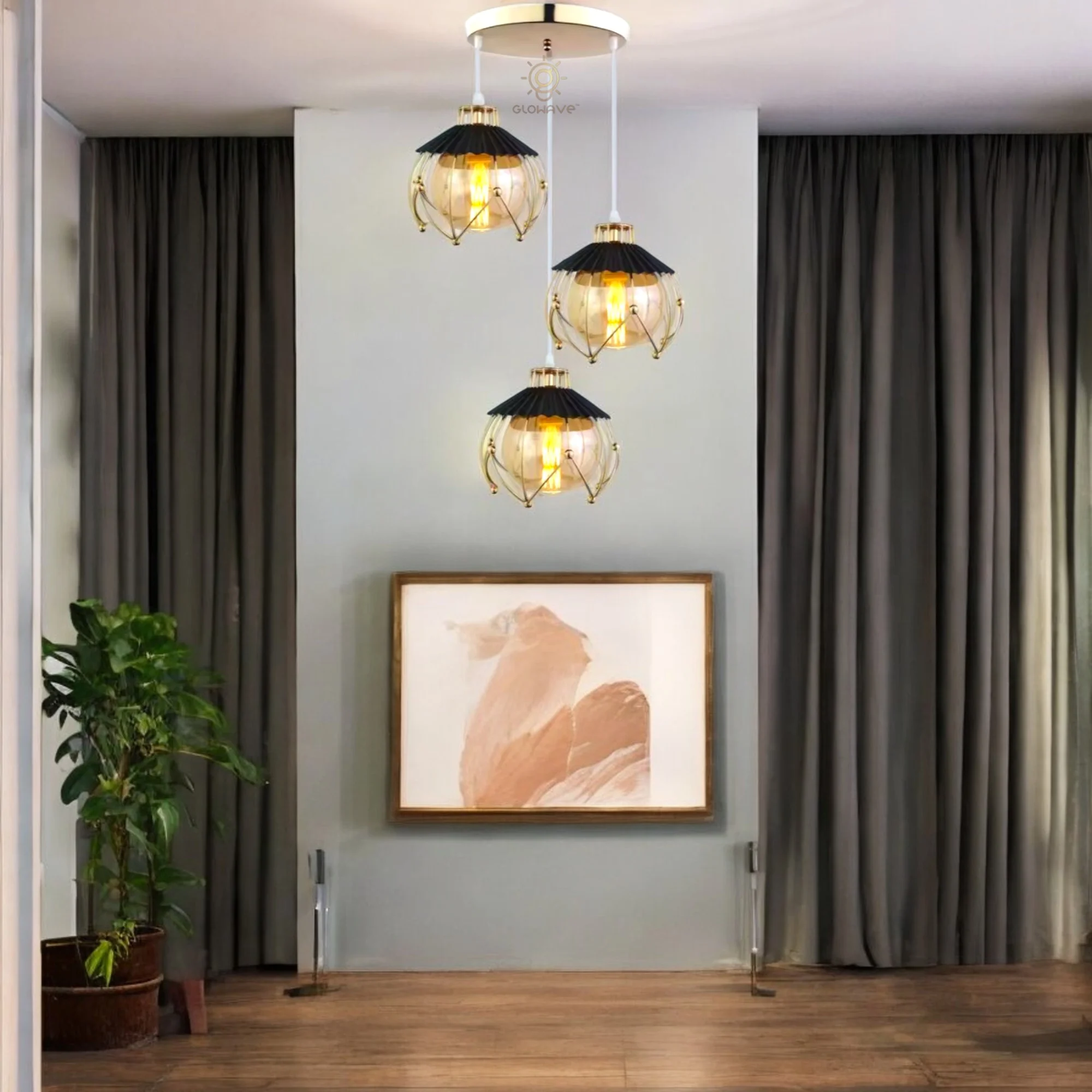 Golden Black Metal Glass Set of 3 Pendant Hanging Light - Warm White