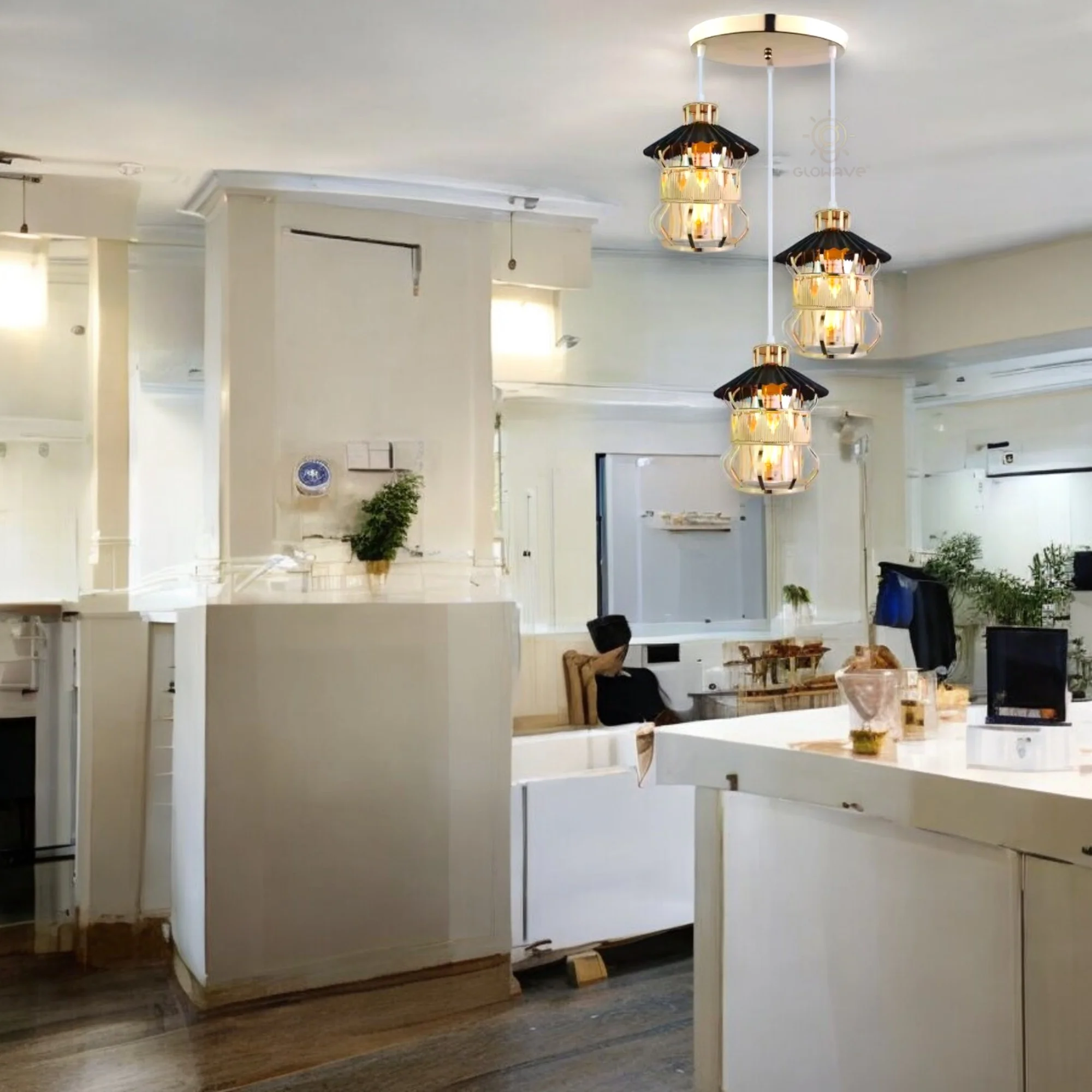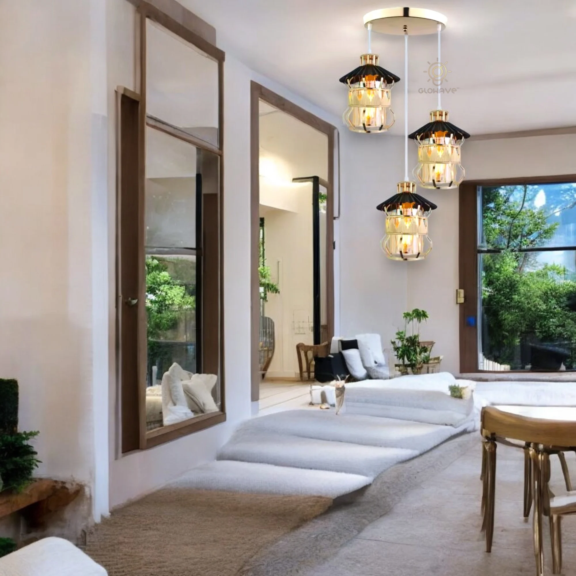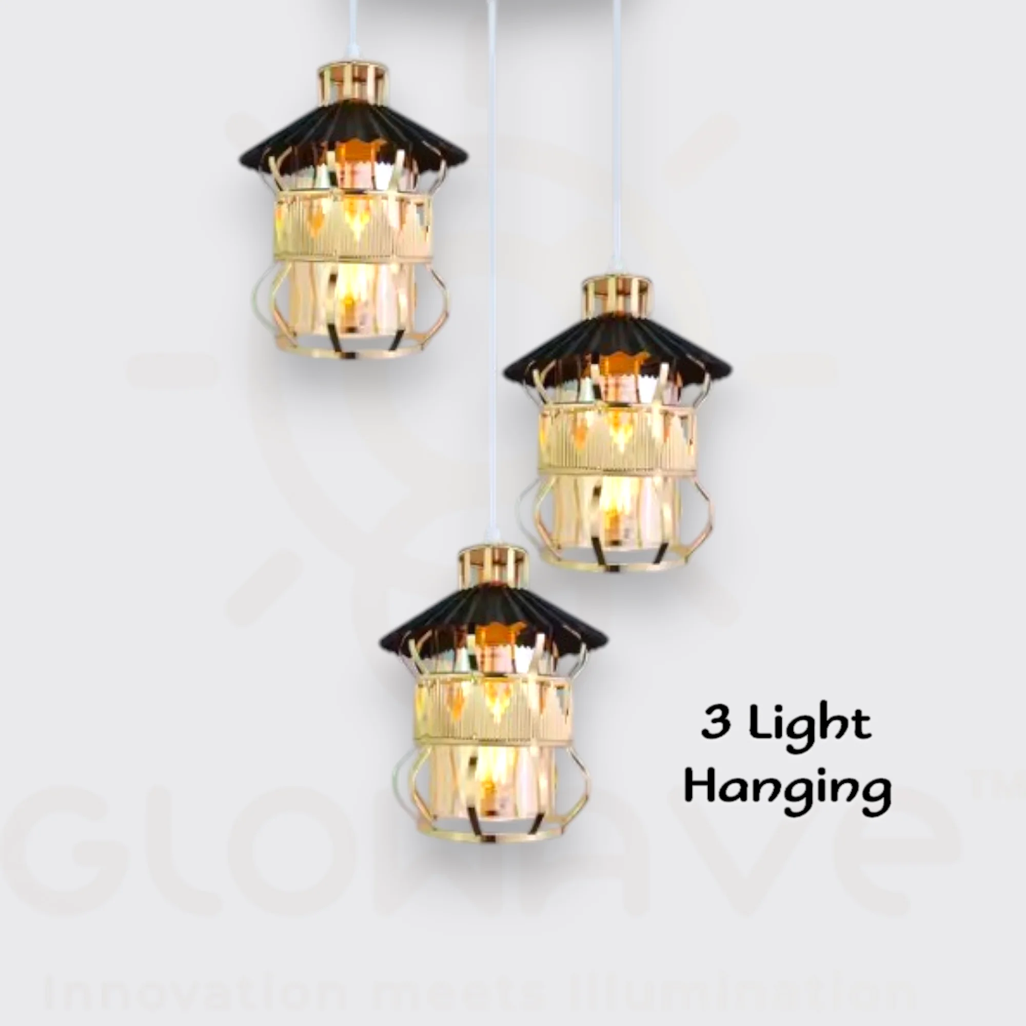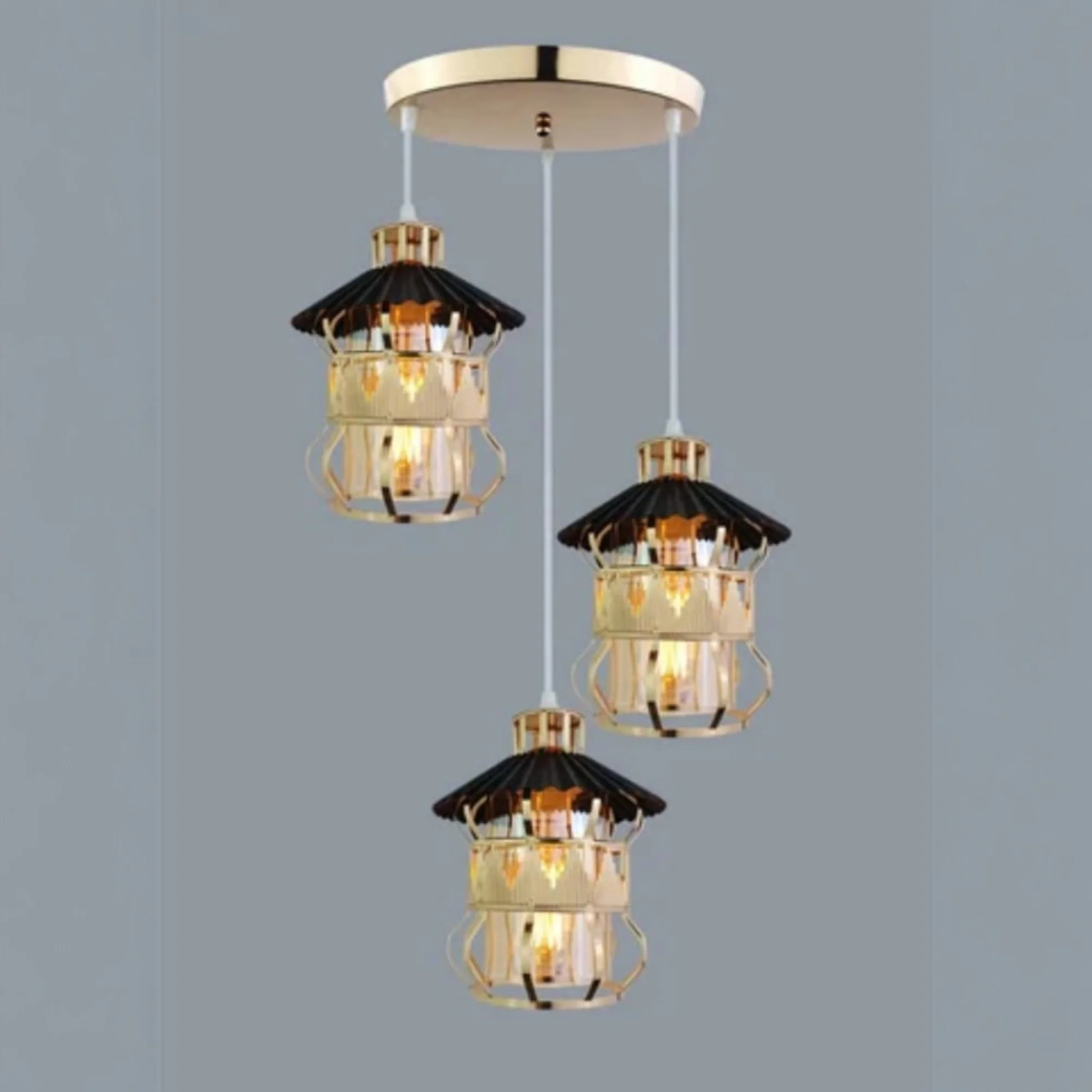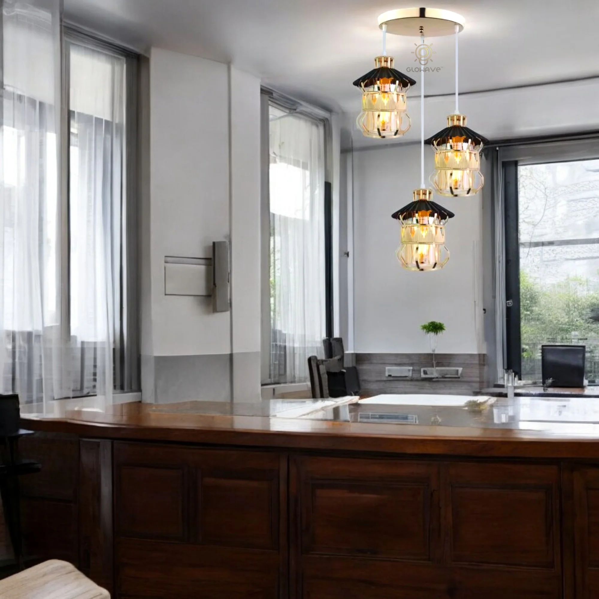 Golden Black Metal Glass Set of 3 Pendant Hanging Light - Warm White