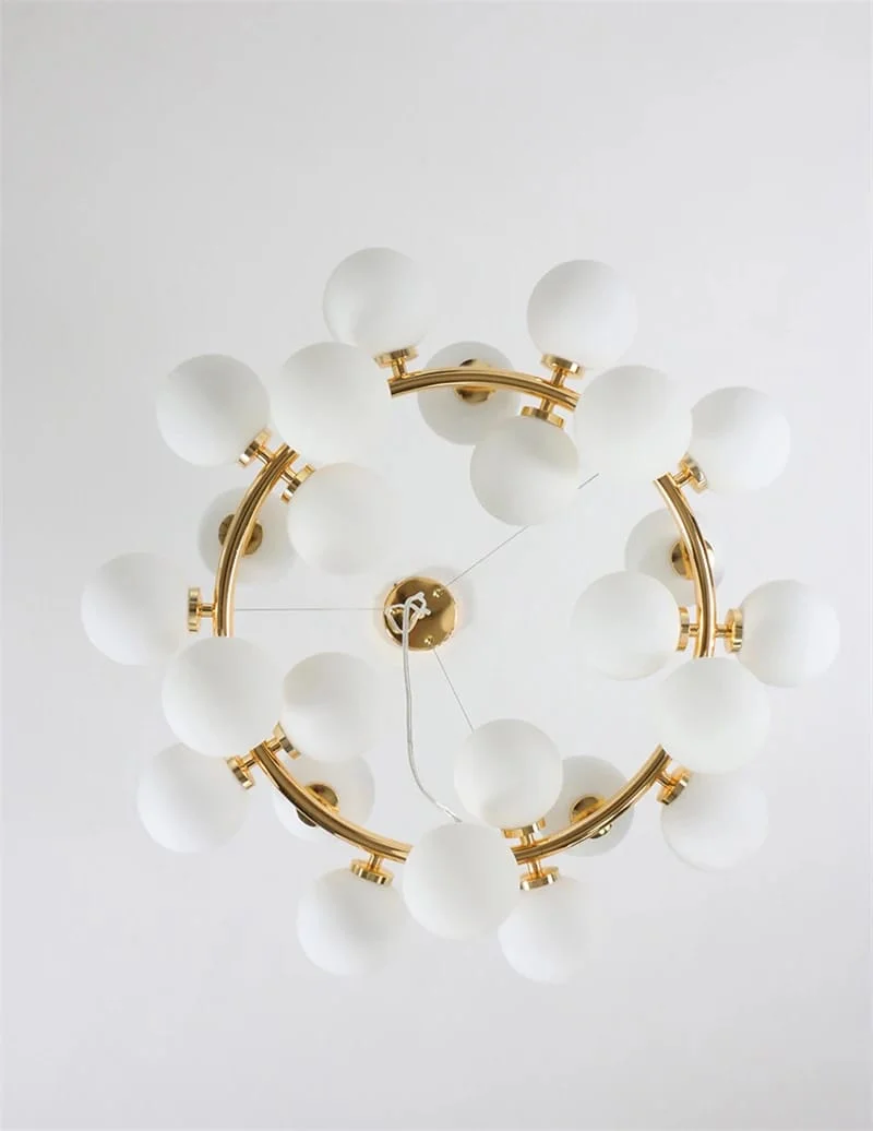 Golden Circular 25 Light LED White Frosted Glass Balls Light Chandelier - Warm White (6255-25L White)