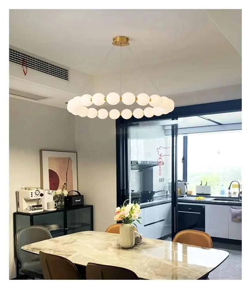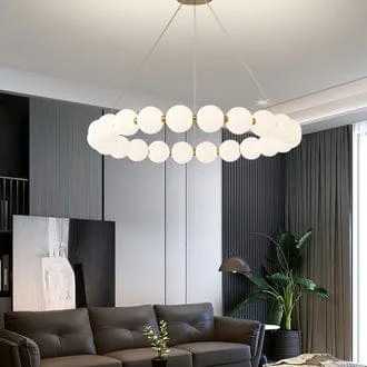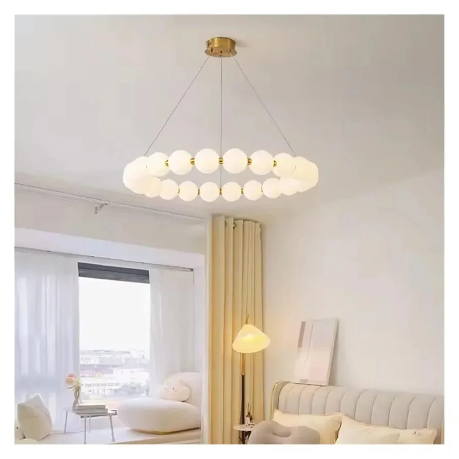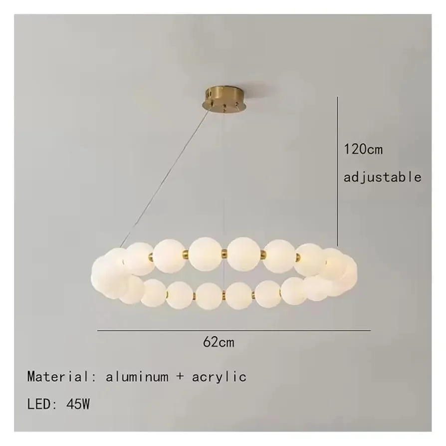 Enhance your decor with the Round Shape Modern Acrylic Ball Molecular Bubble Hanging Lamp. This contemporary lamp features a unique round-shaped design adorned with acrylic bubble balls, creating a warm, ambient glow perfect for any room. Its chic French necklace style makes it an elegant centerpiece for modern living spaces, dining areas, or upscale commercial environments. Crafted with high-quality materials for durability, the lamp’s molecular bubble design enhances light diffusion, offering a stunning play of light and shadow. Easy to install and maintain, it complements various interior styles, from minimalistic to eclectic. Illuminate your space with this stylish and sophisticated lighting solution.