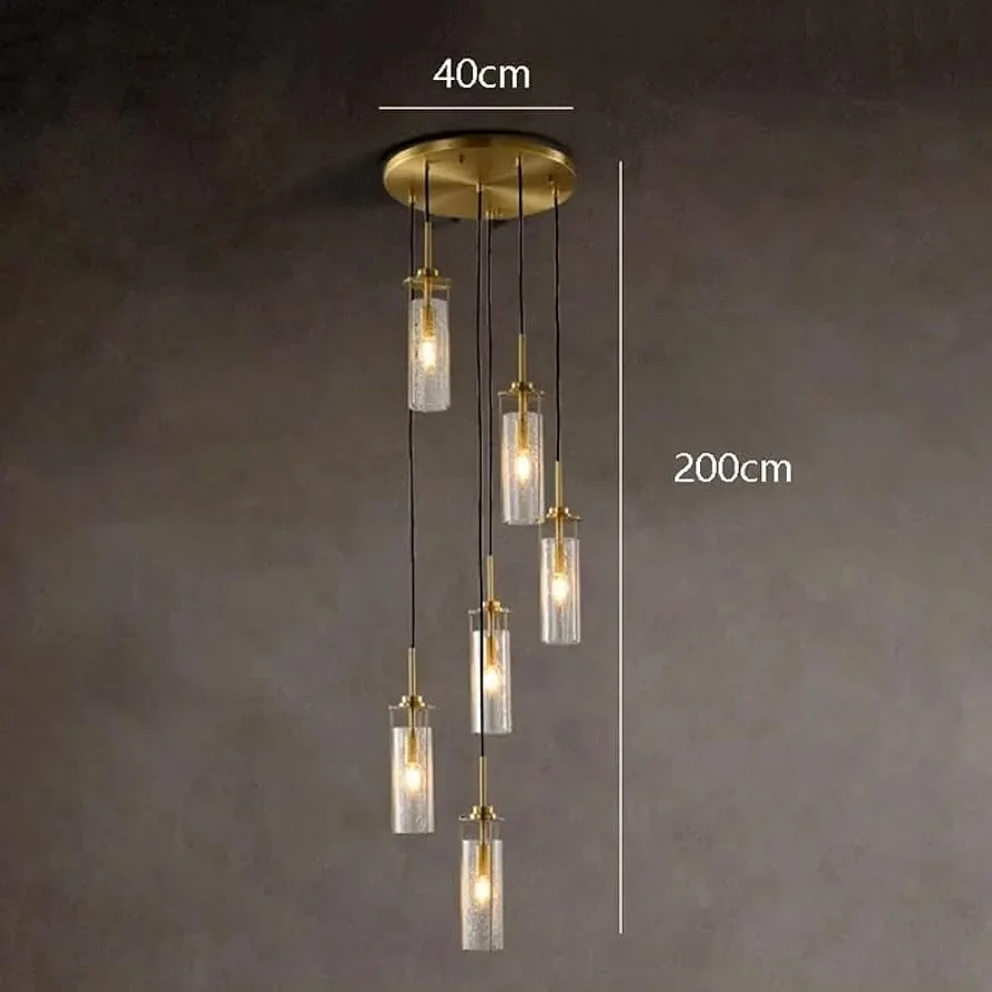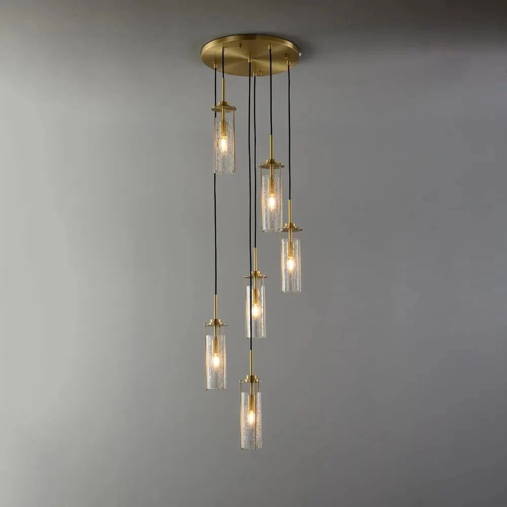 Golden Cylindrical Crackle Glass Shade 6 Lights Pendant Hanging Light - Warm White
