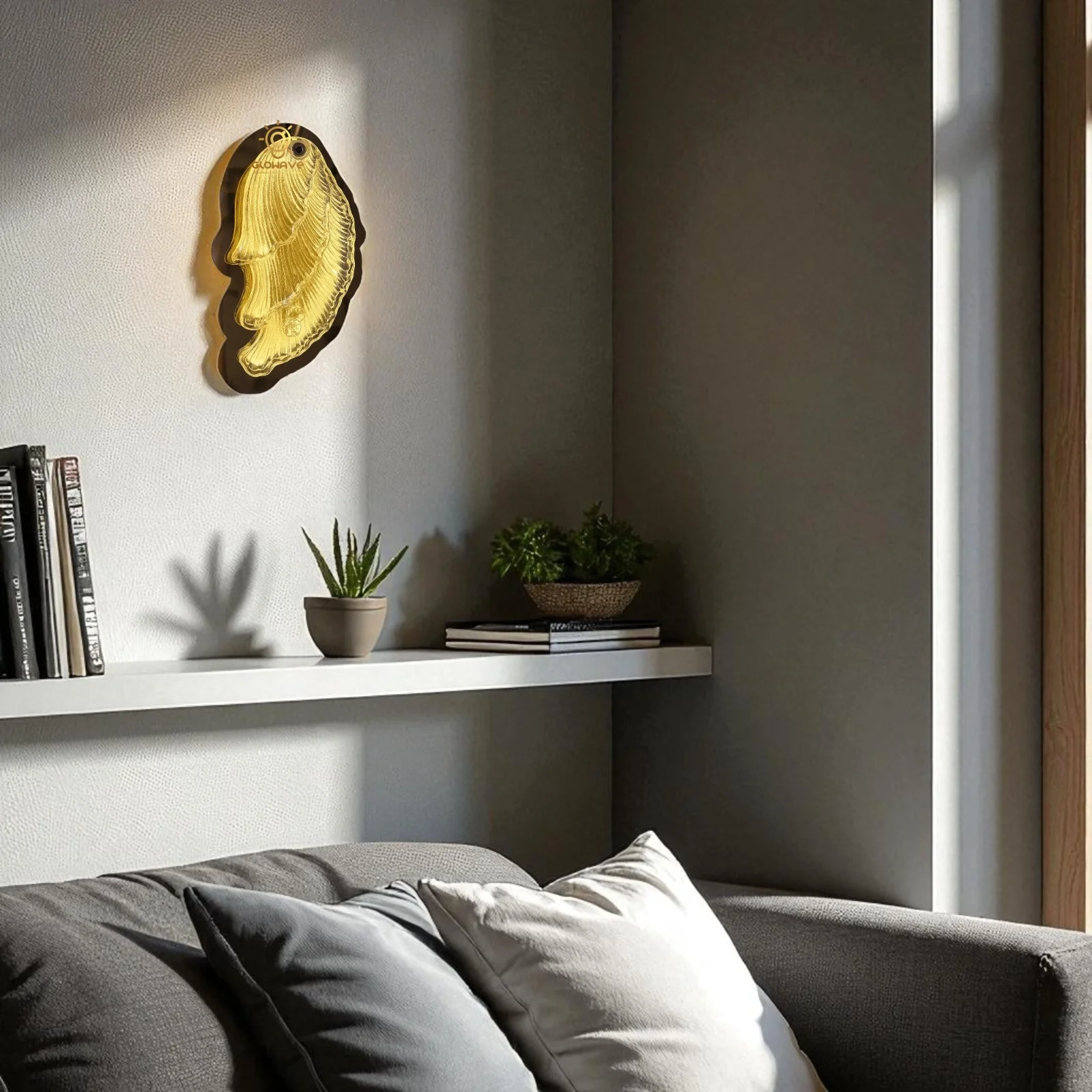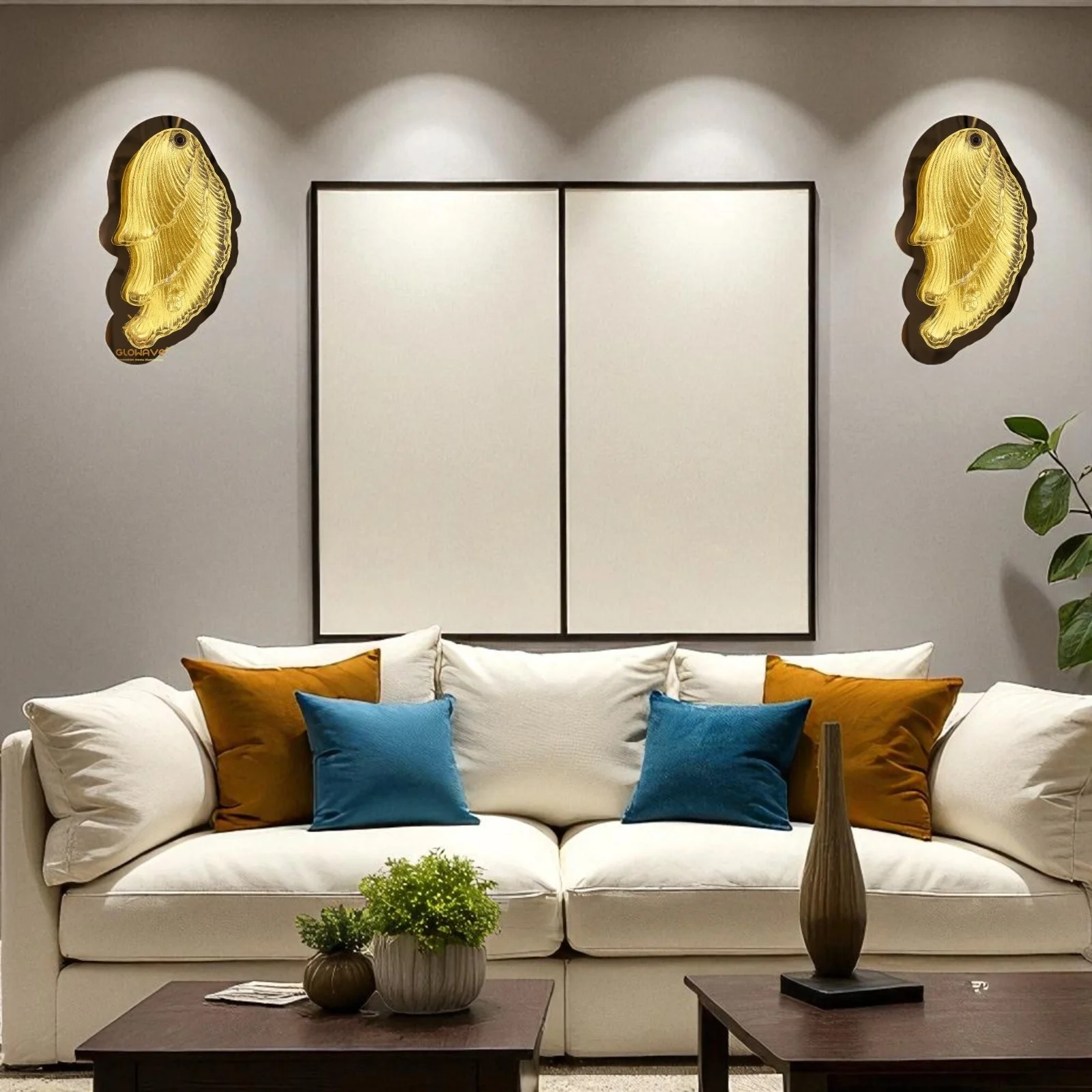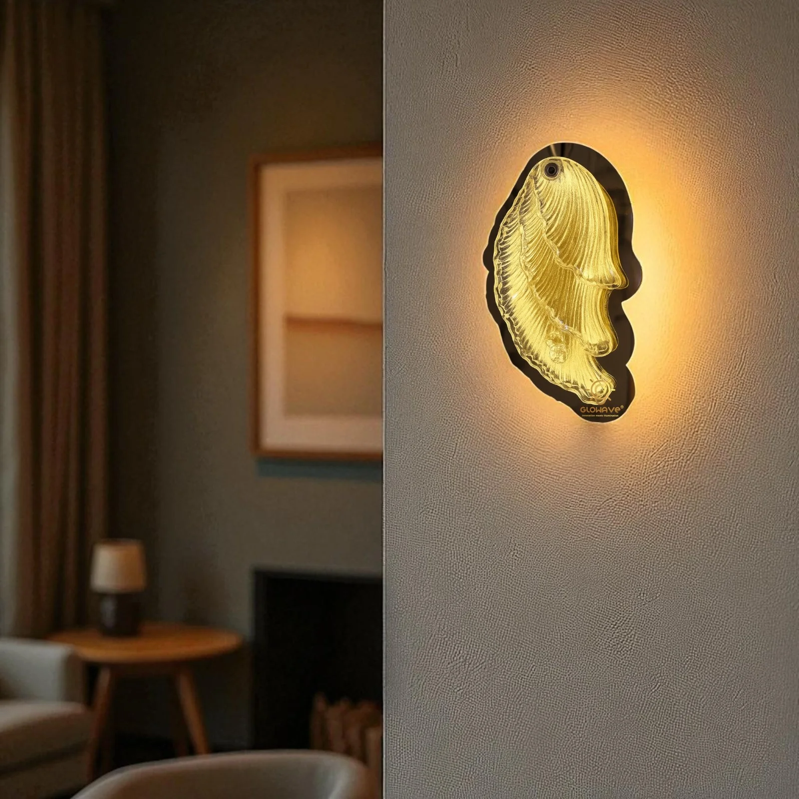 Elevate your living space with the Modern Golden Finish Fin Shape LED Wall Lamp. This elegant lighting fixture, perfect for your living room, bedroom, or bedside, features a sleek golden finish and contemporary oval design. It provides a warm white, White and natural white glow that creates a cozy ambiance.