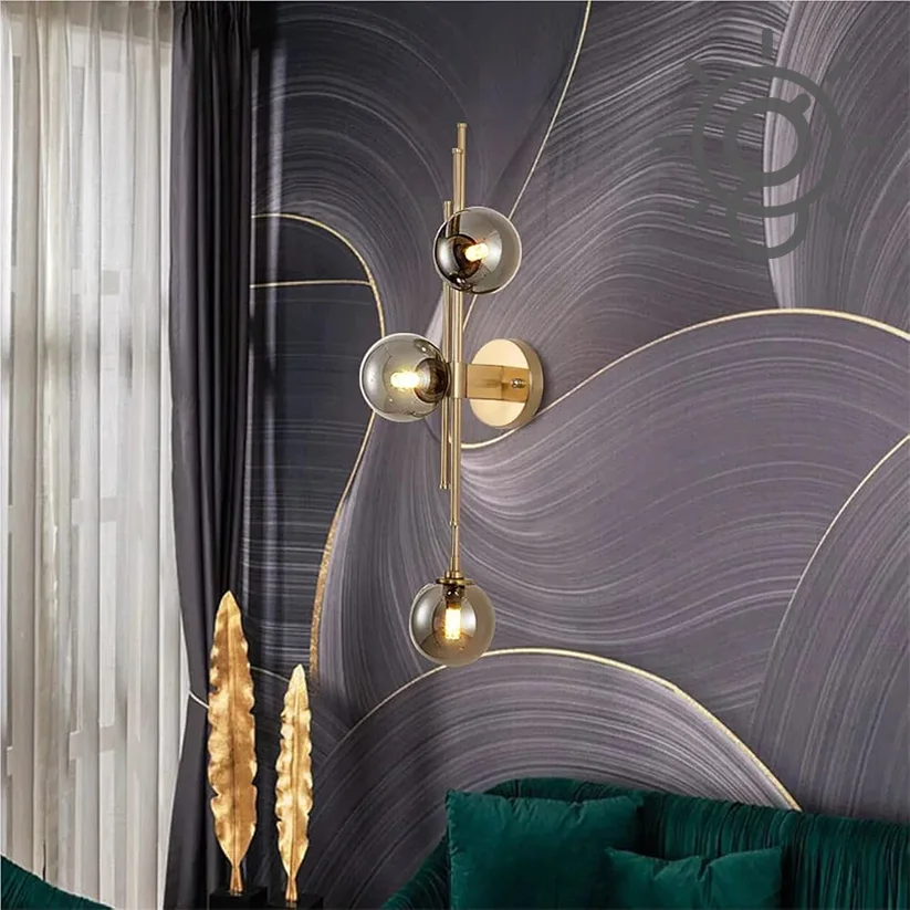 Golden Finish 3 Smoky Glass Balls Light LED Wall Lamp - Warm White