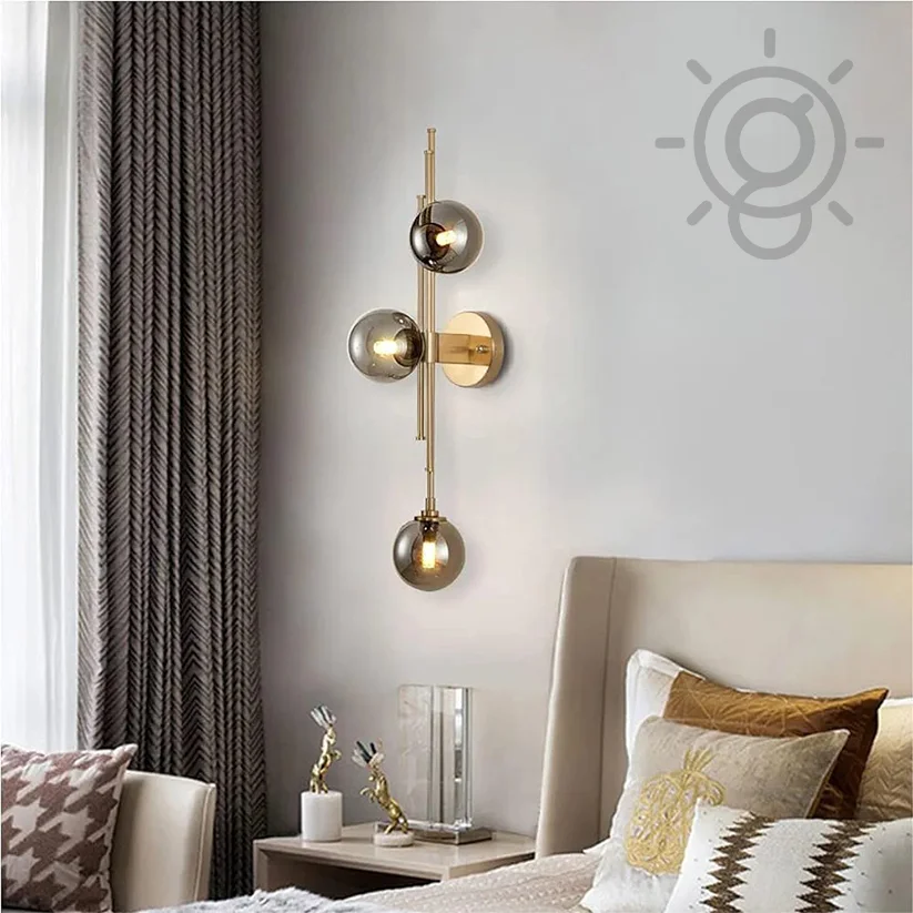 Elevate your living space with the Modern 3 Clear Glass Balls Golden Finish LED Wall Lamp. This elegant lighting fixture, perfect for your living room, bedroom, or bedside, features a sleek golden finish and contemporary glass balls design. It provides a warm white glow that creates a cozy ambiance. Note: Bulb not included.